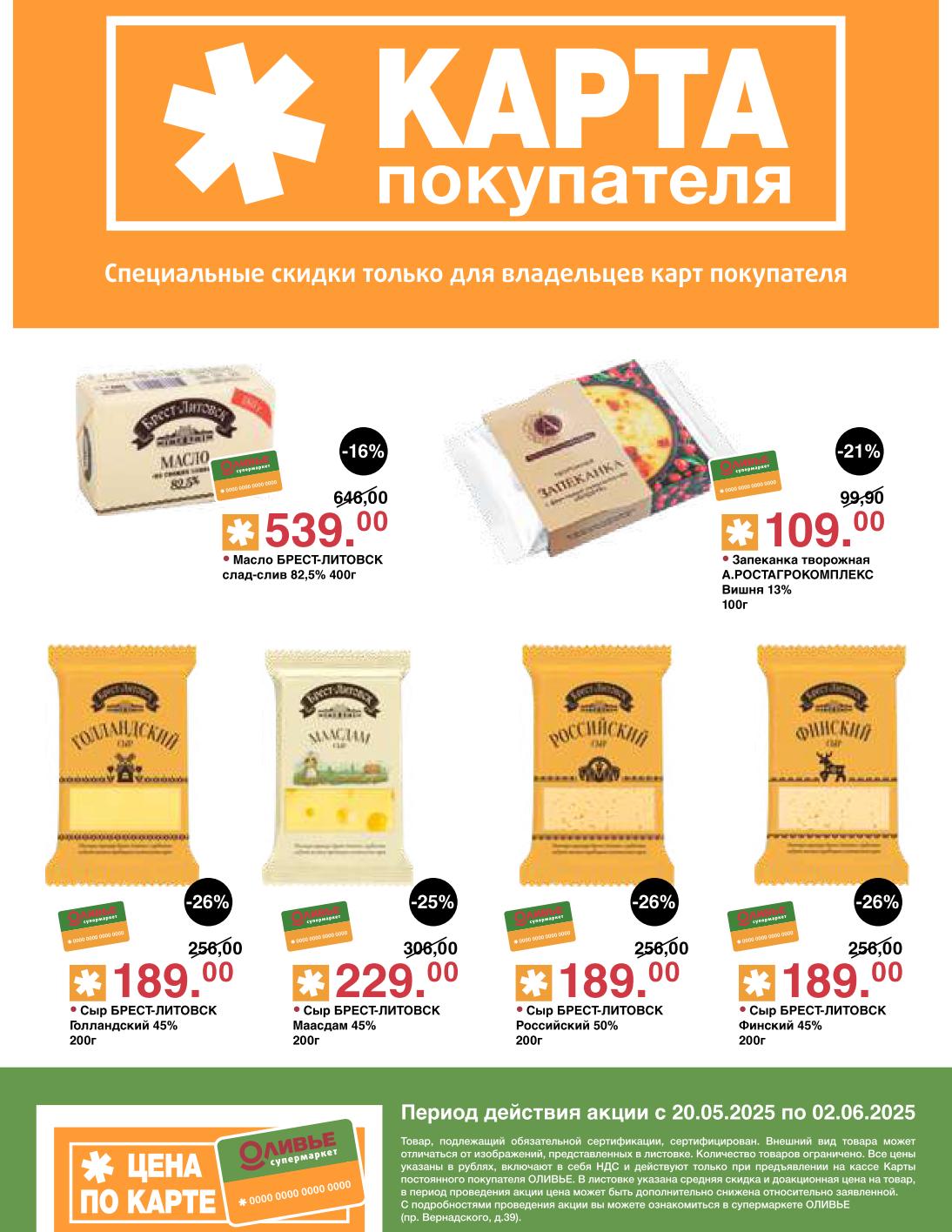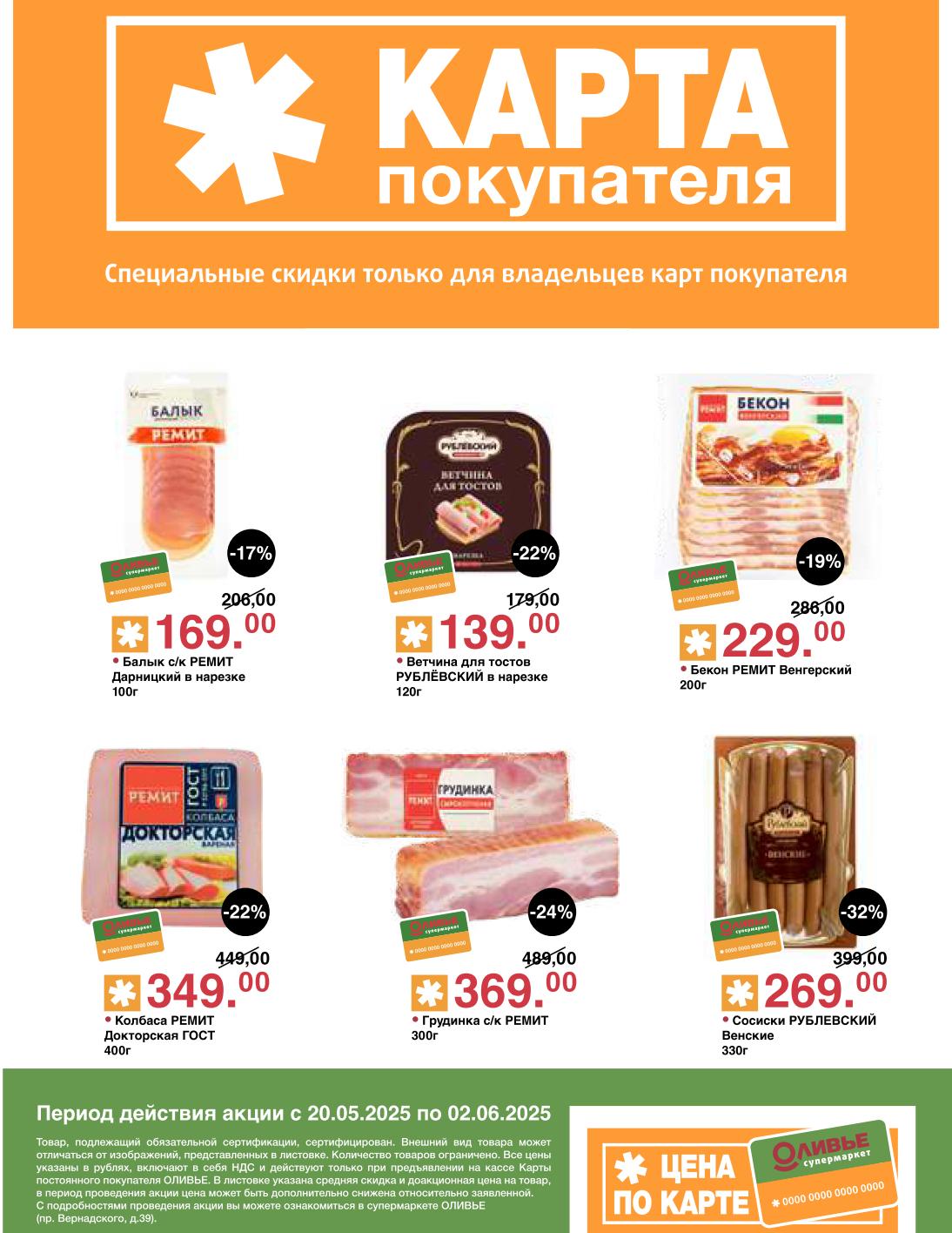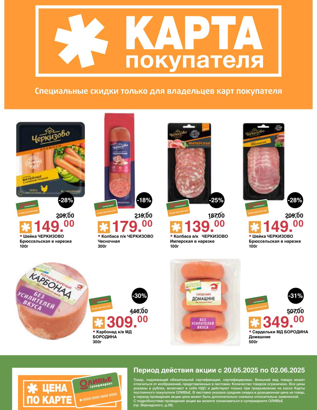 Оливье акции с 20 мая — 2 июня 2025. Скидки по карте покупателя