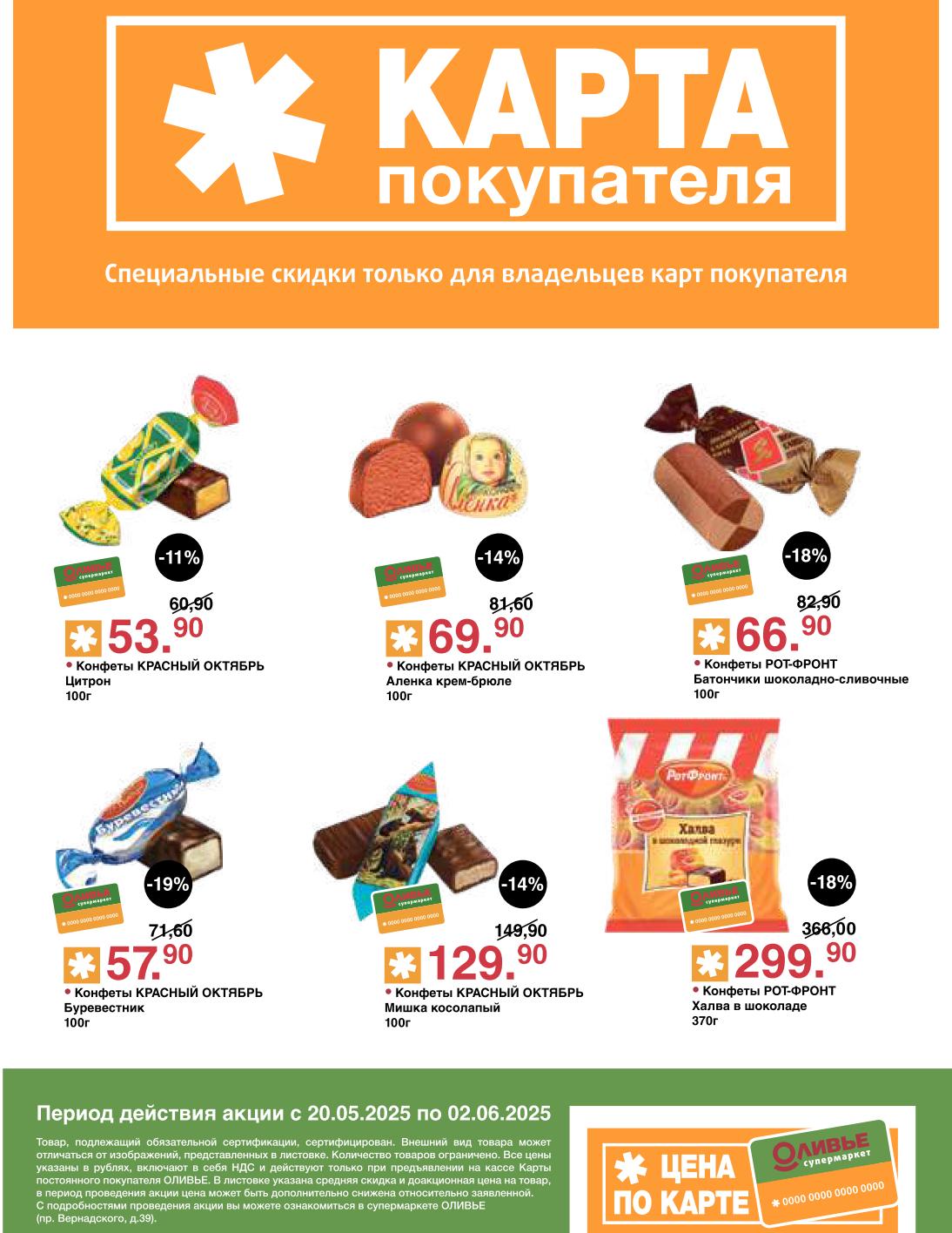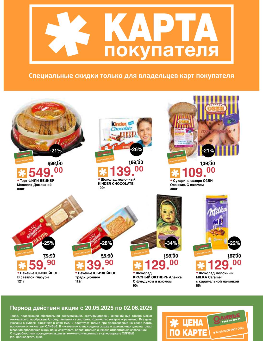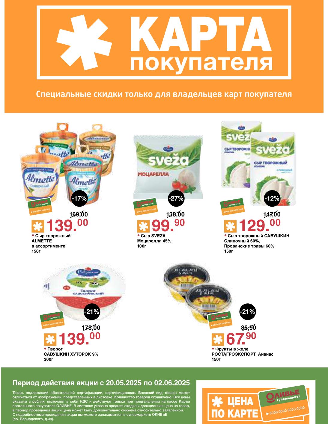 Оливье акции с 20 мая — 2 июня 2025. Скидки по карте покупателя
