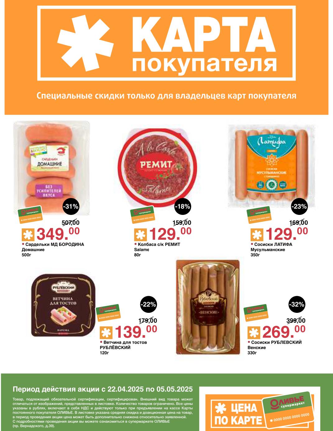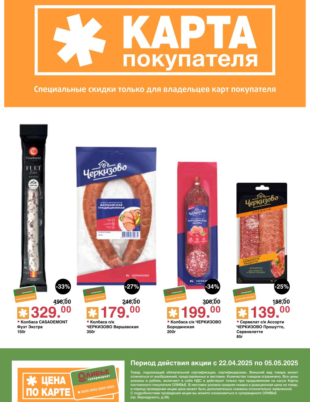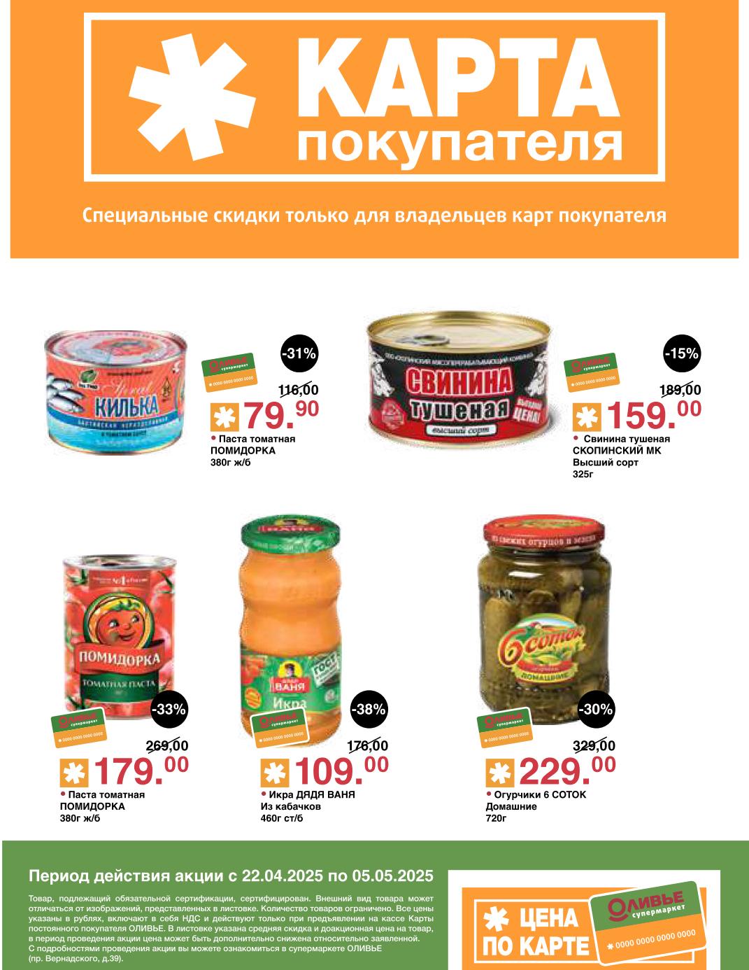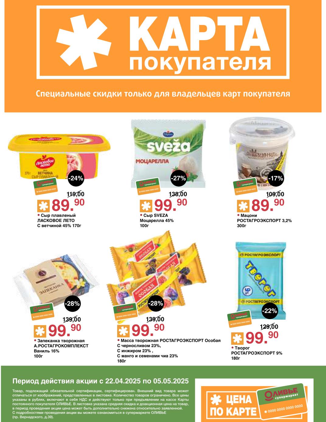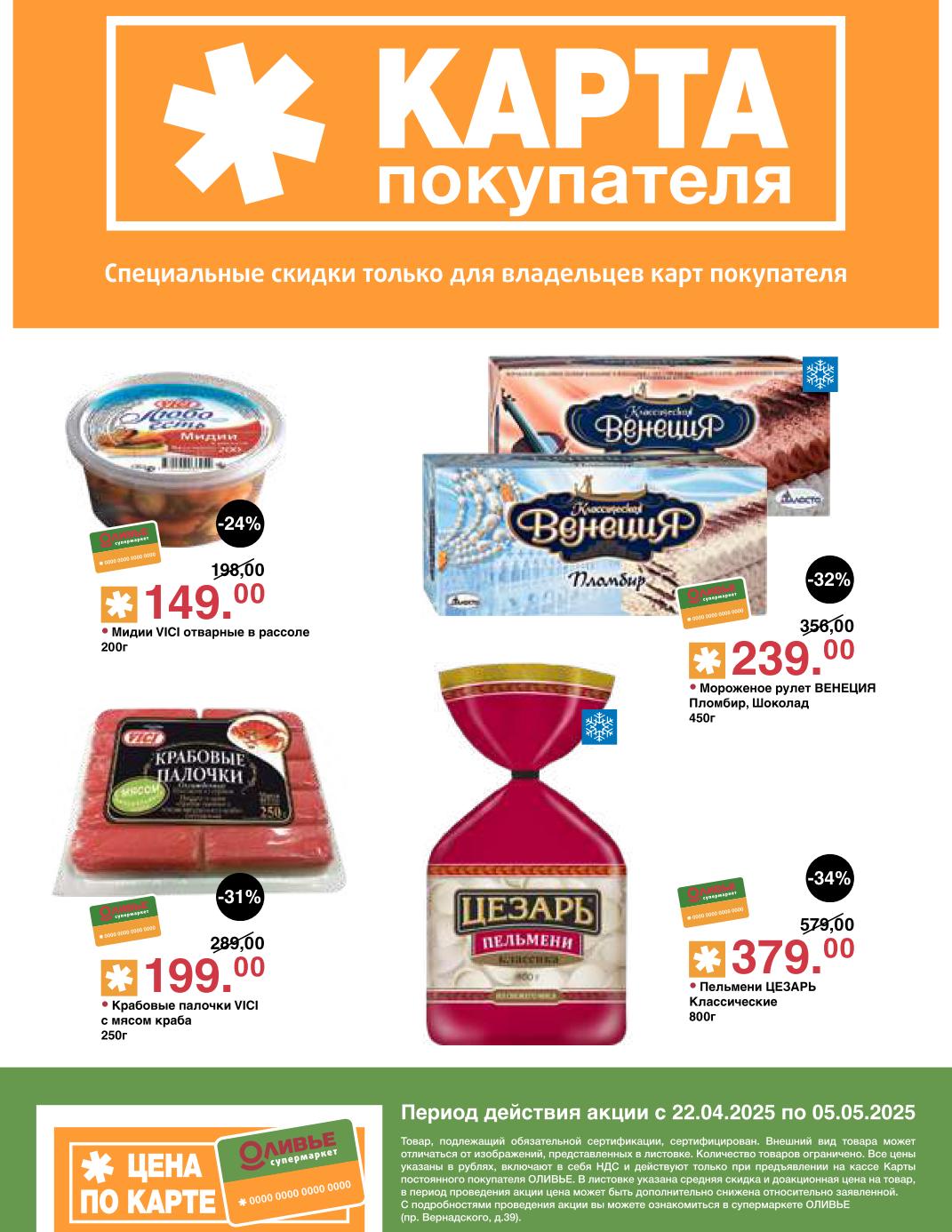 Оливье акции с 22 апреля — 5 мая 2025. Скидки по карте покупателя
