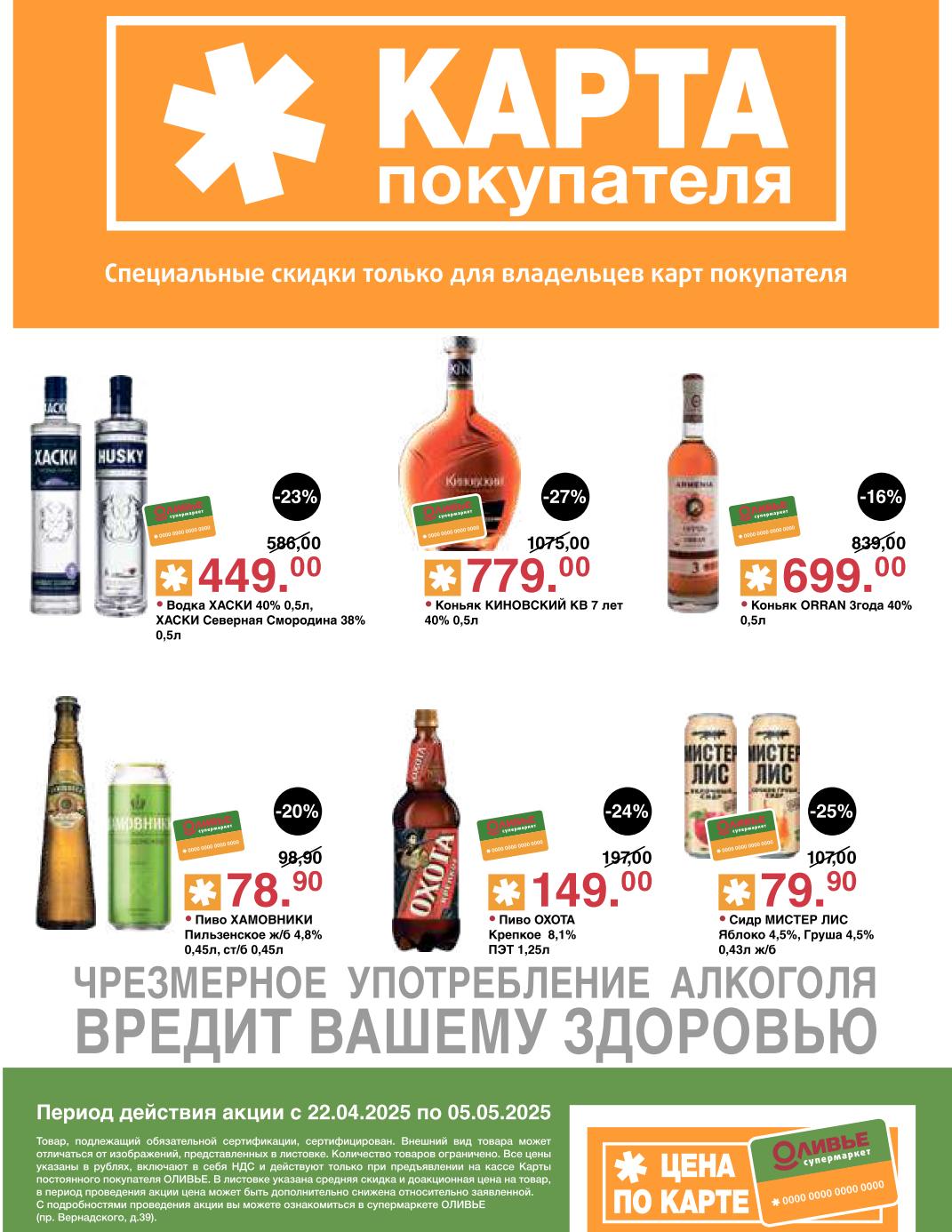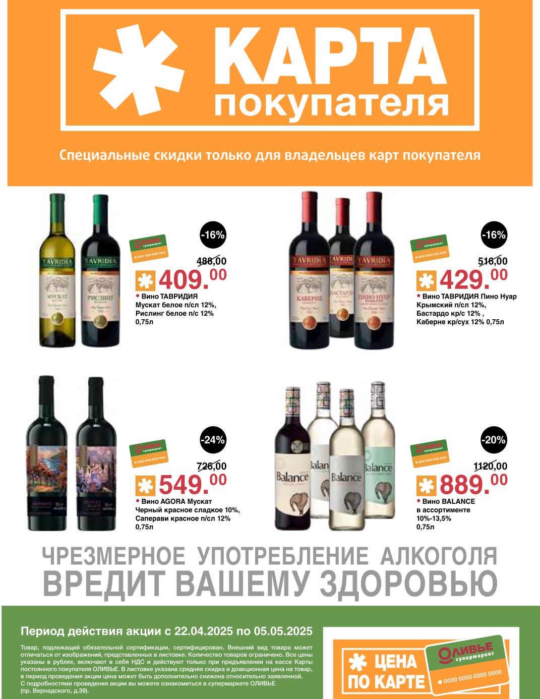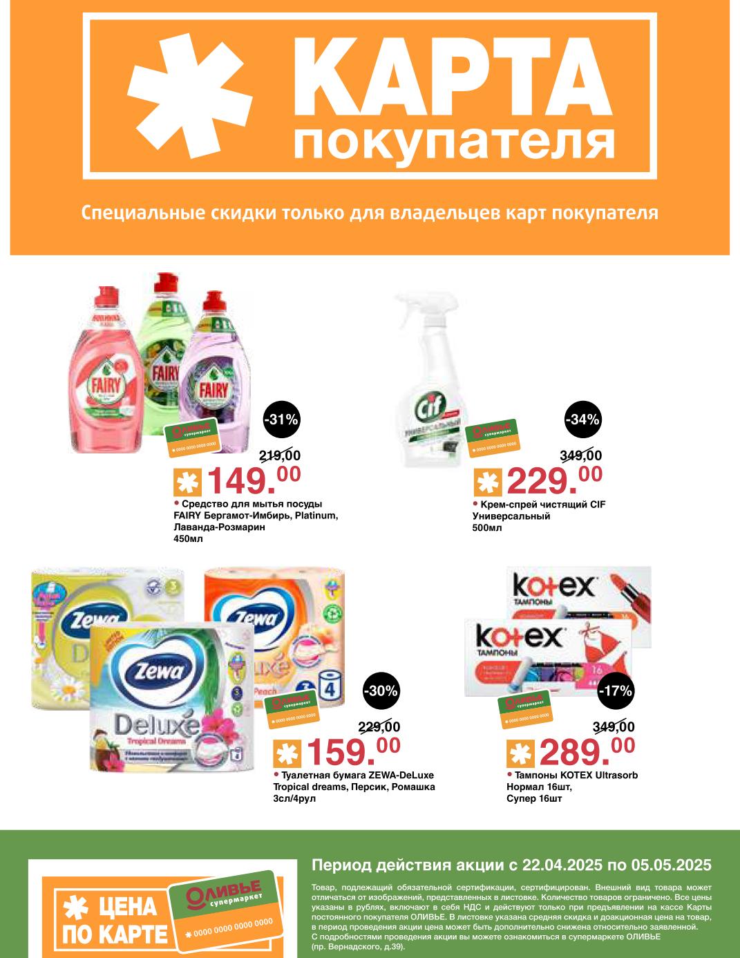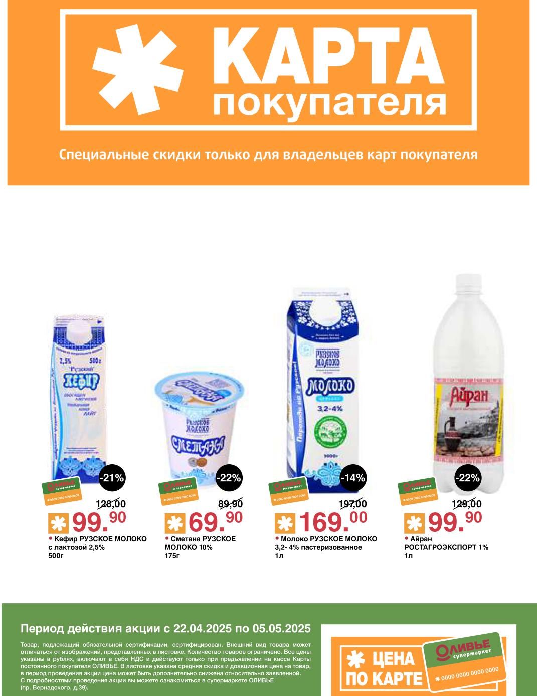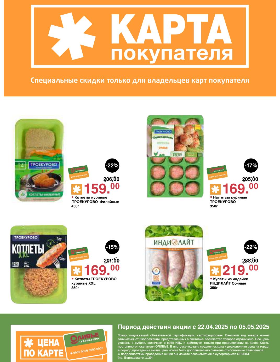 Оливье акции с 22 апреля — 5 мая 2025. Скидки по карте покупателя