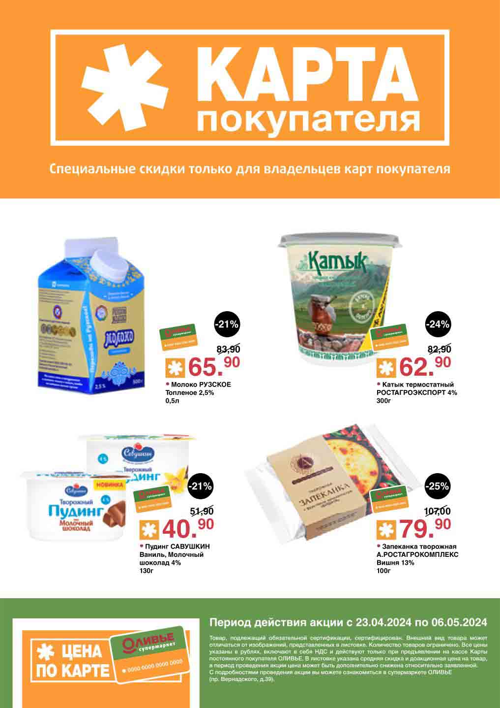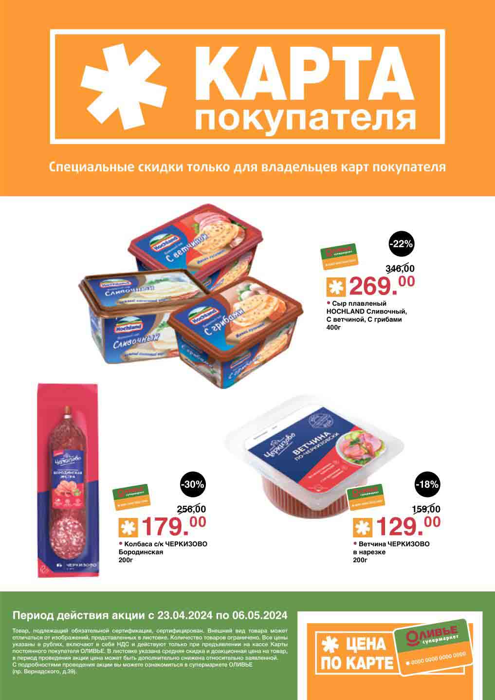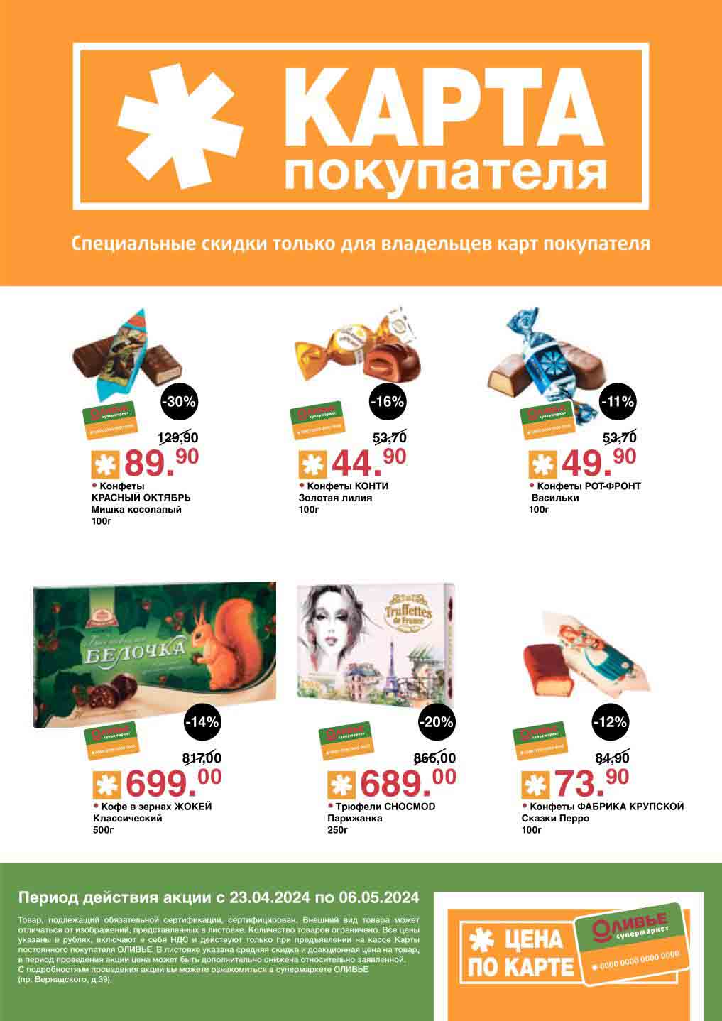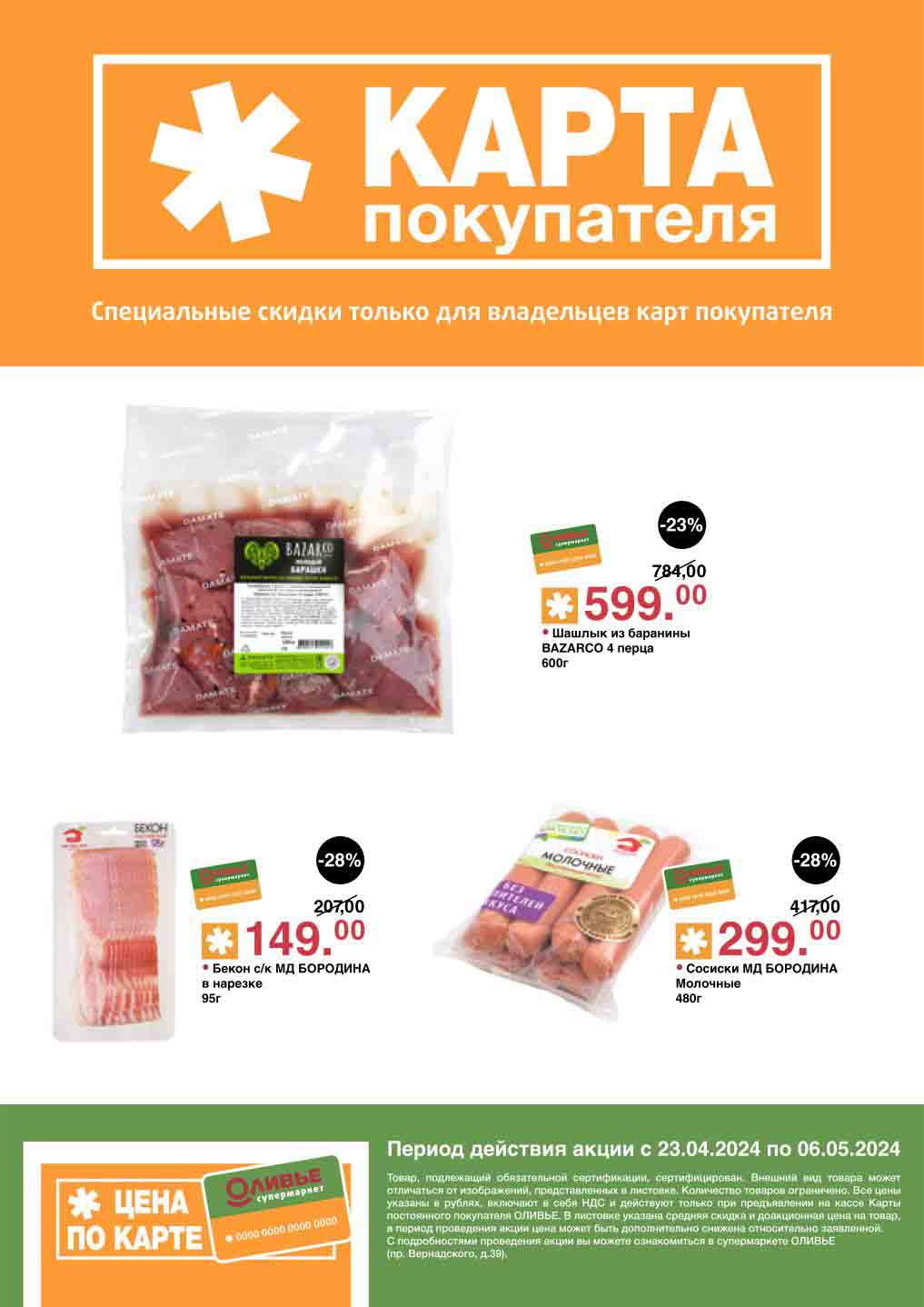 Оливье акции с 23 апреля — 6 мая 2024. Скидки по карте покупателя