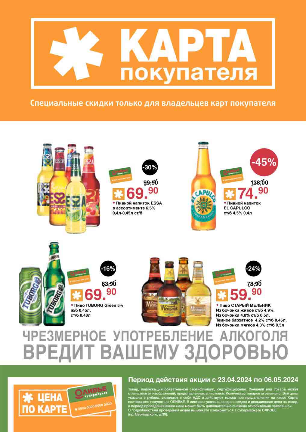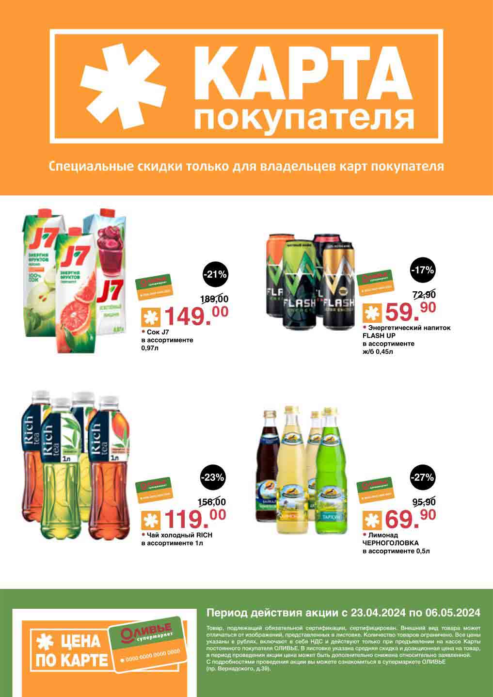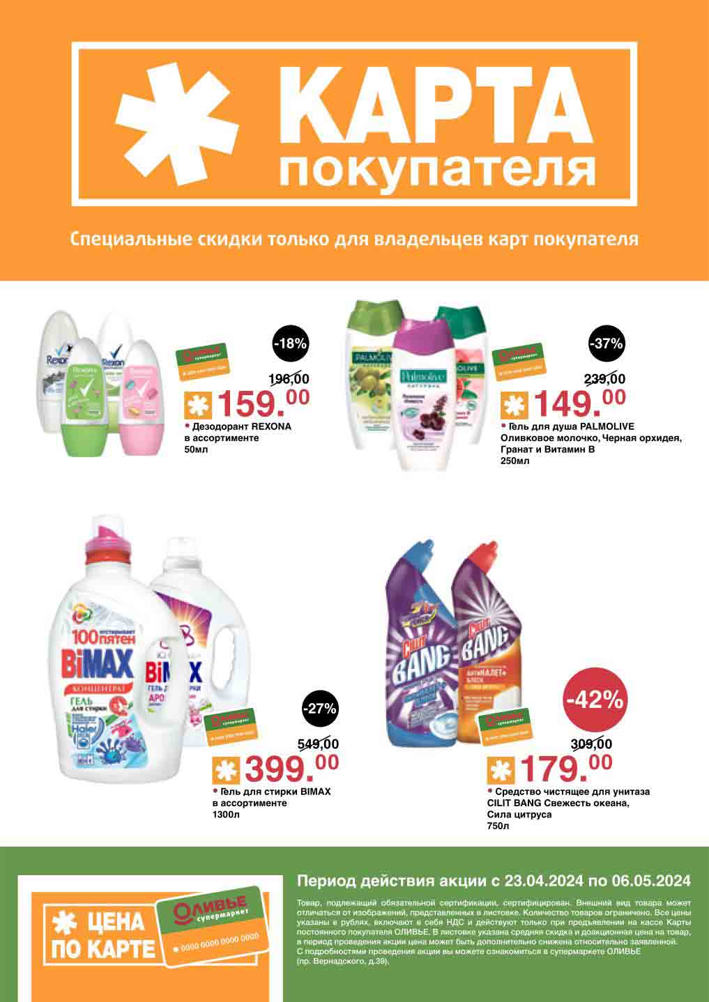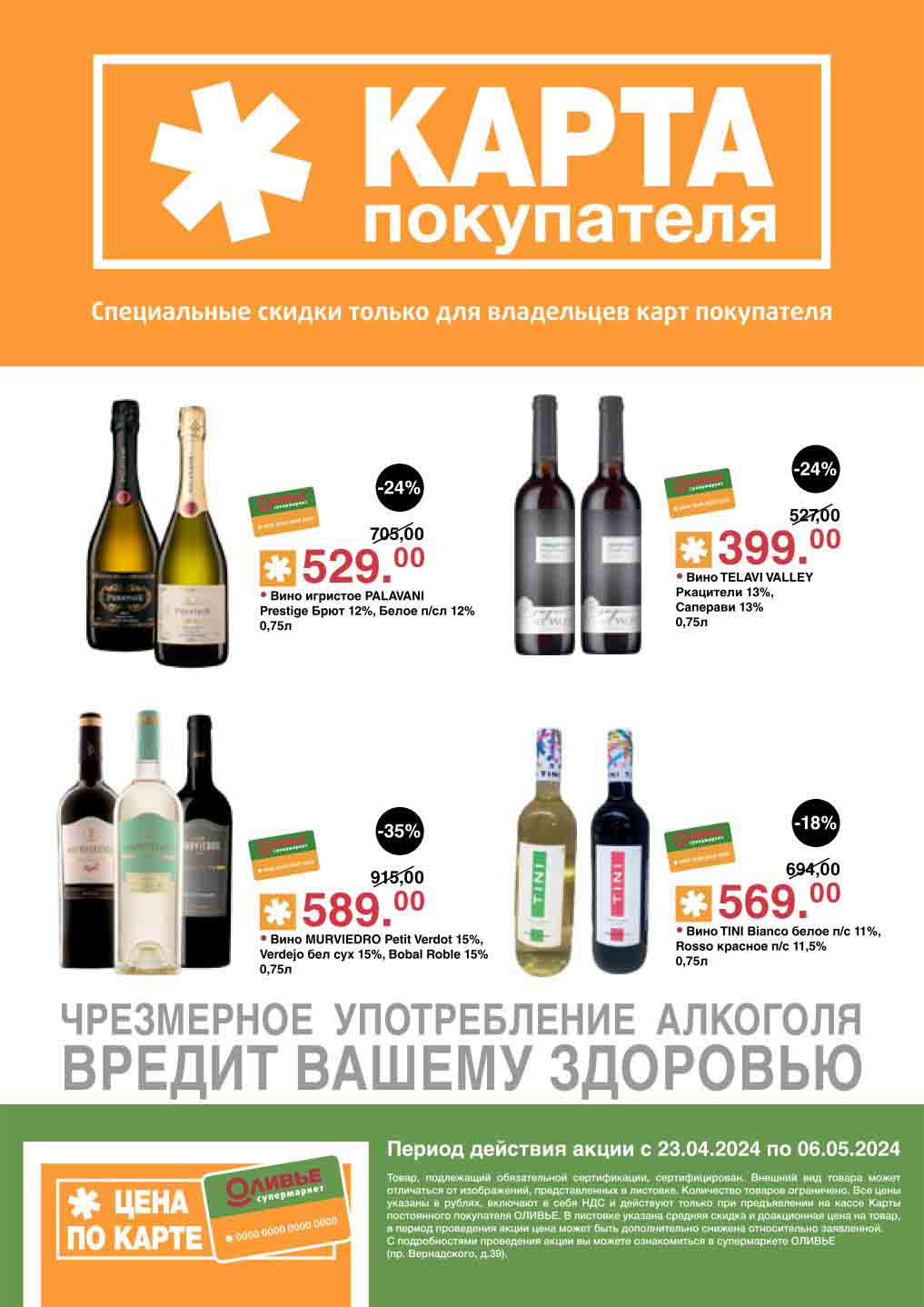 Оливье акции с 23 апреля — 6 мая 2024. Скидки по карте покупателя