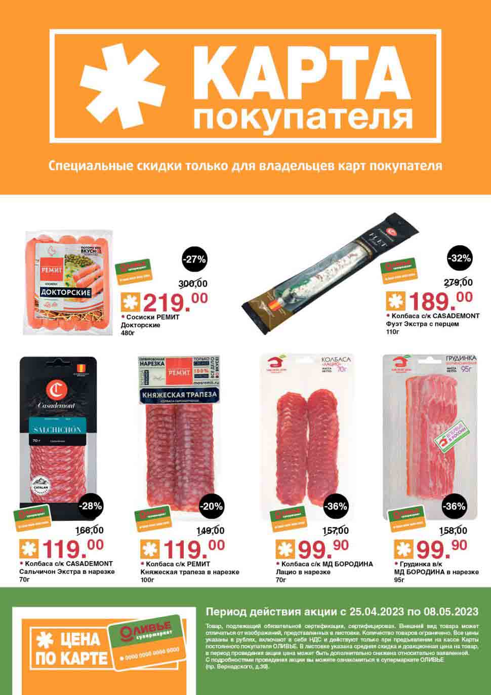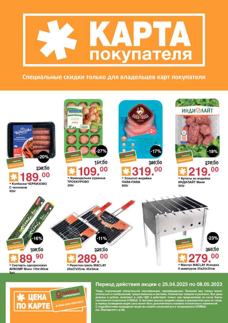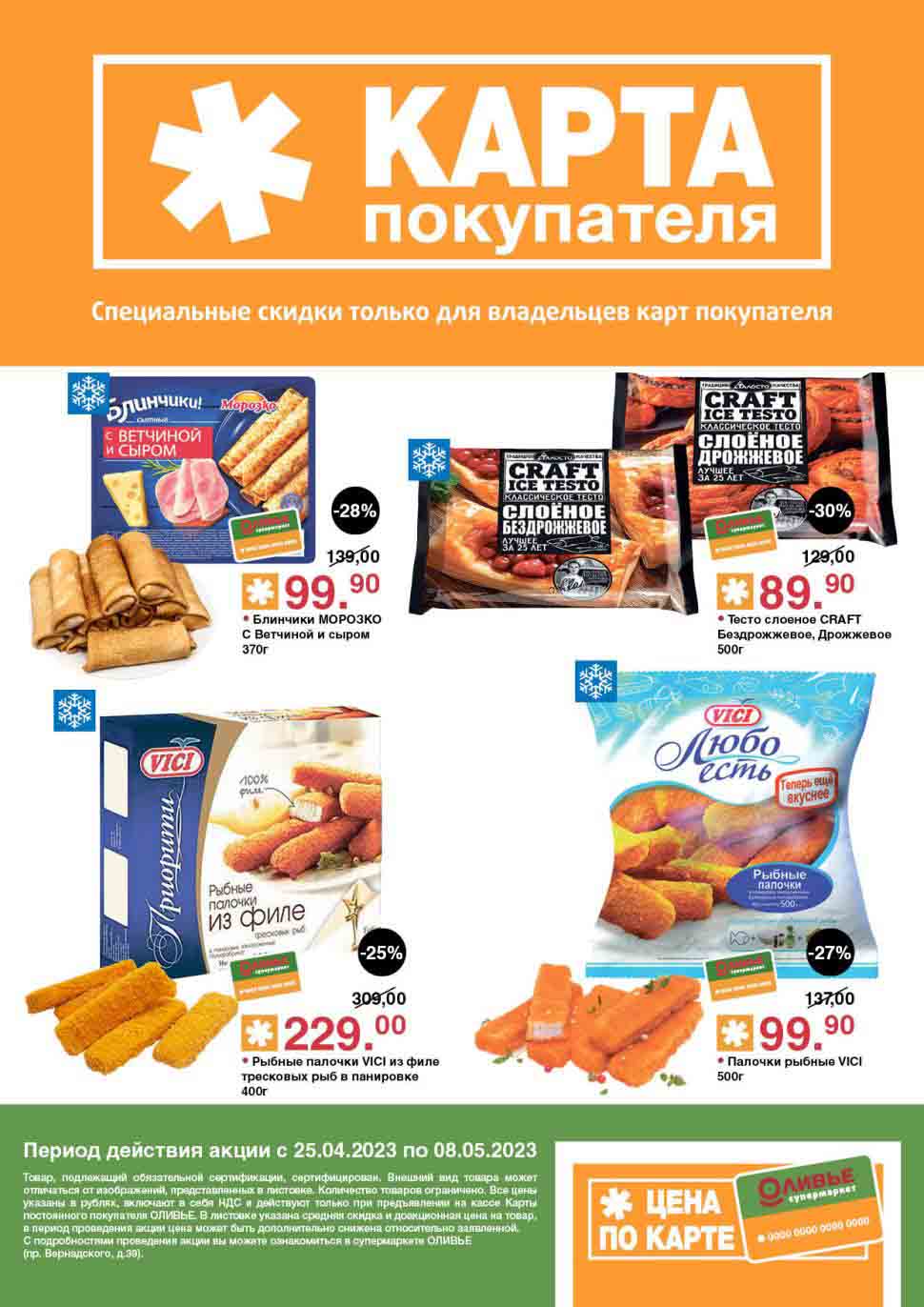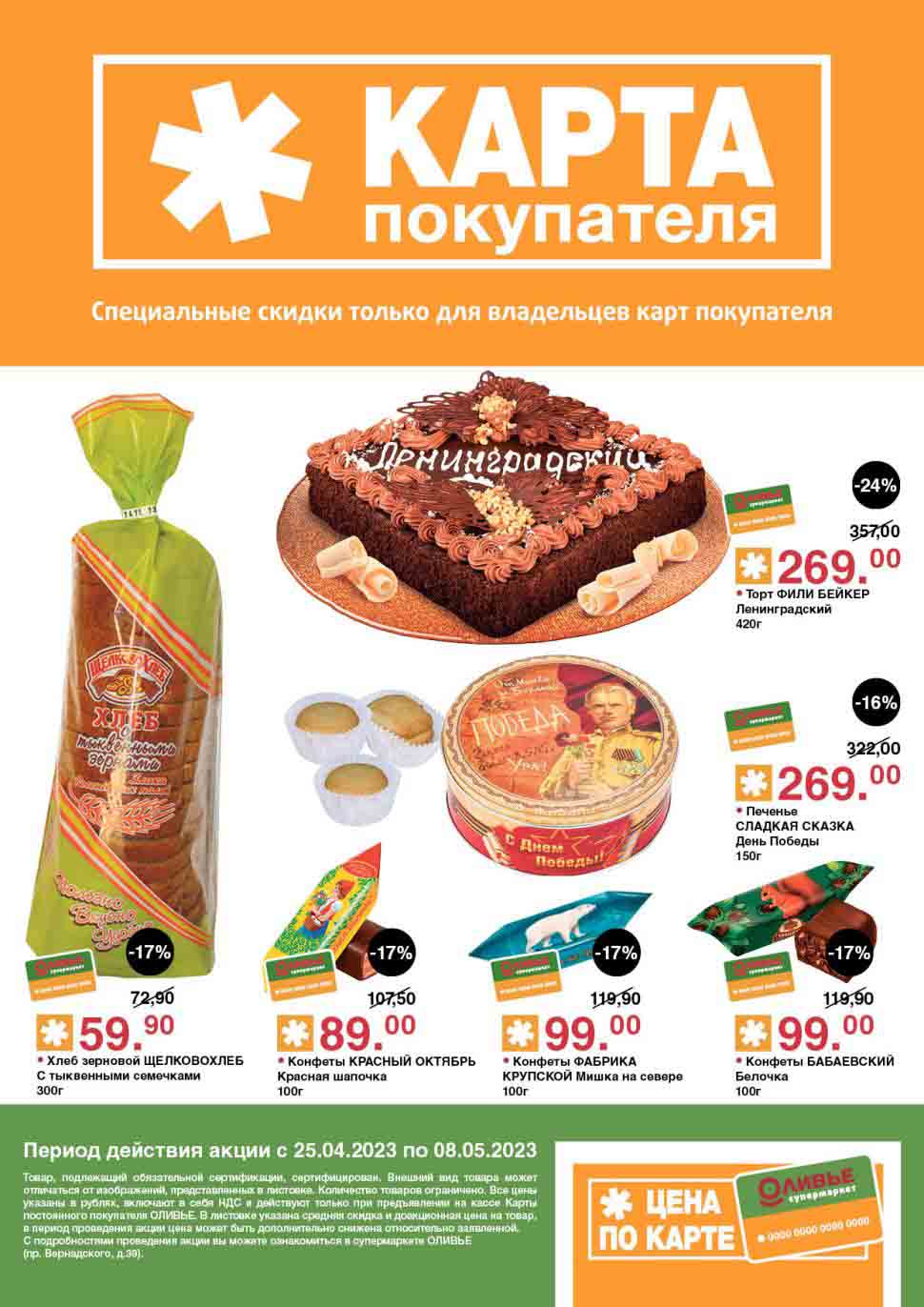 Оливье акции с 25 апреля — 8 мая. Скидки по карте покупателя
