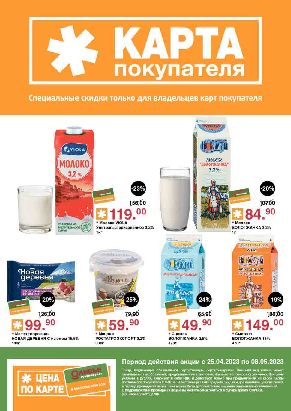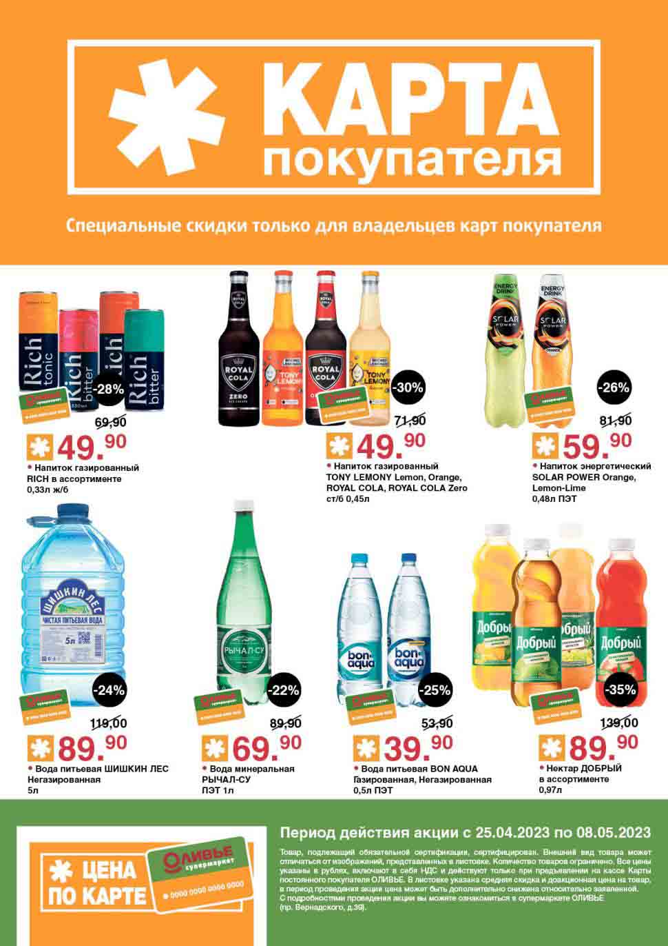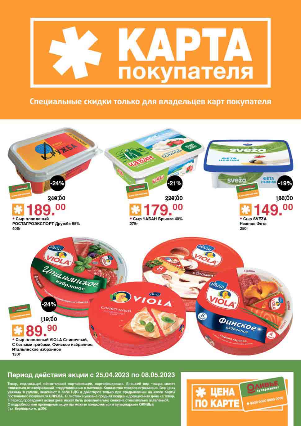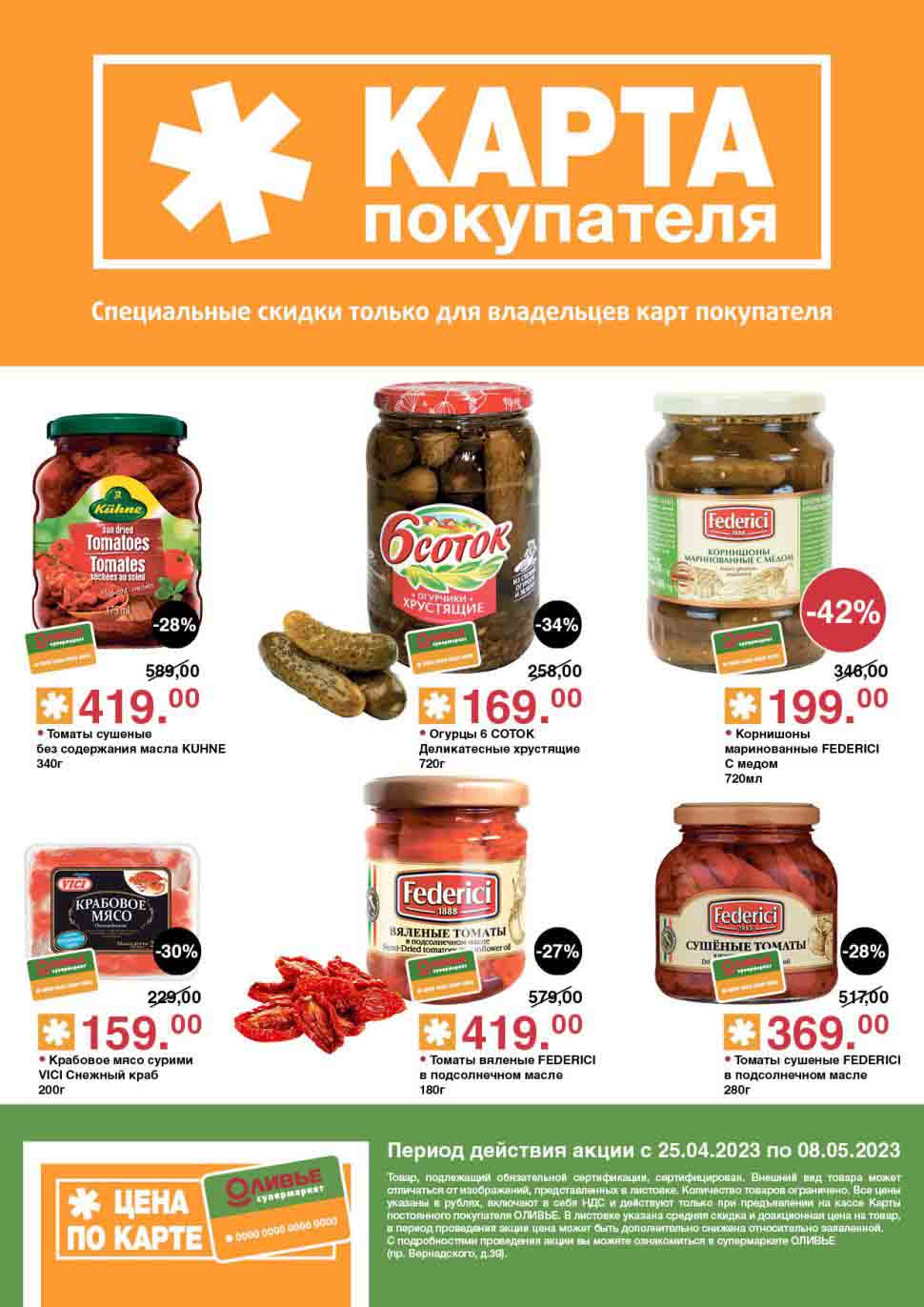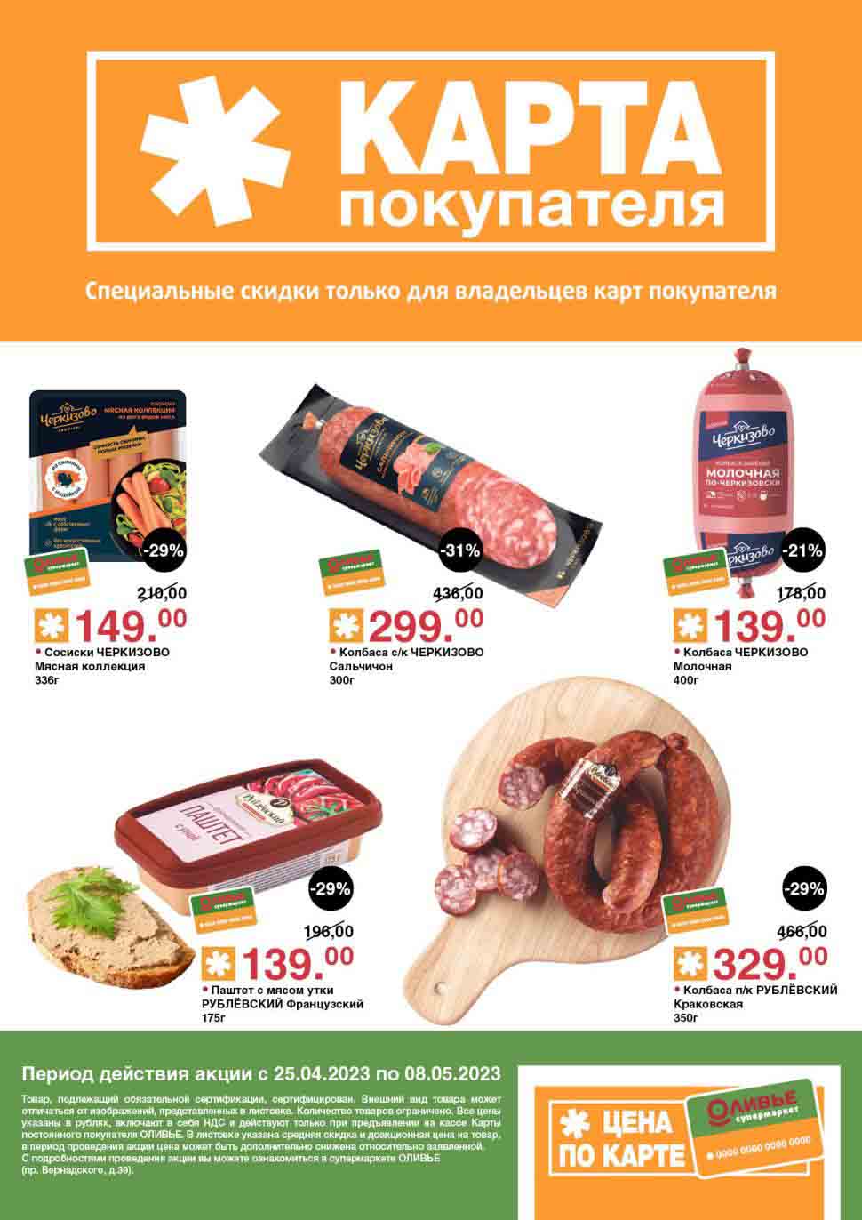 Оливье акции с 25 апреля — 8 мая. Скидки по карте покупателя