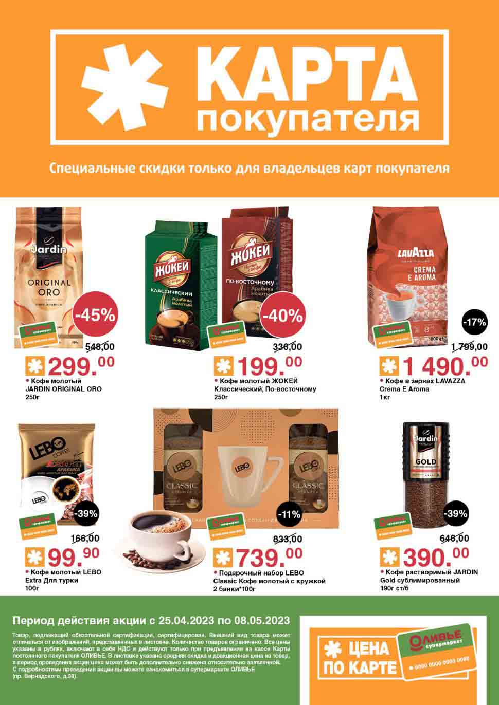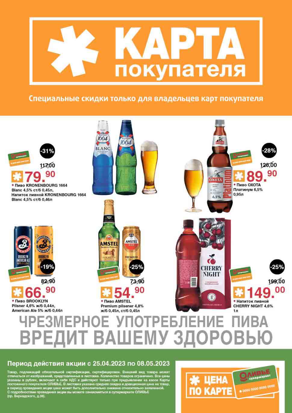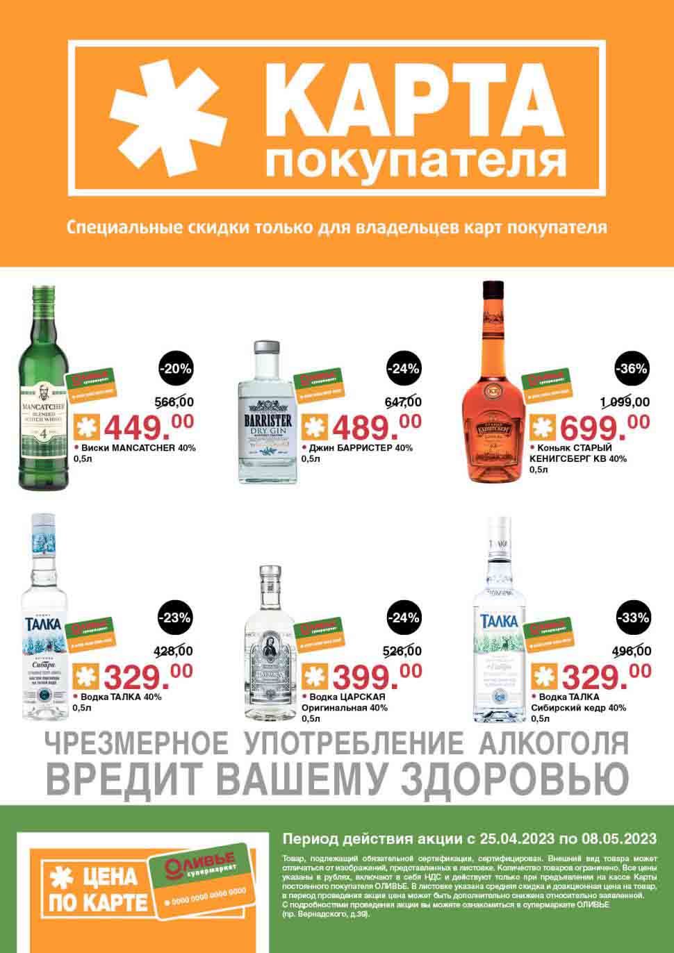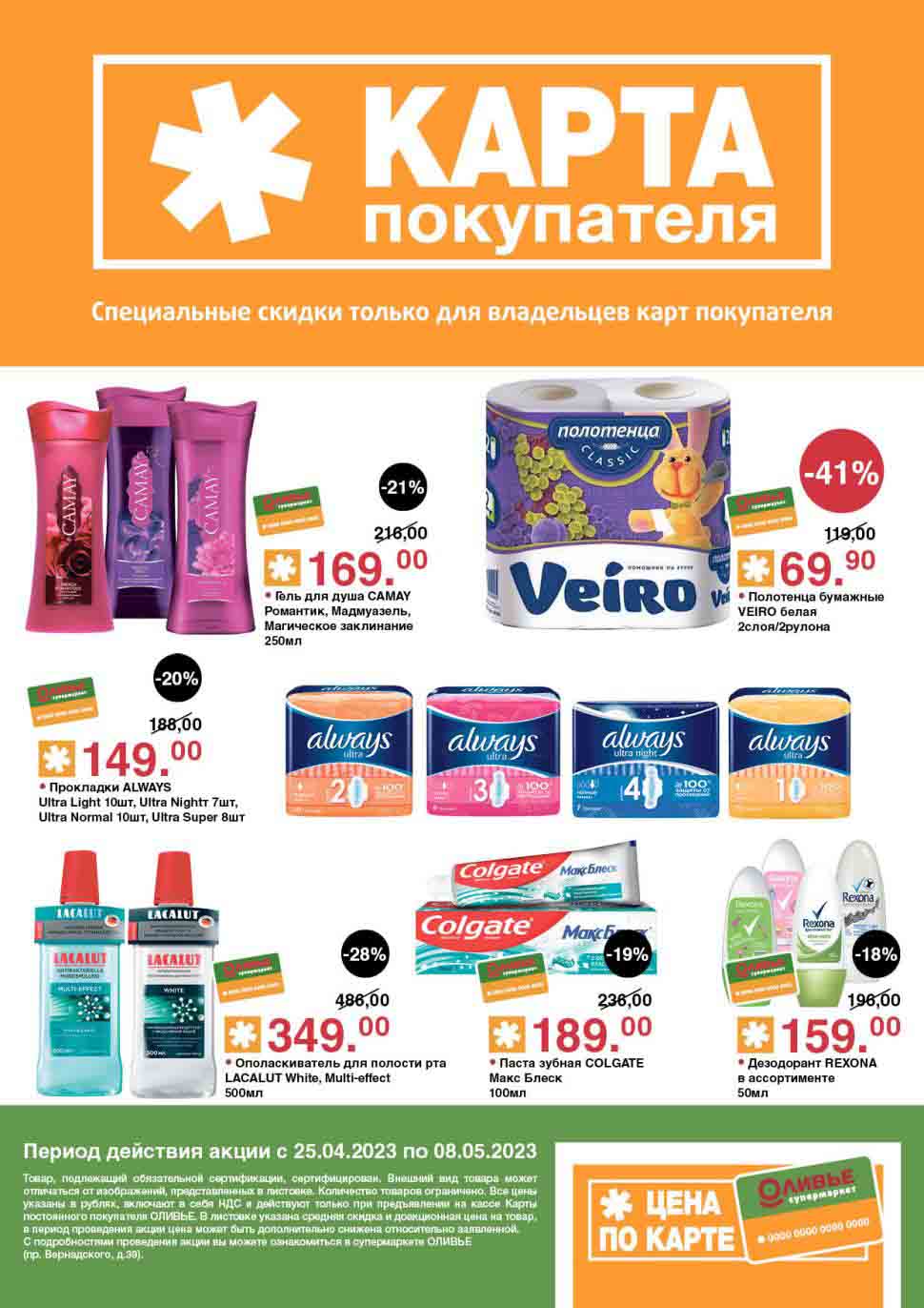 Оливье акции с 25 апреля — 8 мая. Скидки по карте покупателя