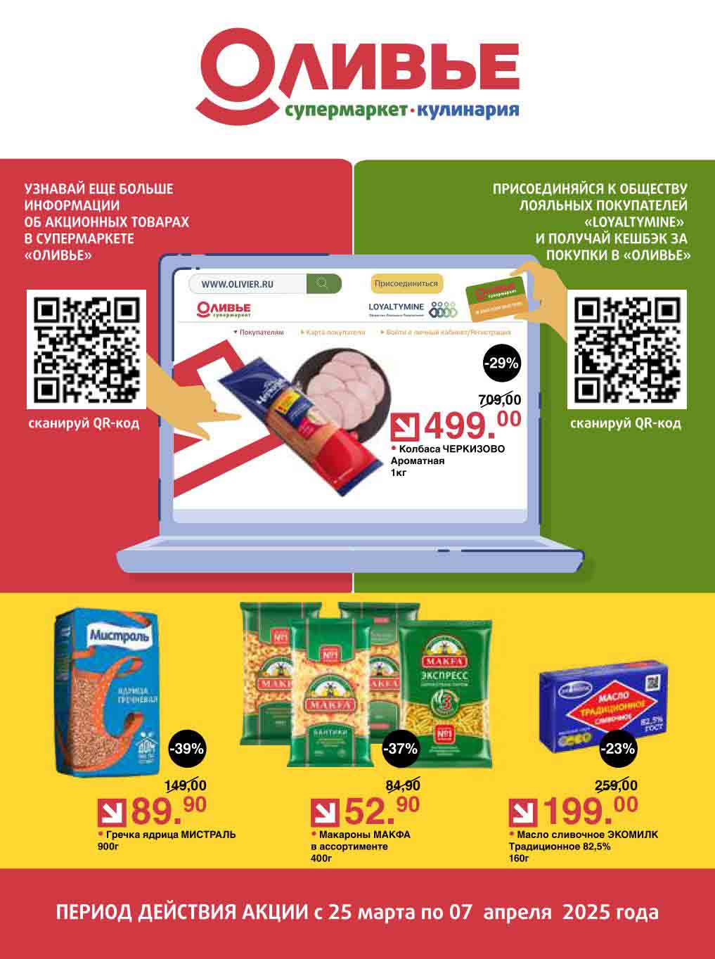 Оливье акции с 25 марта — 7 апреля 2025. Регулярный каталог супермаркета