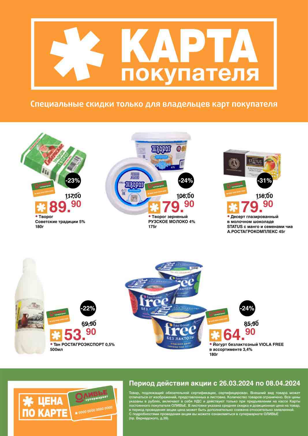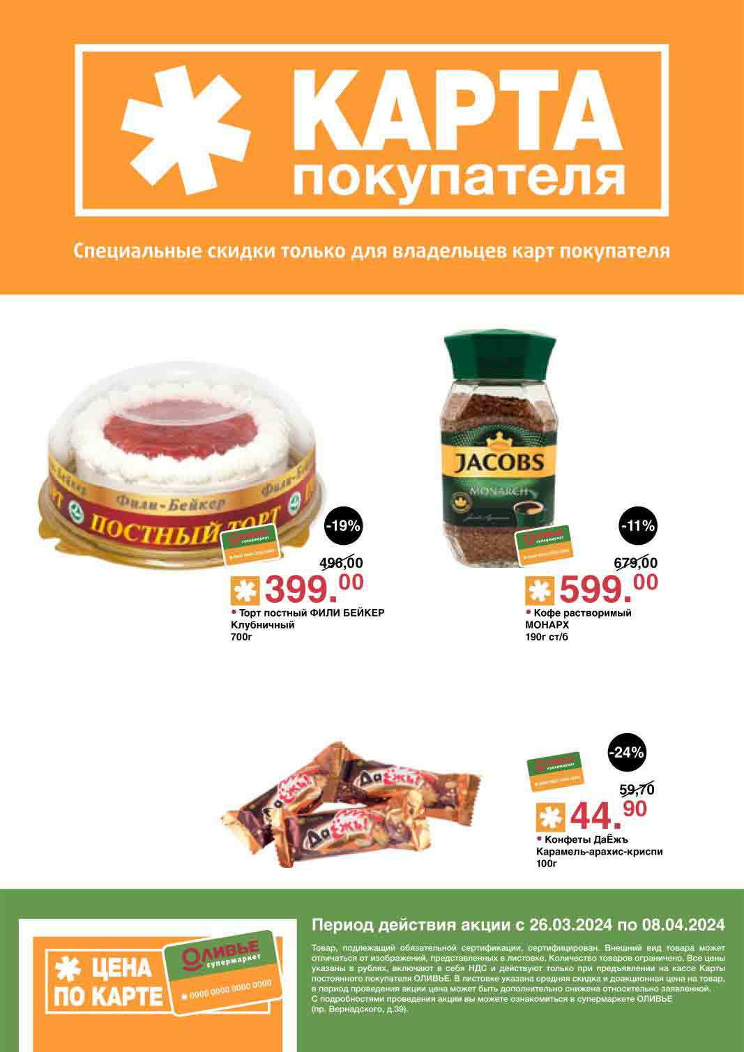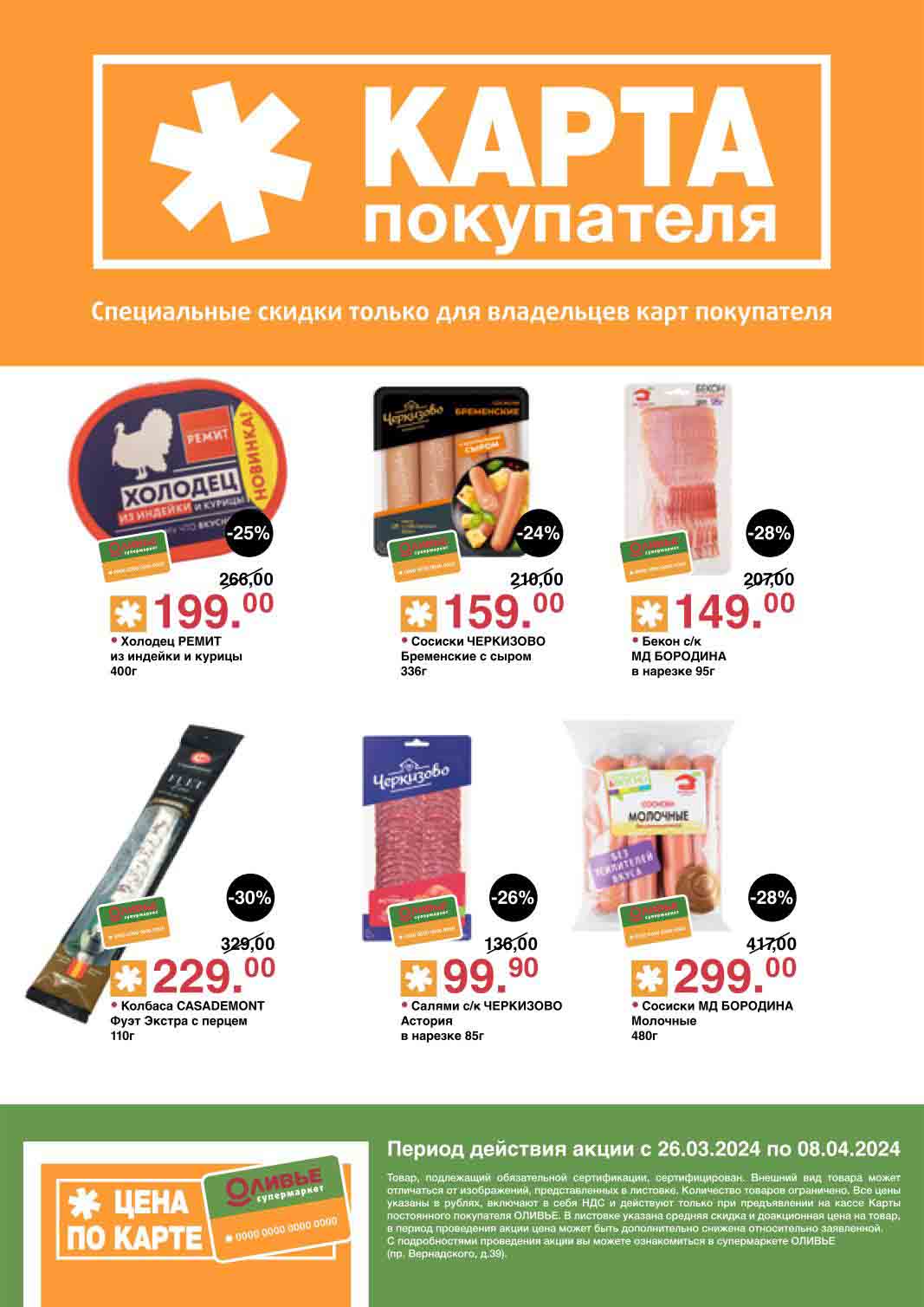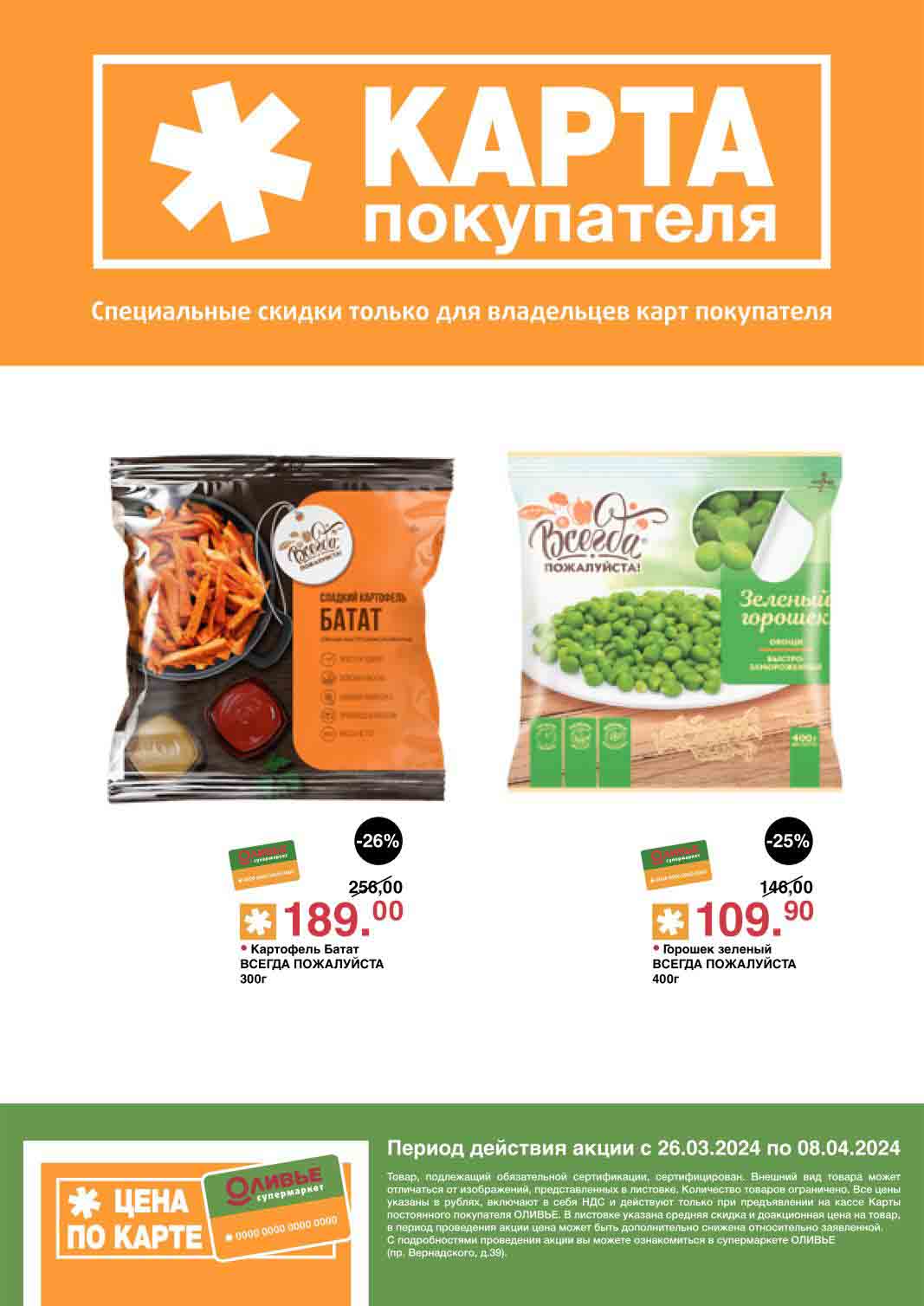 Оливье акции с 26 марта — 8 апреля 2024. Скидки по карте покупателя