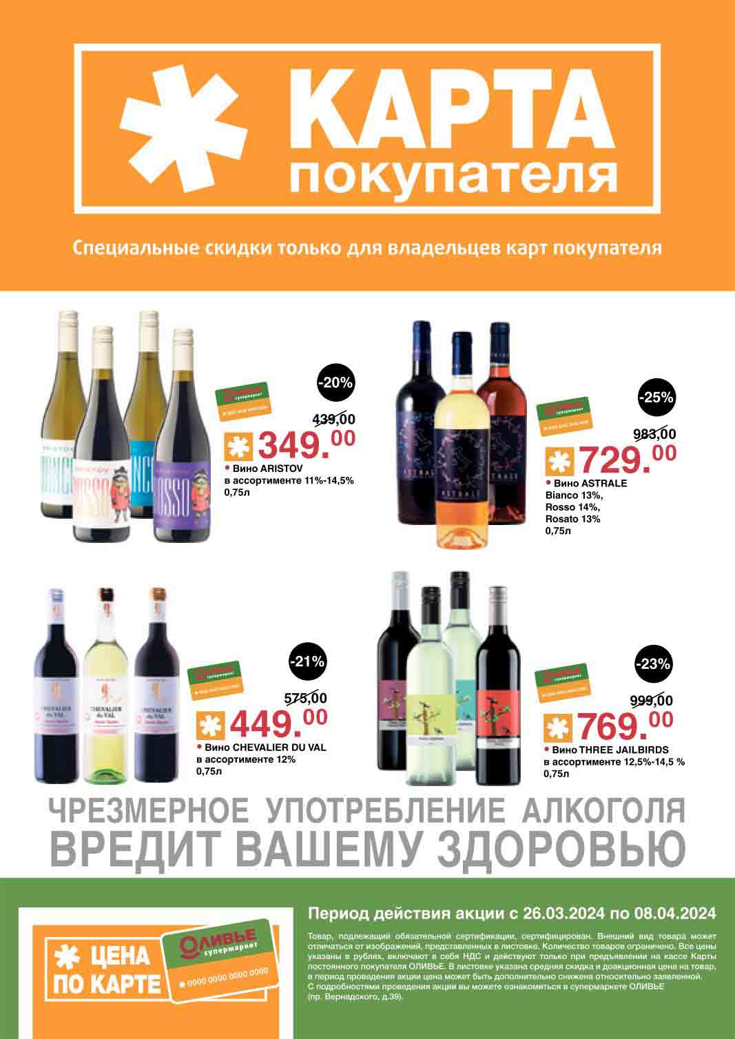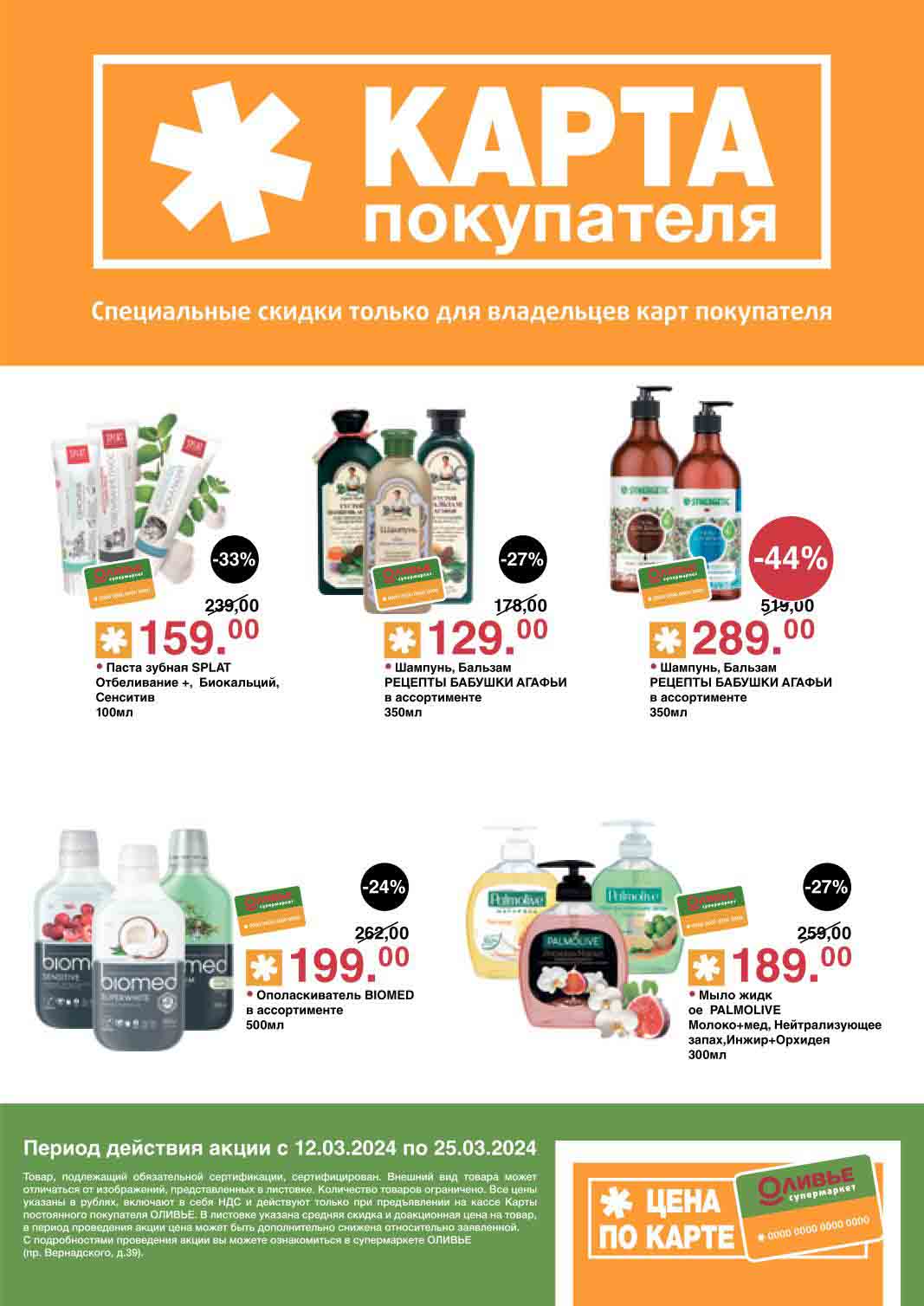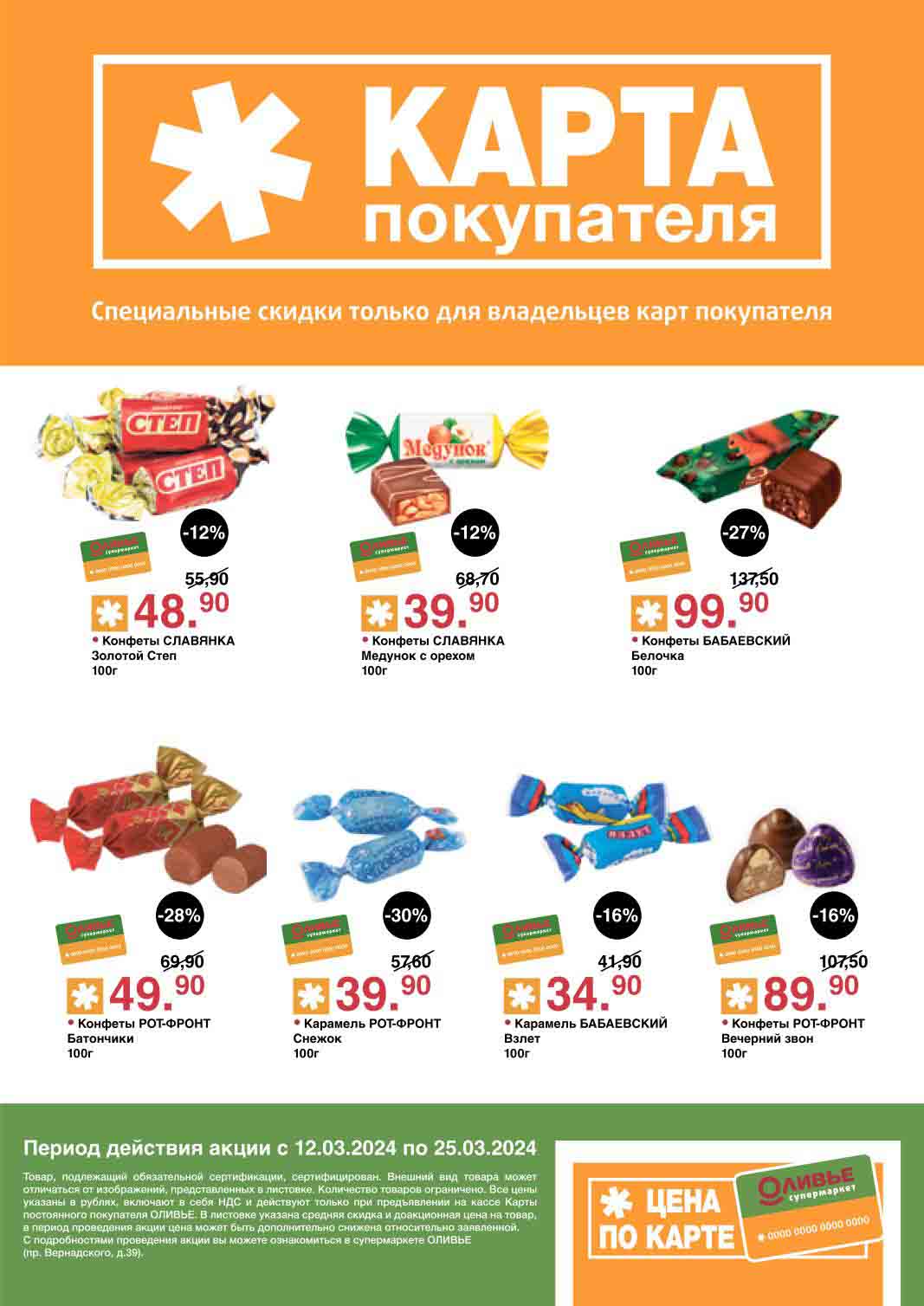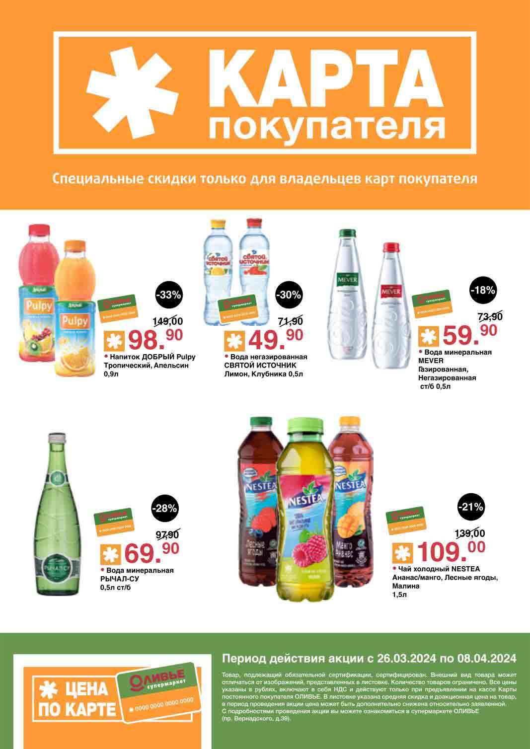 Оливье акции с 26 марта — 8 апреля 2024. Скидки по карте покупателя