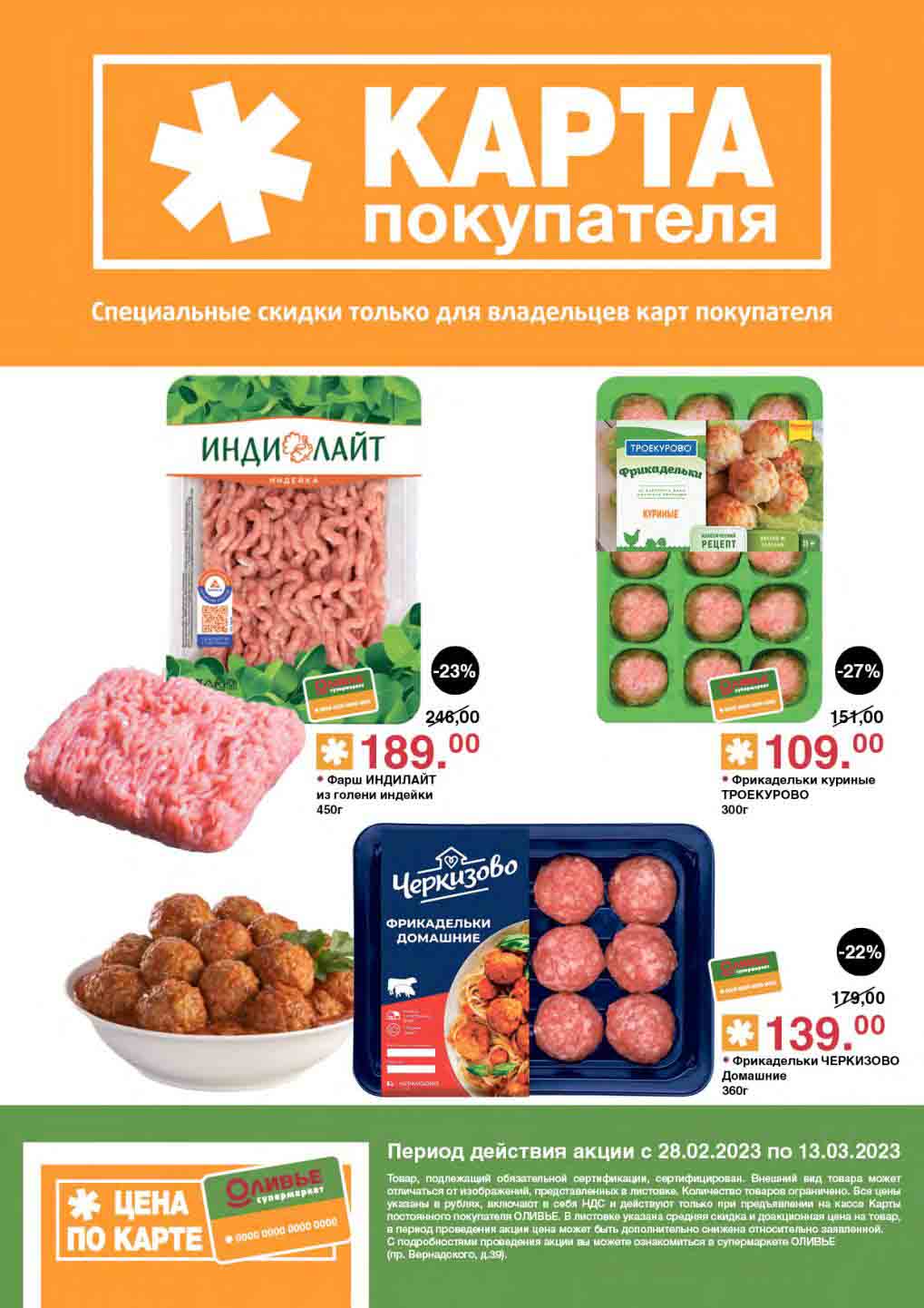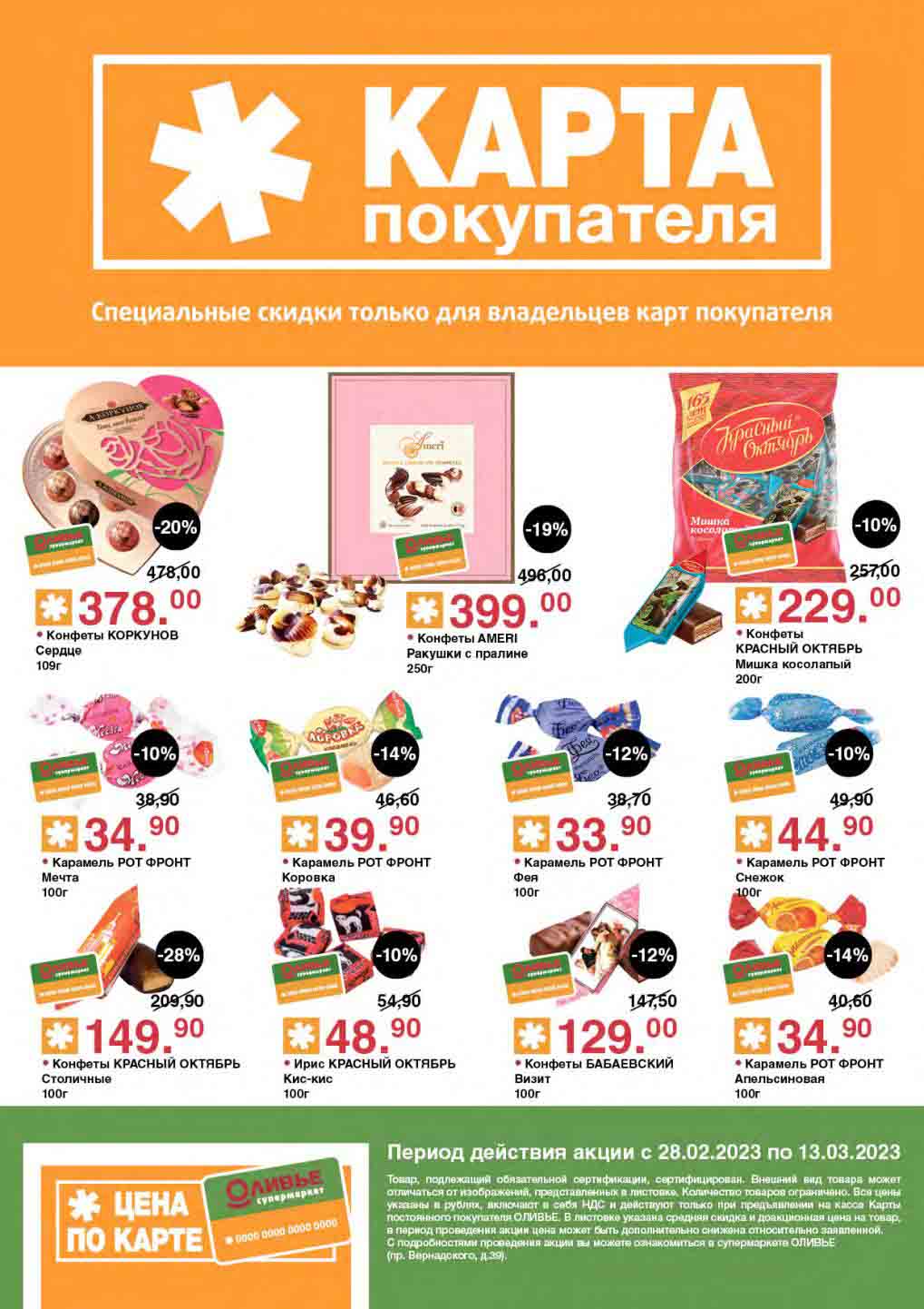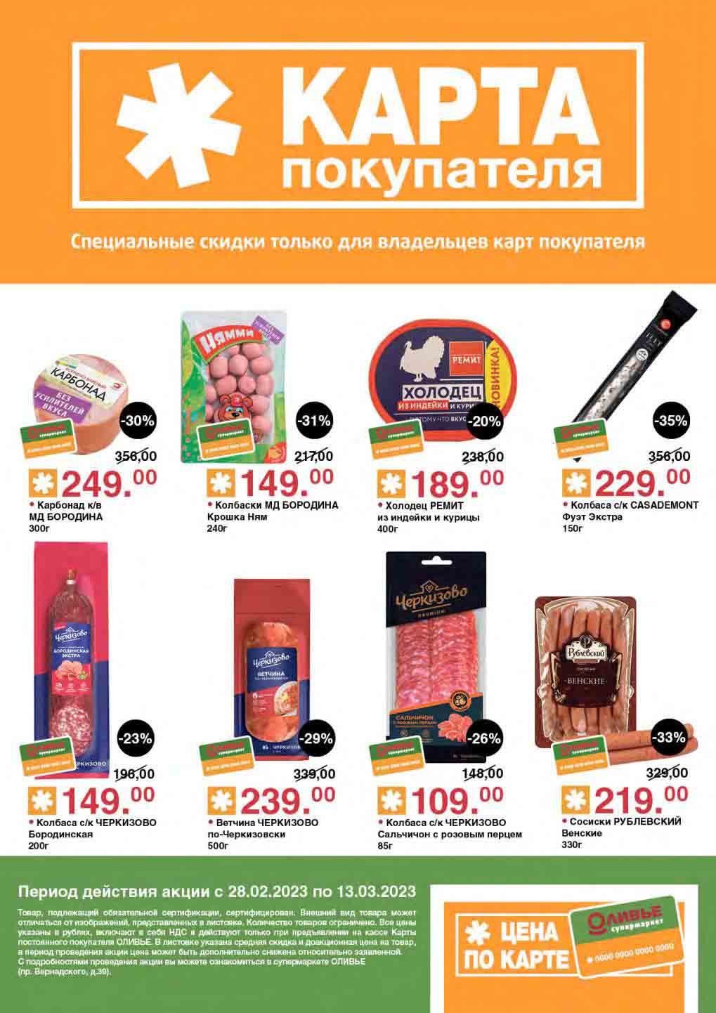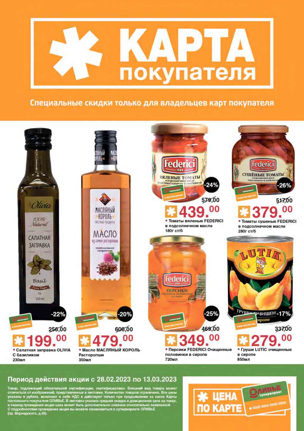 Оливье акции с 28 февраля — 13 марта. Скидки по карте покупателя