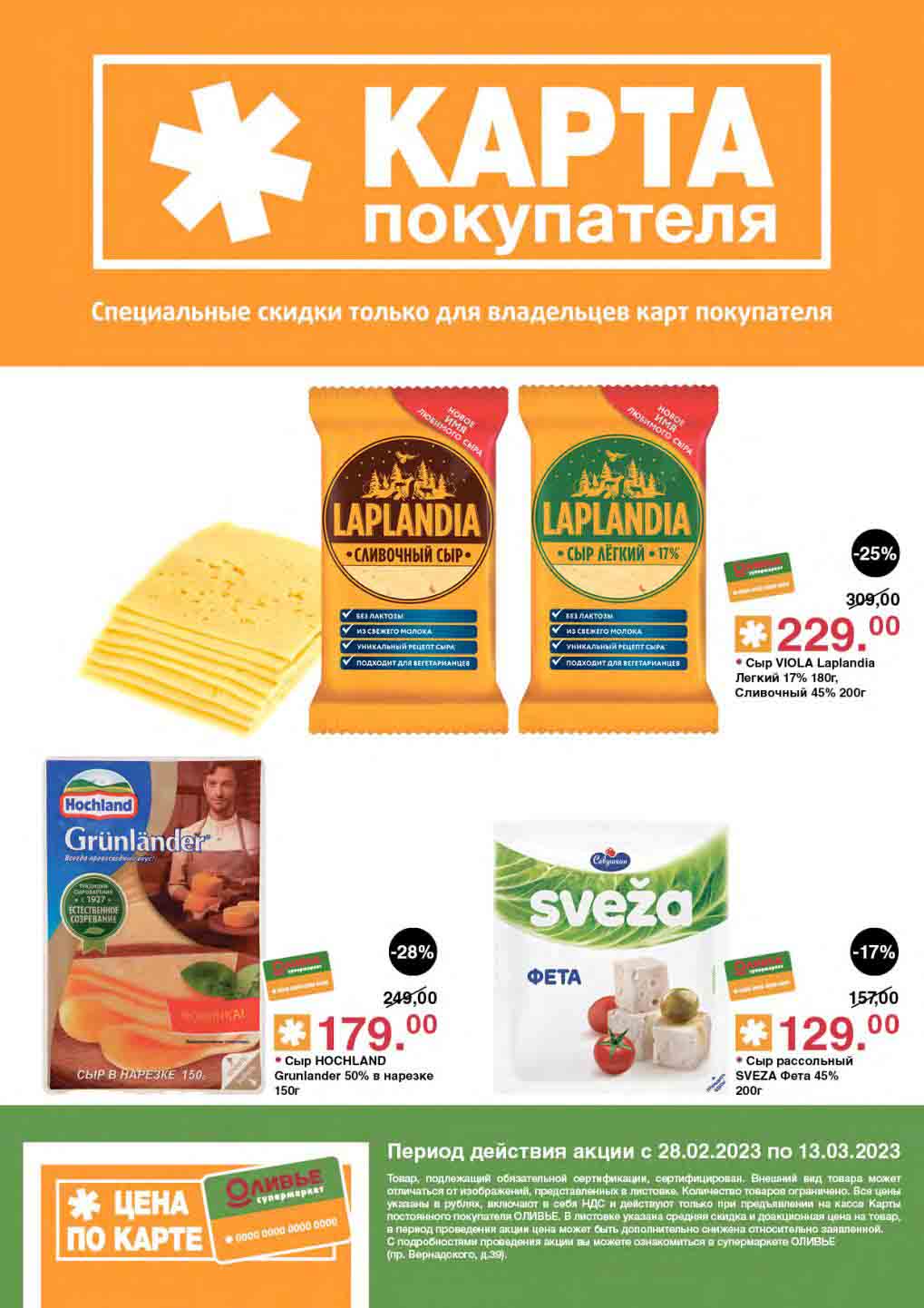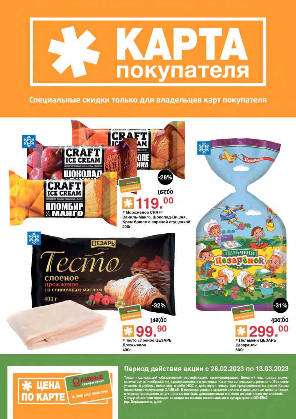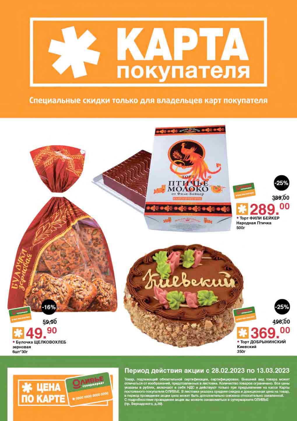 Оливье акции с 28 февраля — 13 марта. Скидки по карте покупателя