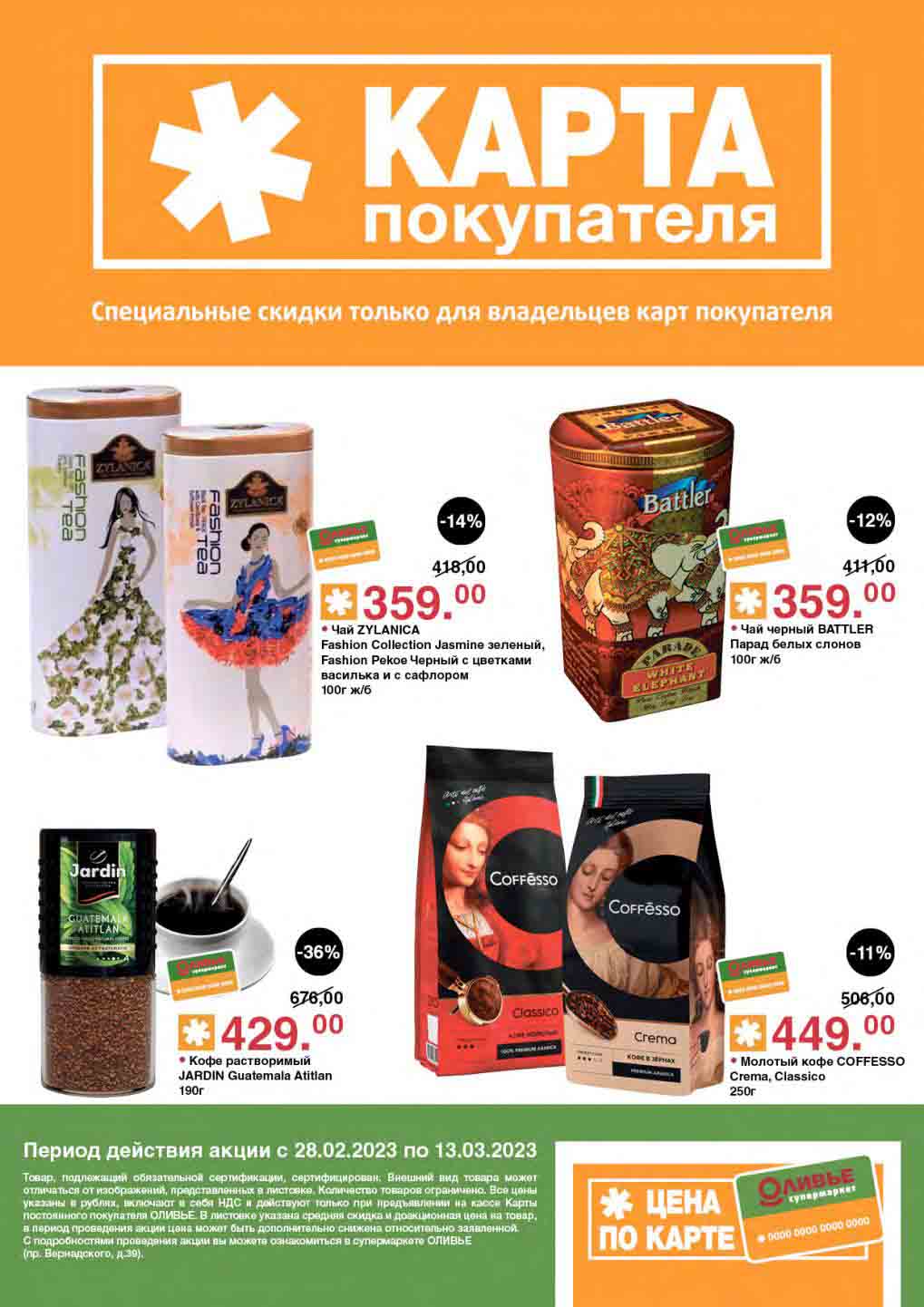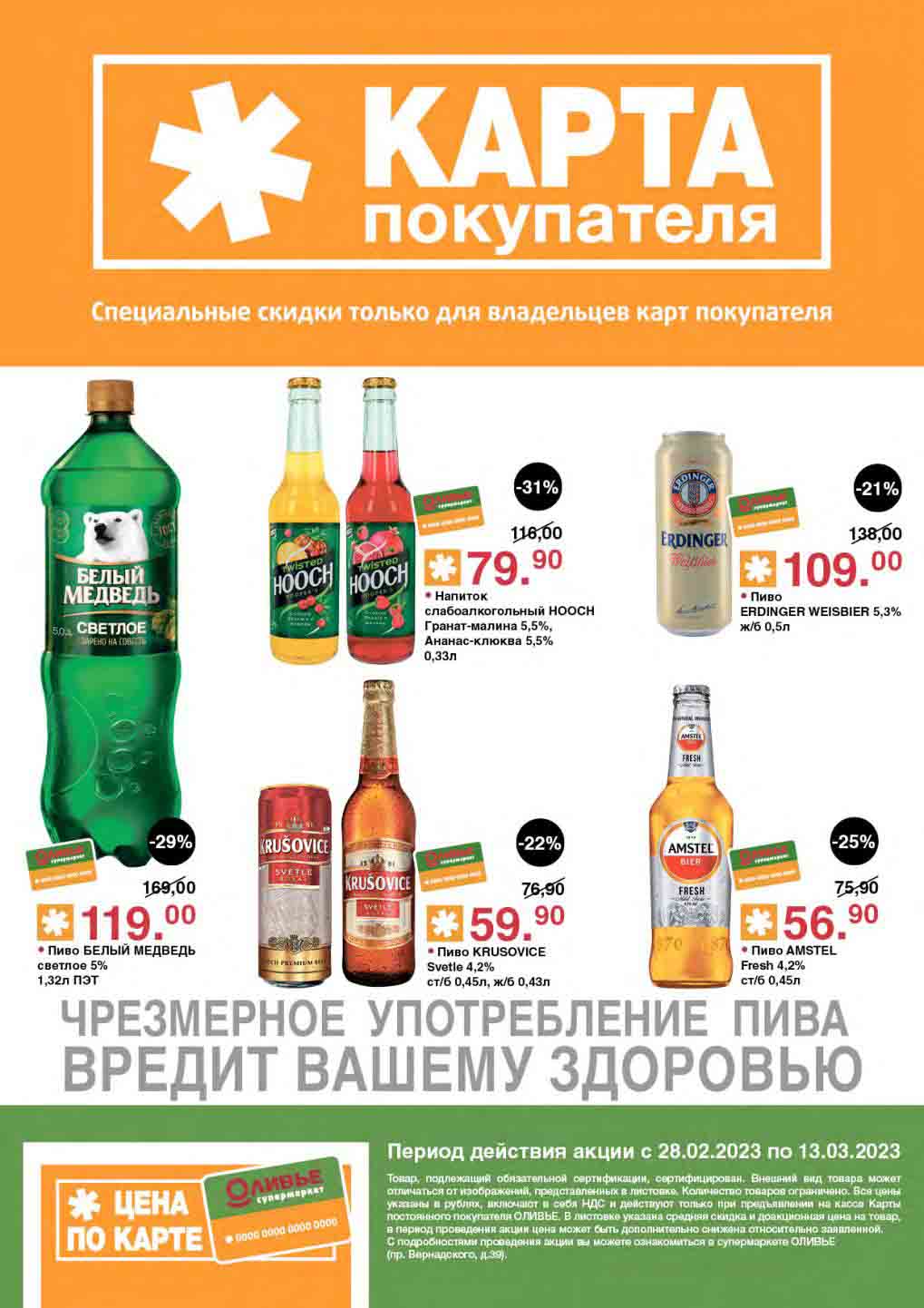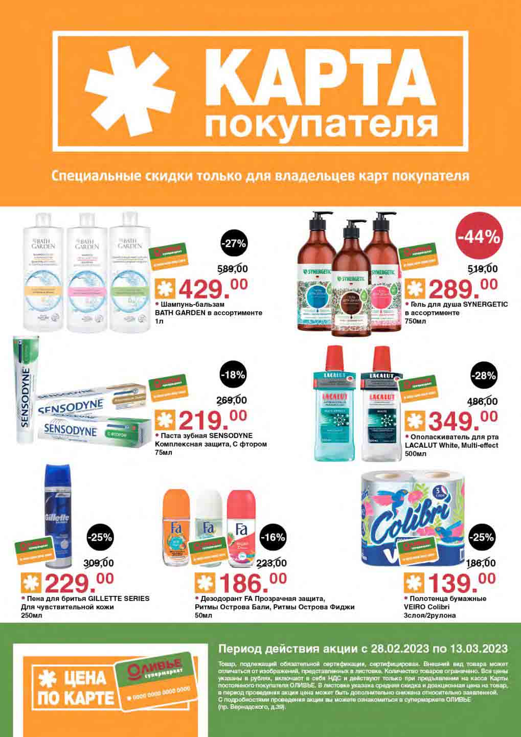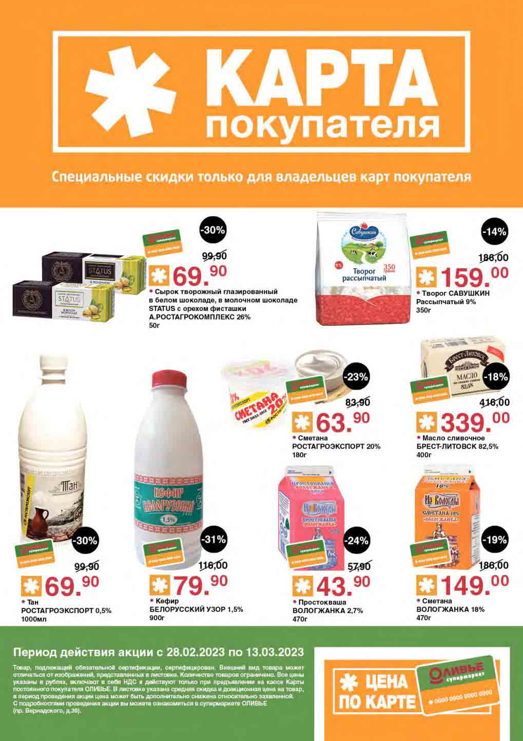 Оливье акции с 28 февраля — 13 марта. Скидки по карте покупателя