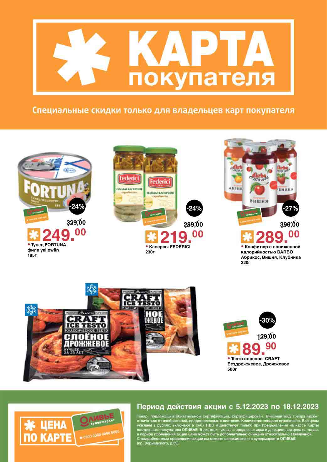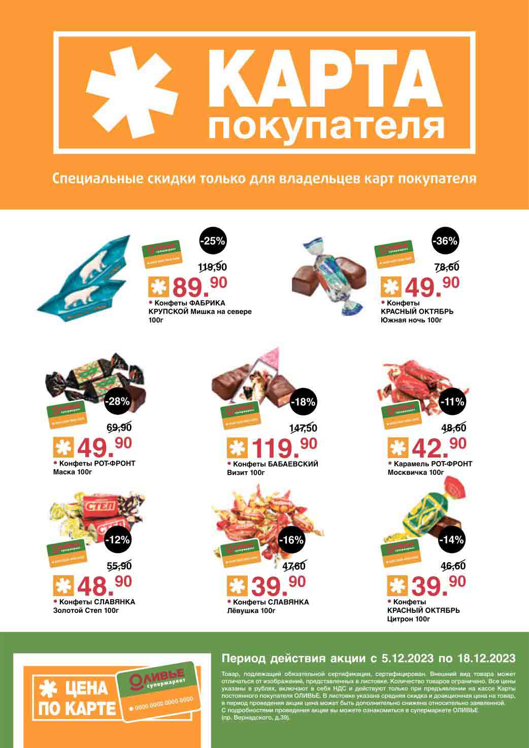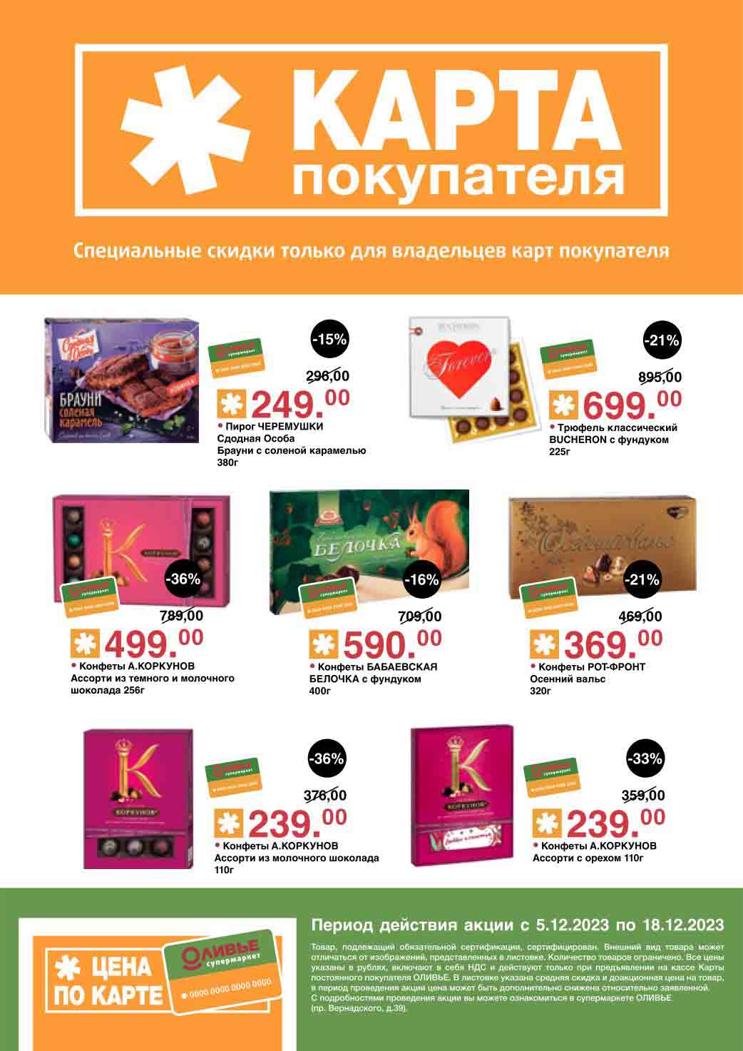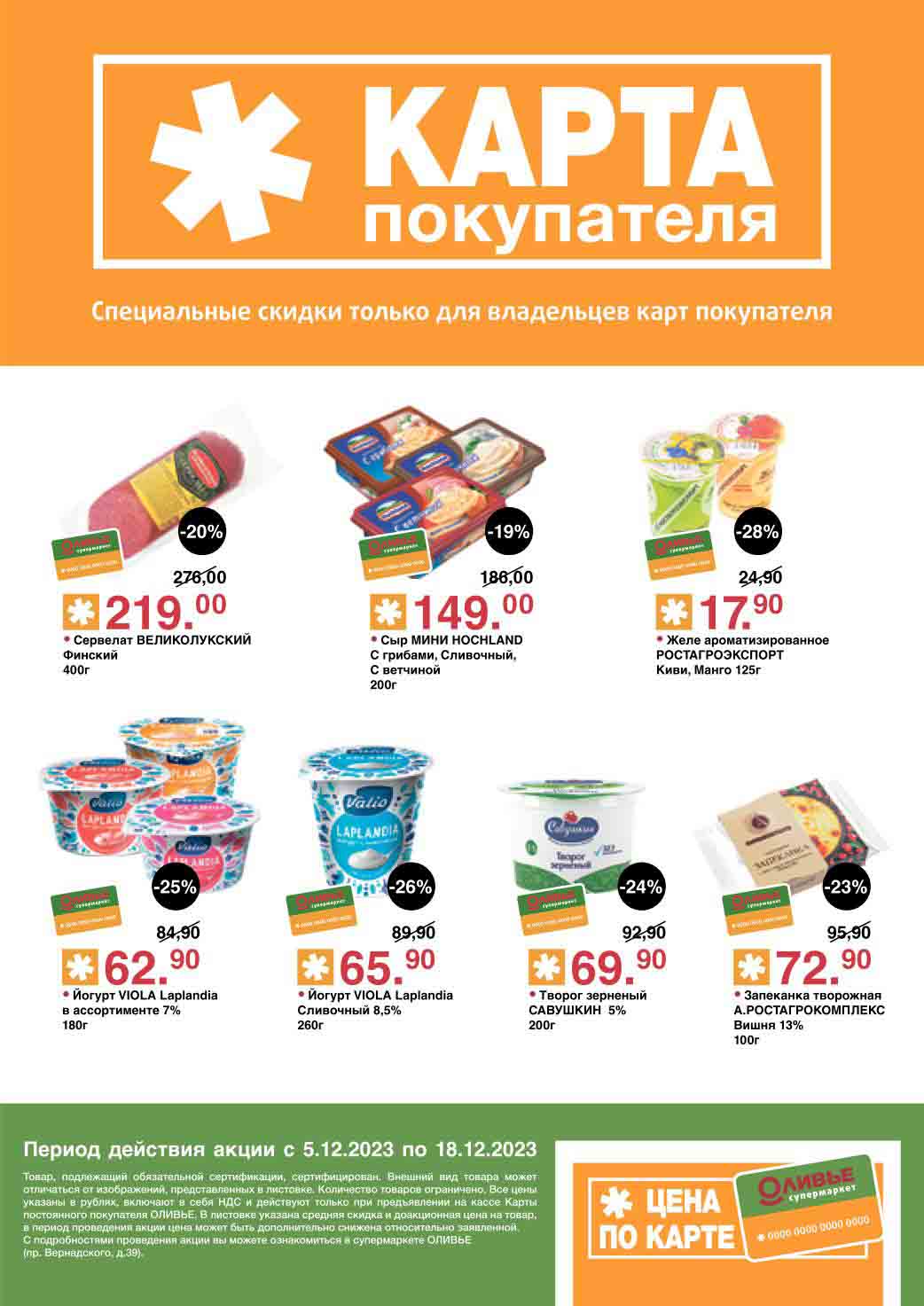 Оливье акции с 5 декабря — 18 декабря. Скидки по карте покупателя