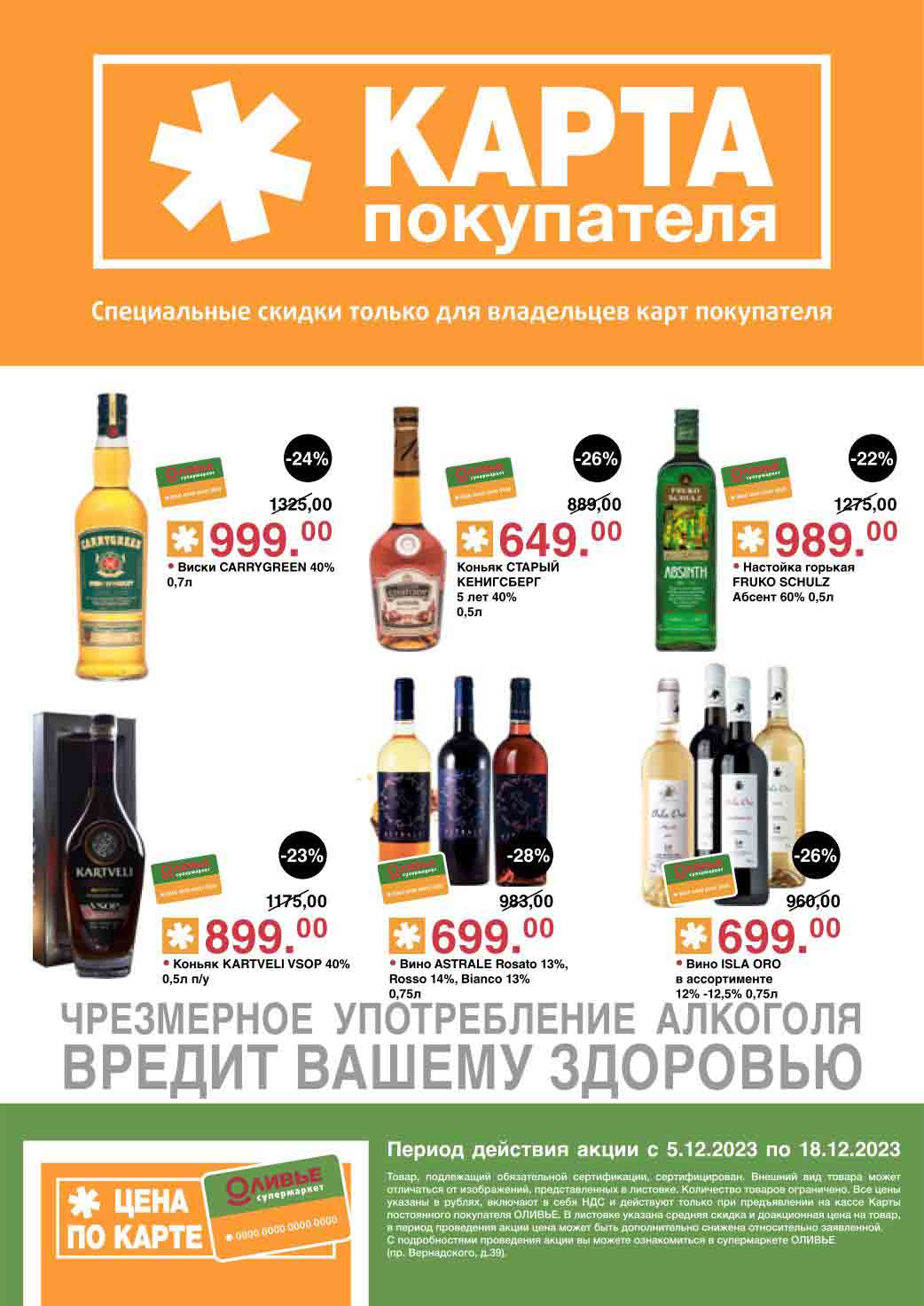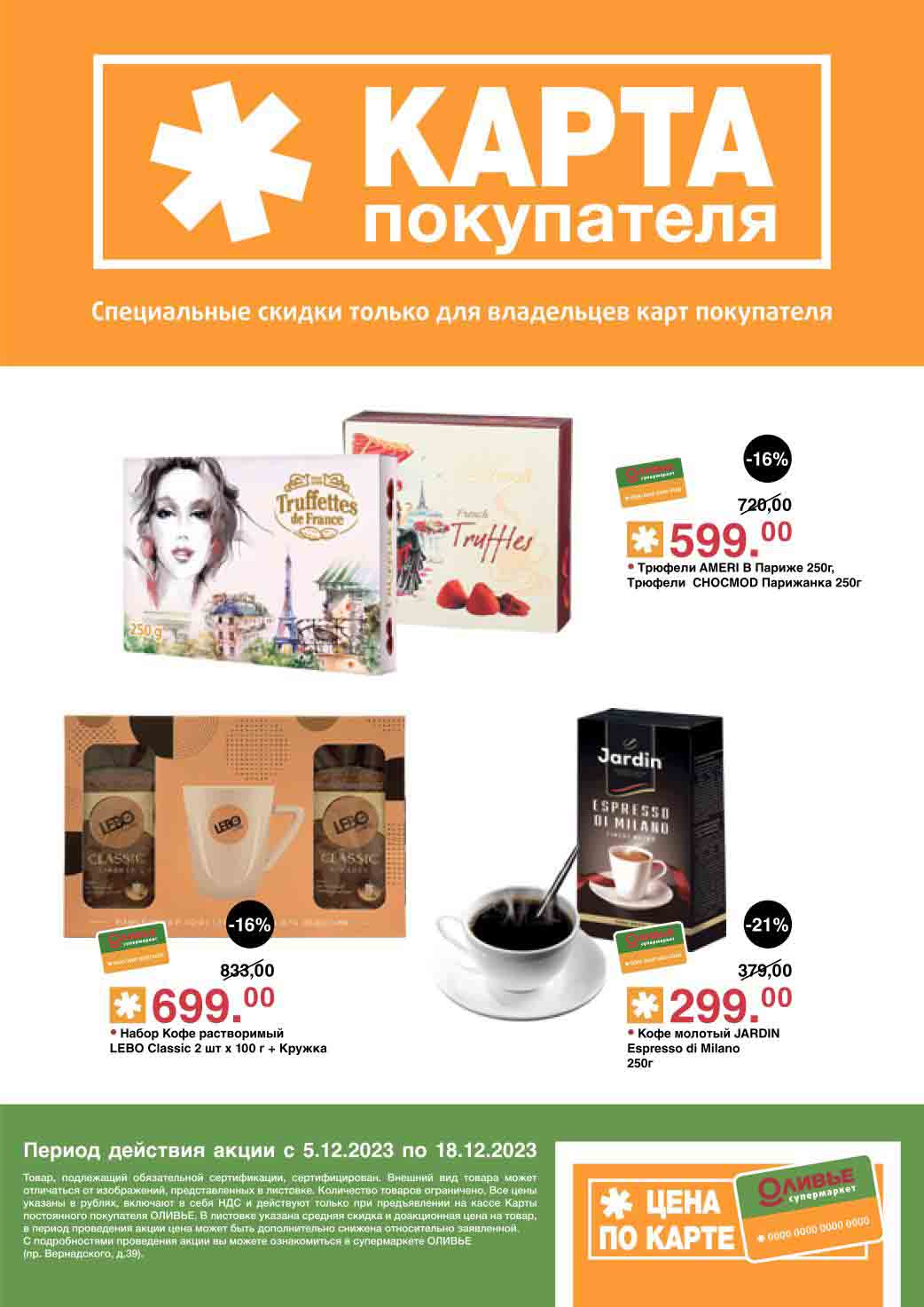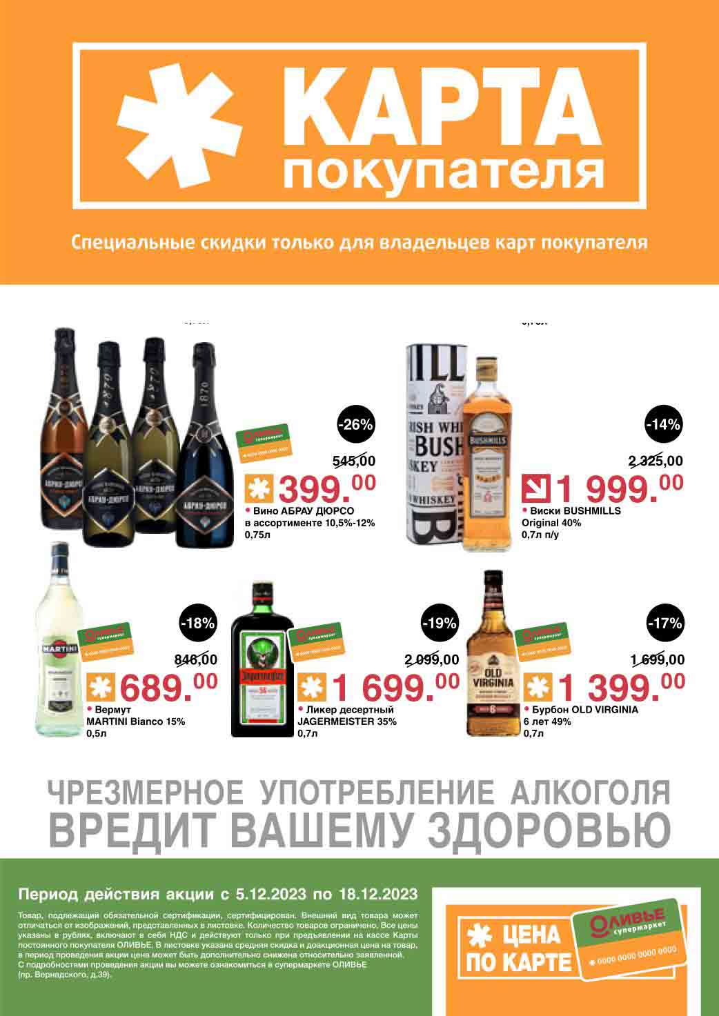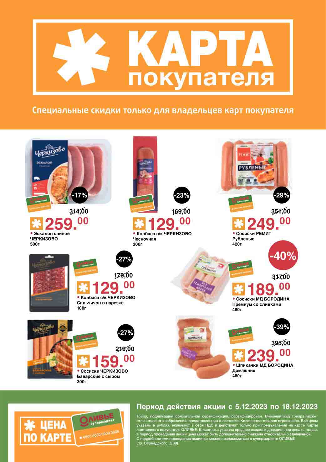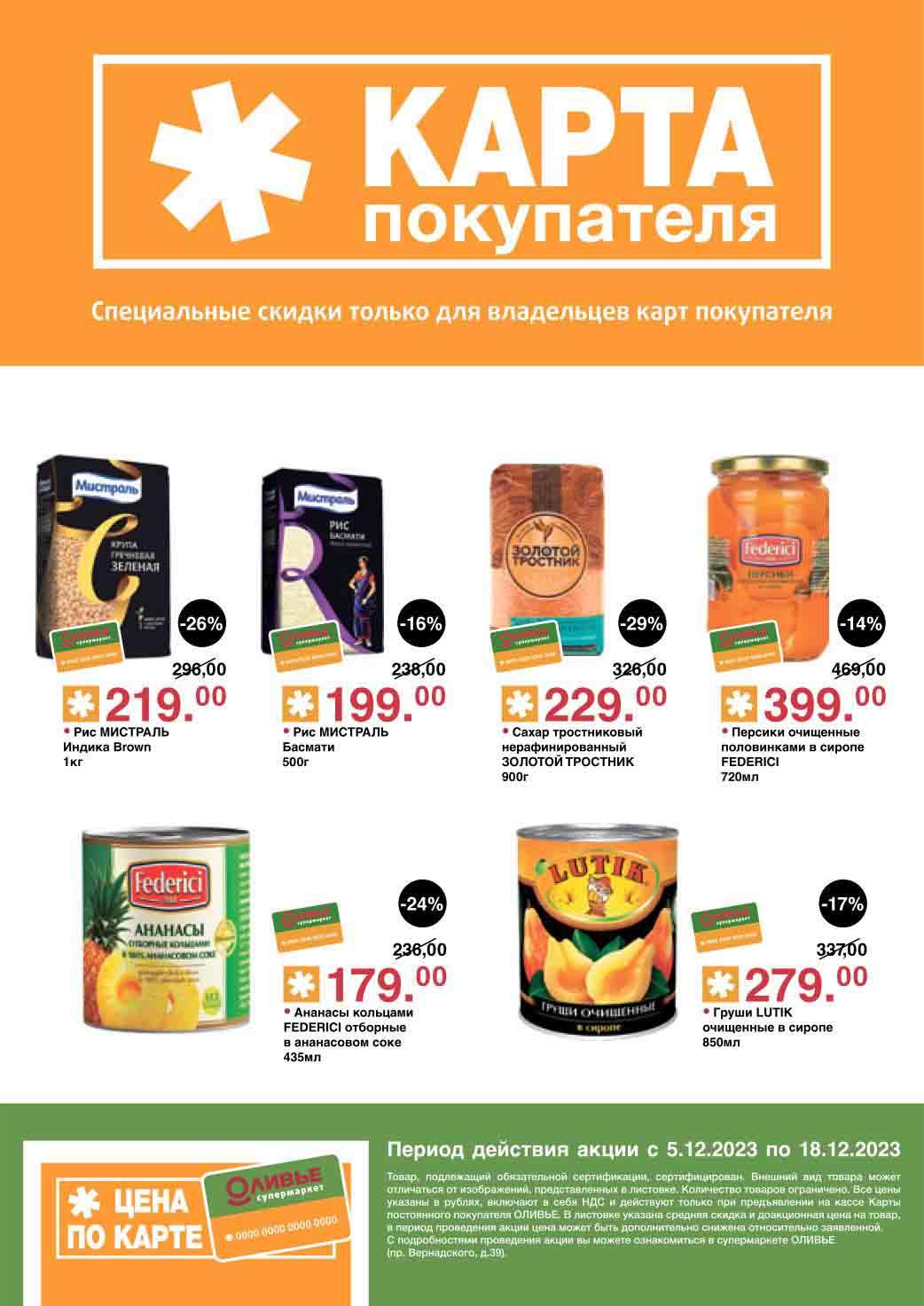 Оливье акции с 5 декабря — 18 декабря. Скидки по карте покупателя