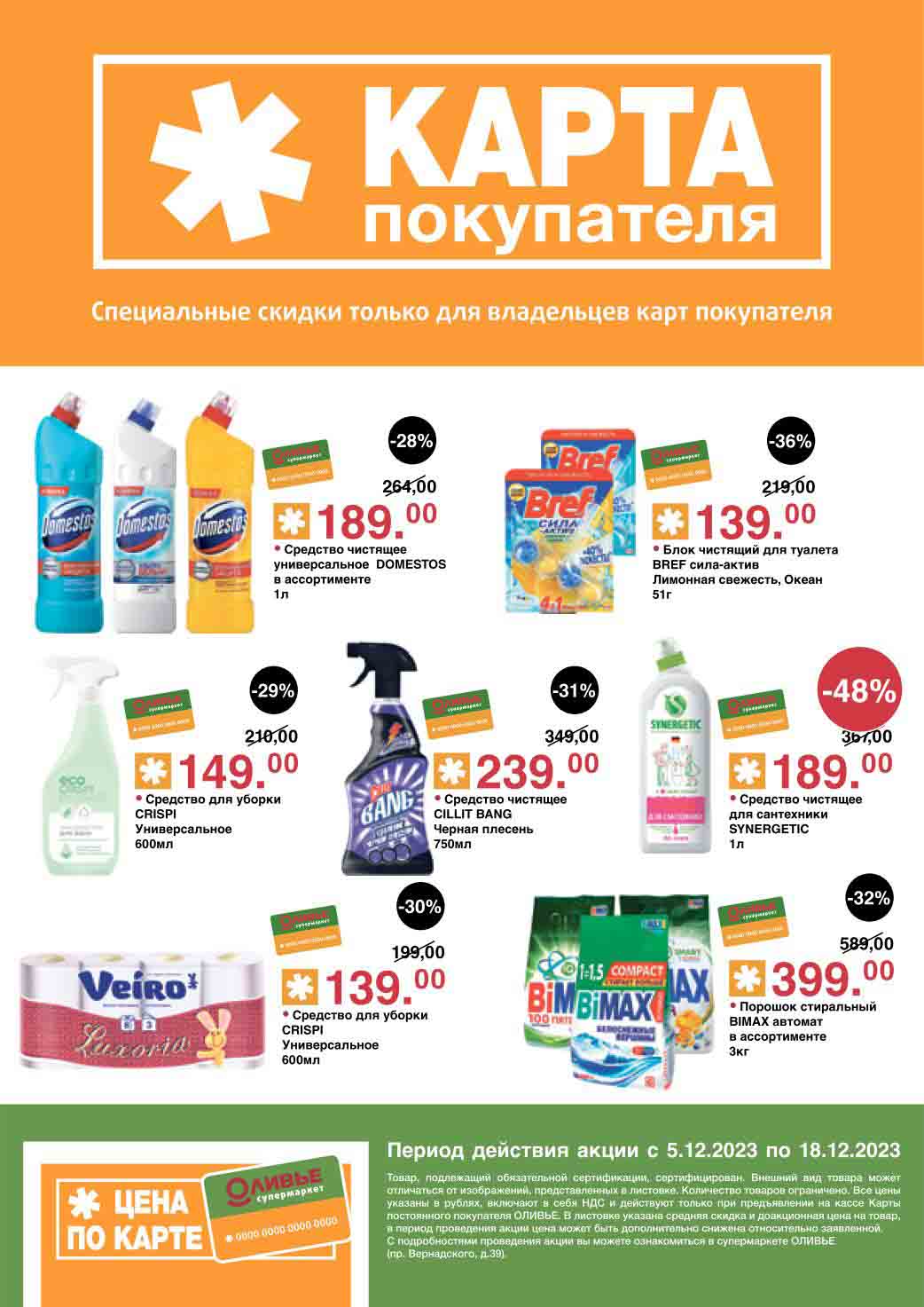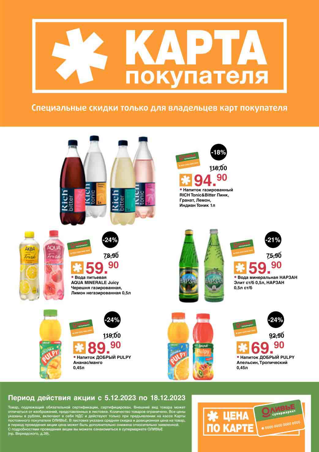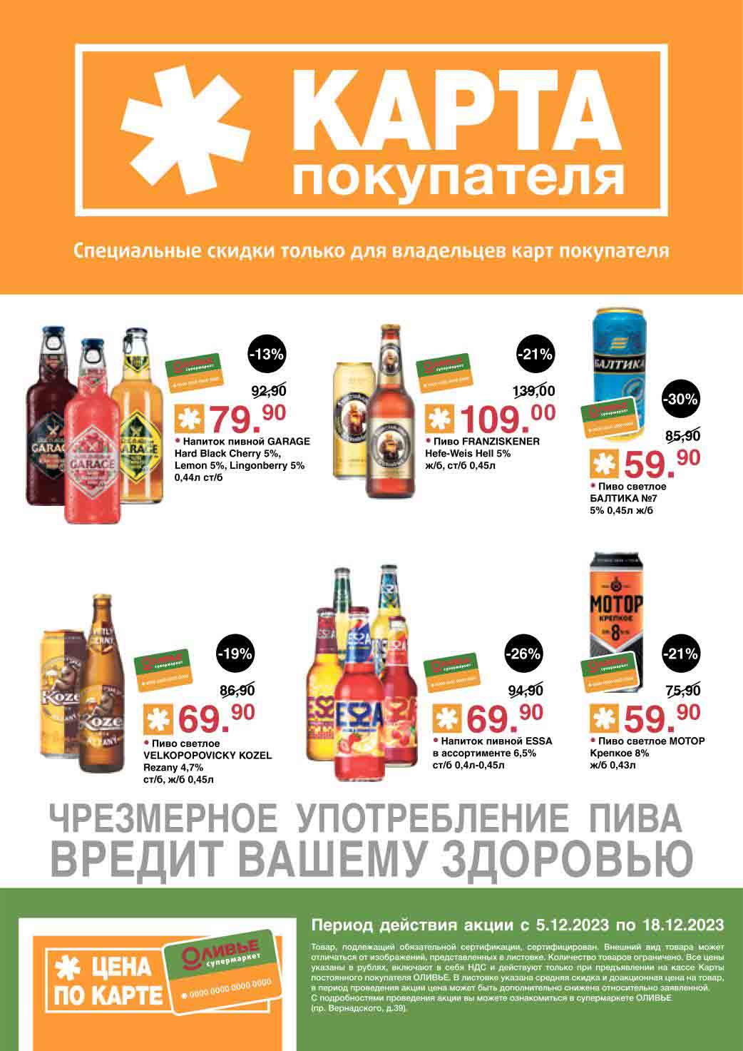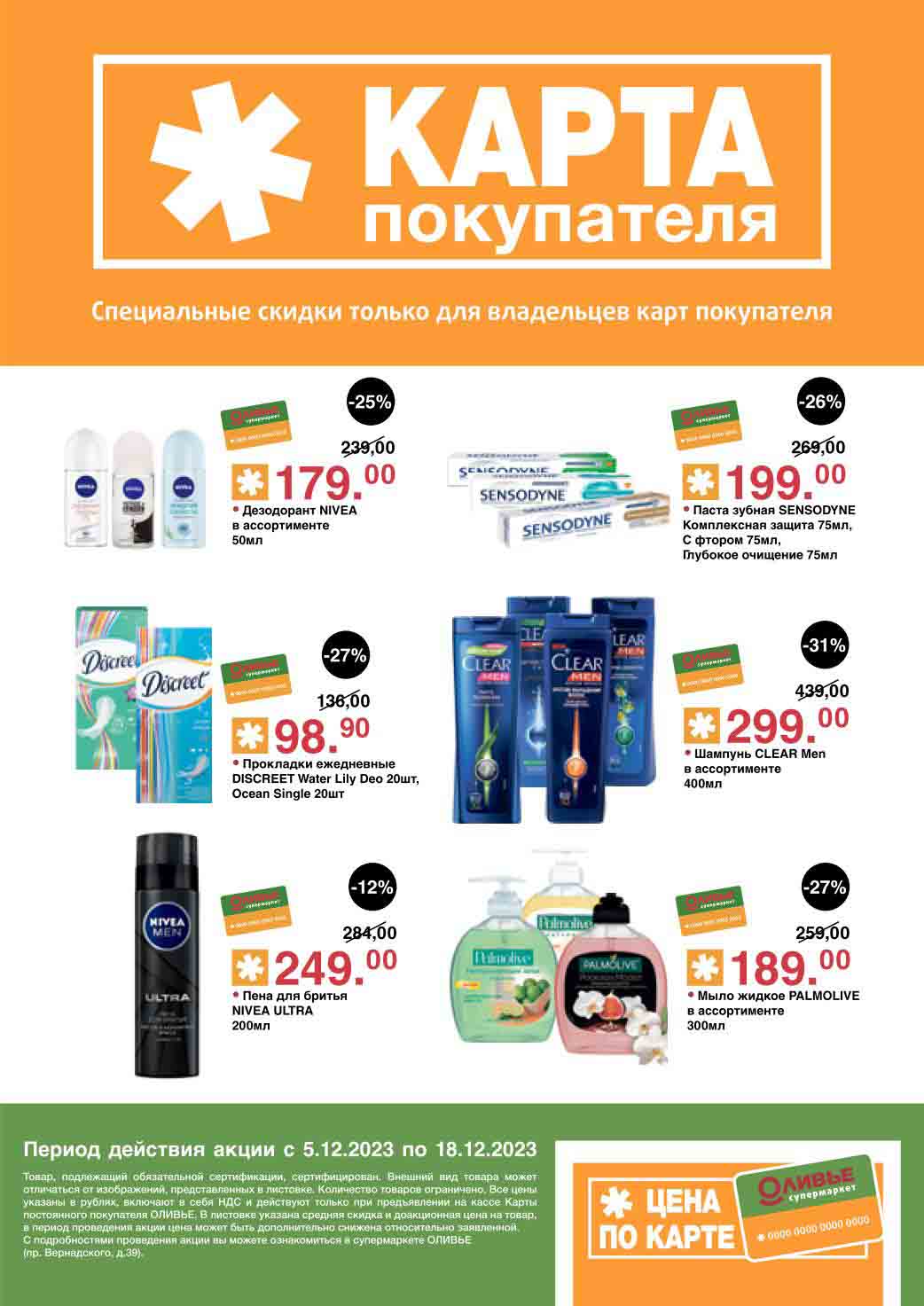 Оливье акции с 5 декабря — 18 декабря. Скидки по карте покупателя