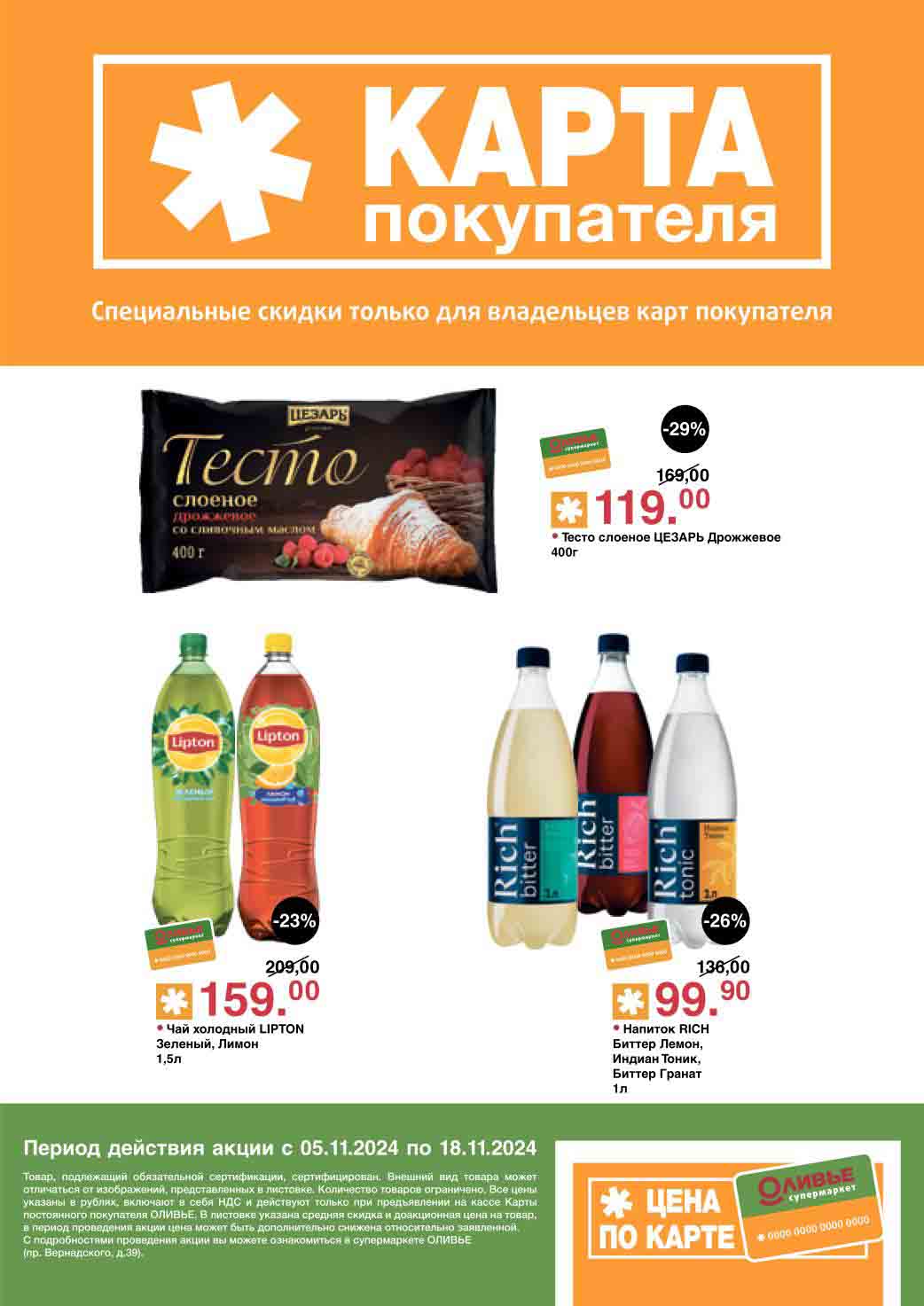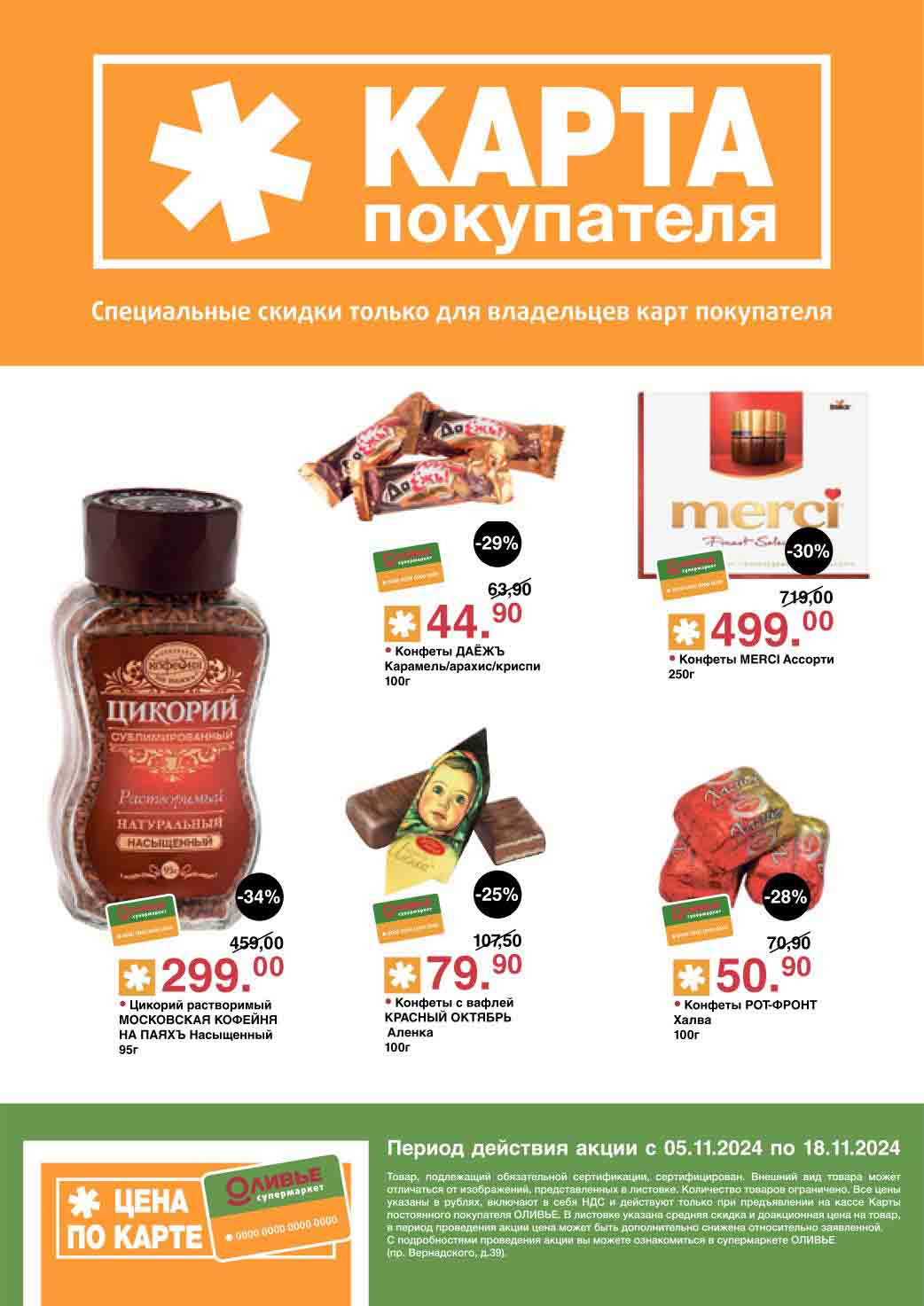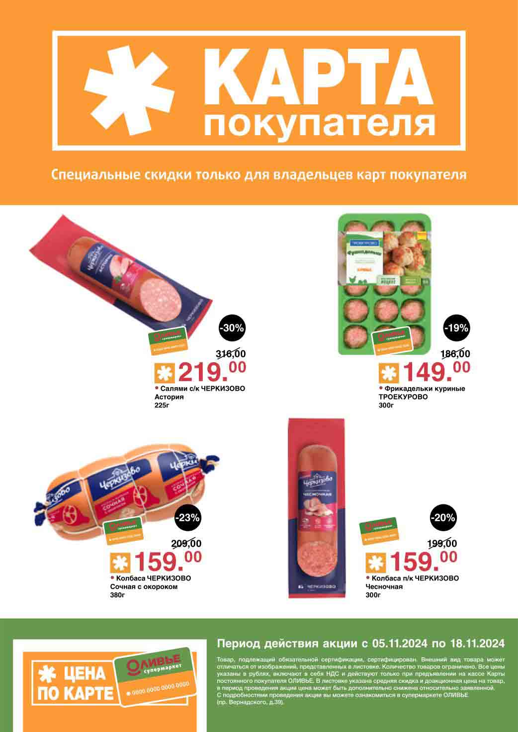 Оливье акции с 5 ноября — 18 ноября 2024. Скидки по карте покупателя