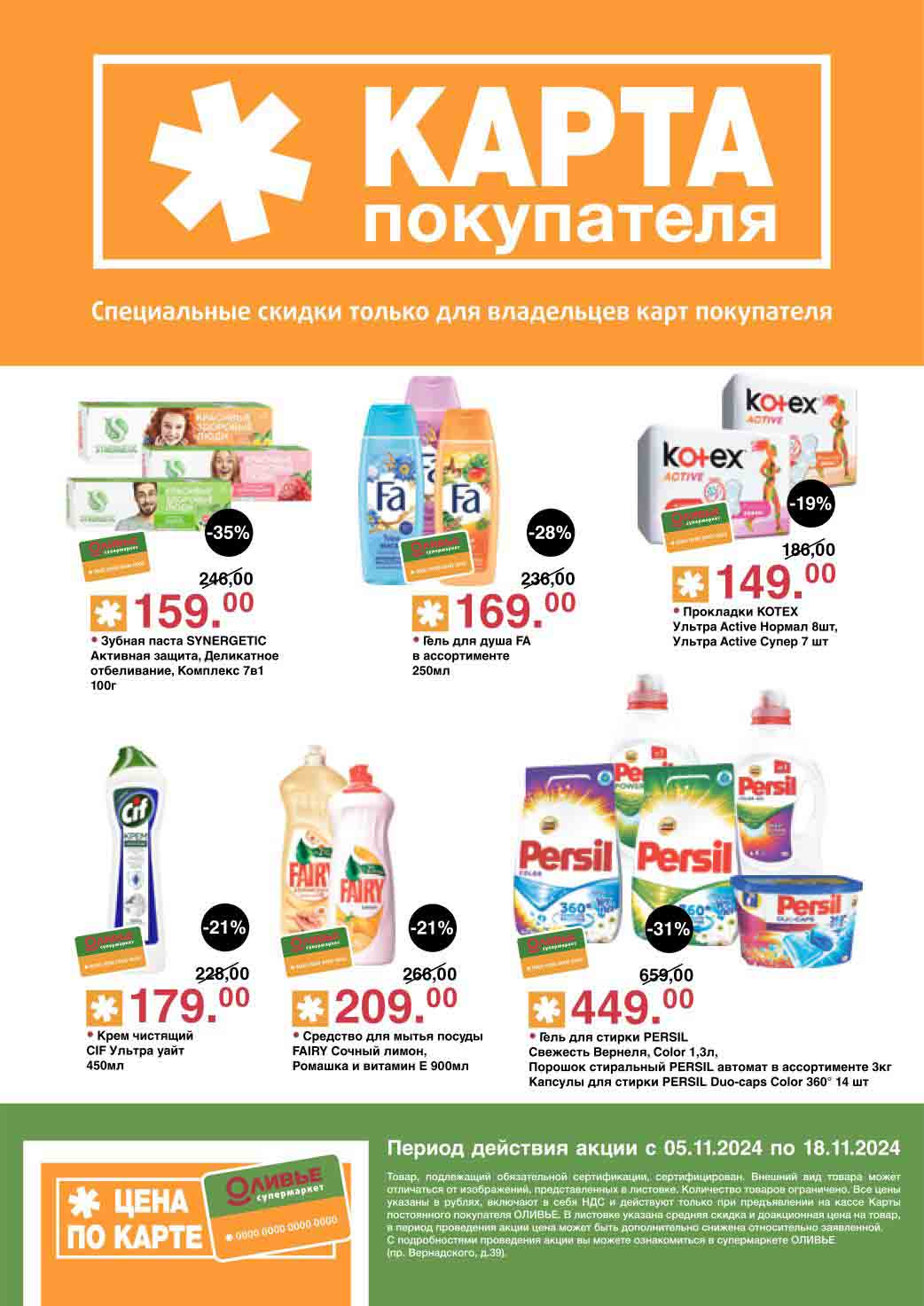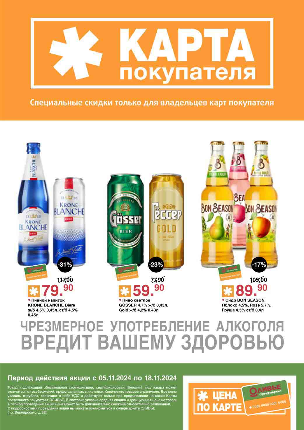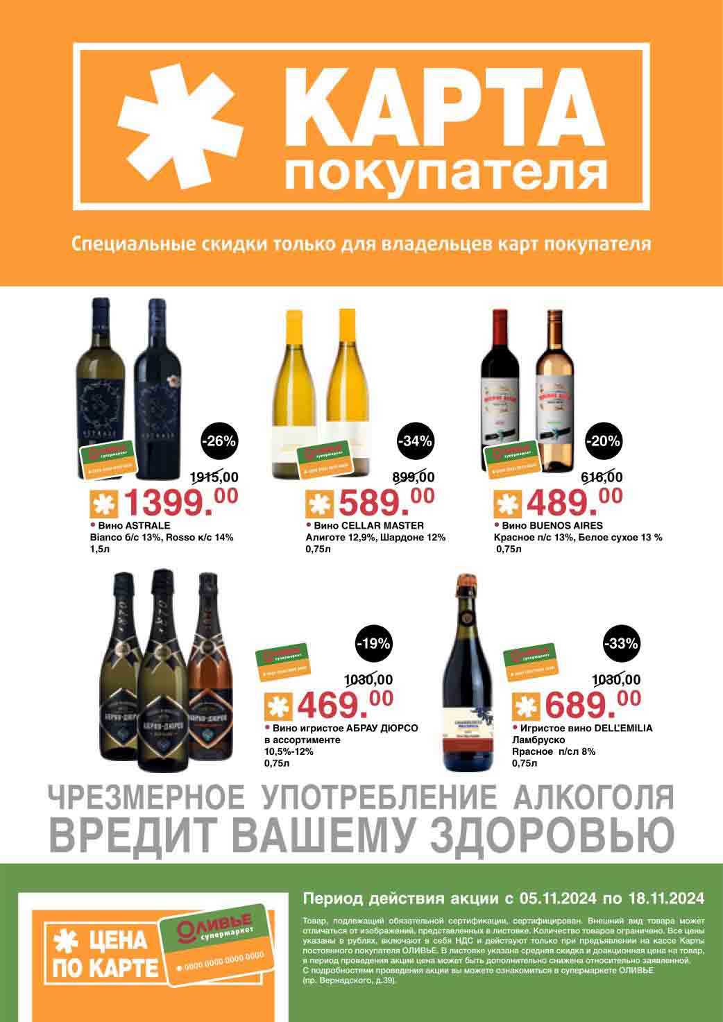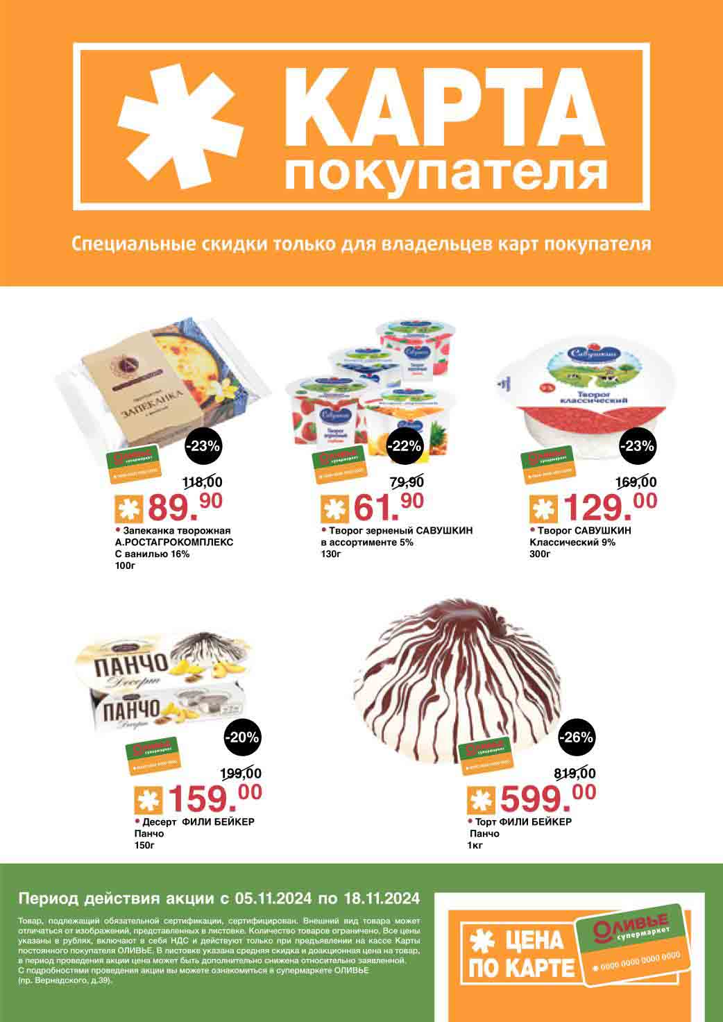 Оливье акции с 5 ноября — 18 ноября 2024. Скидки по карте покупателя