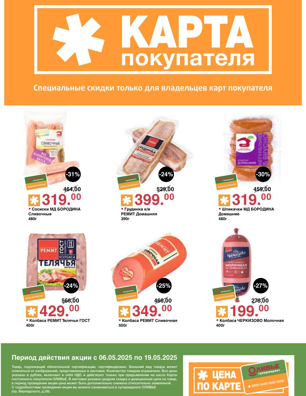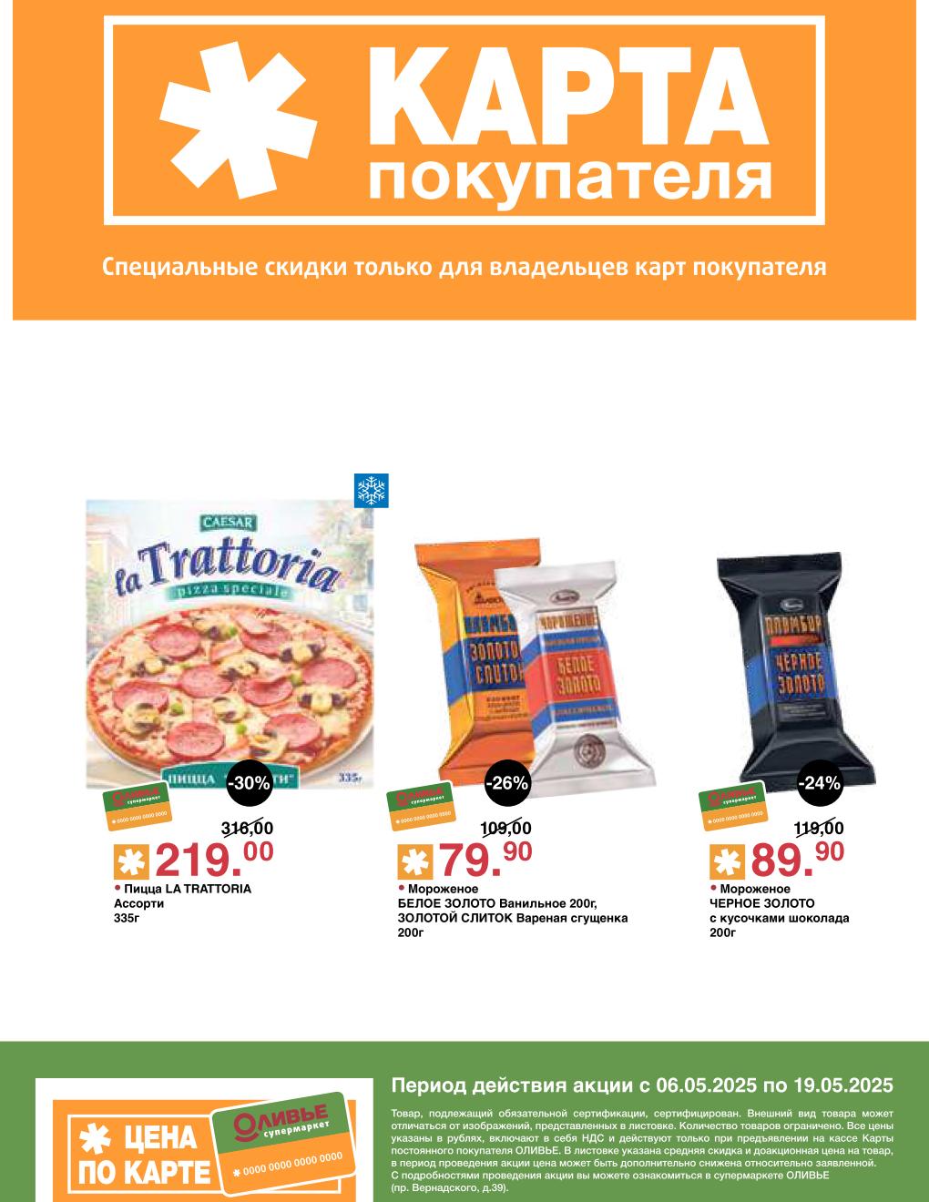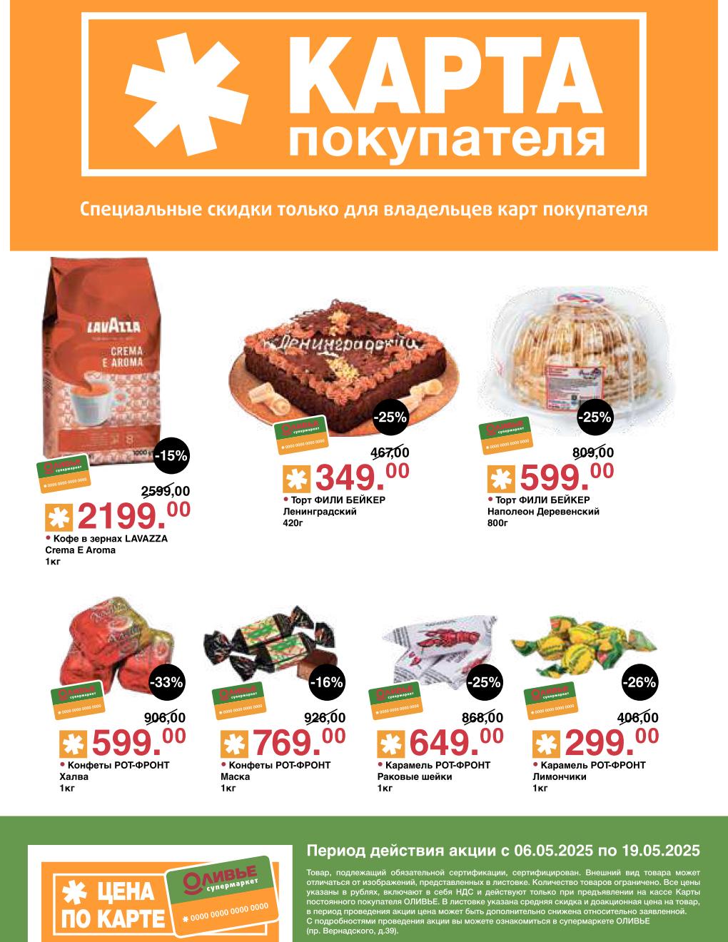 Оливье акции с 6 мая — 19 мая 2025. Скидки по карте покупателя