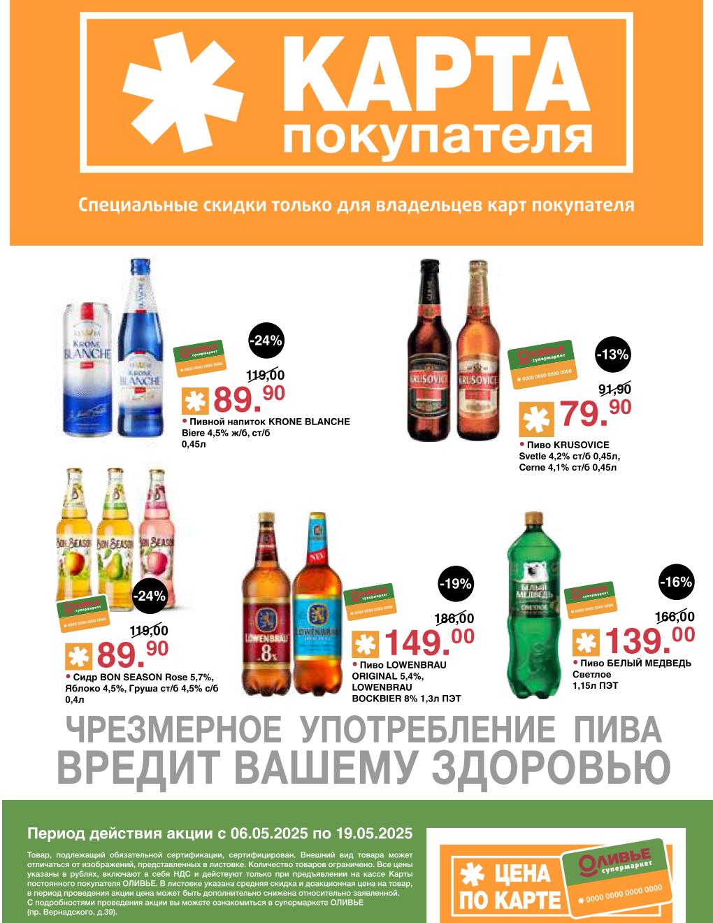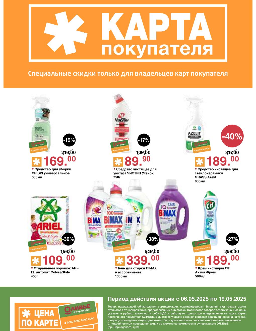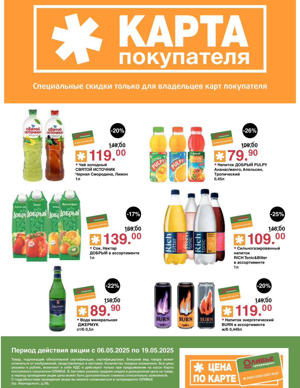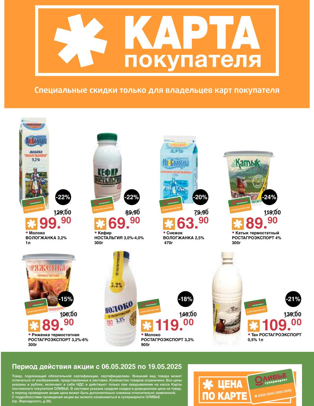 Оливье акции с 6 мая — 19 мая 2025. Скидки по карте покупателя