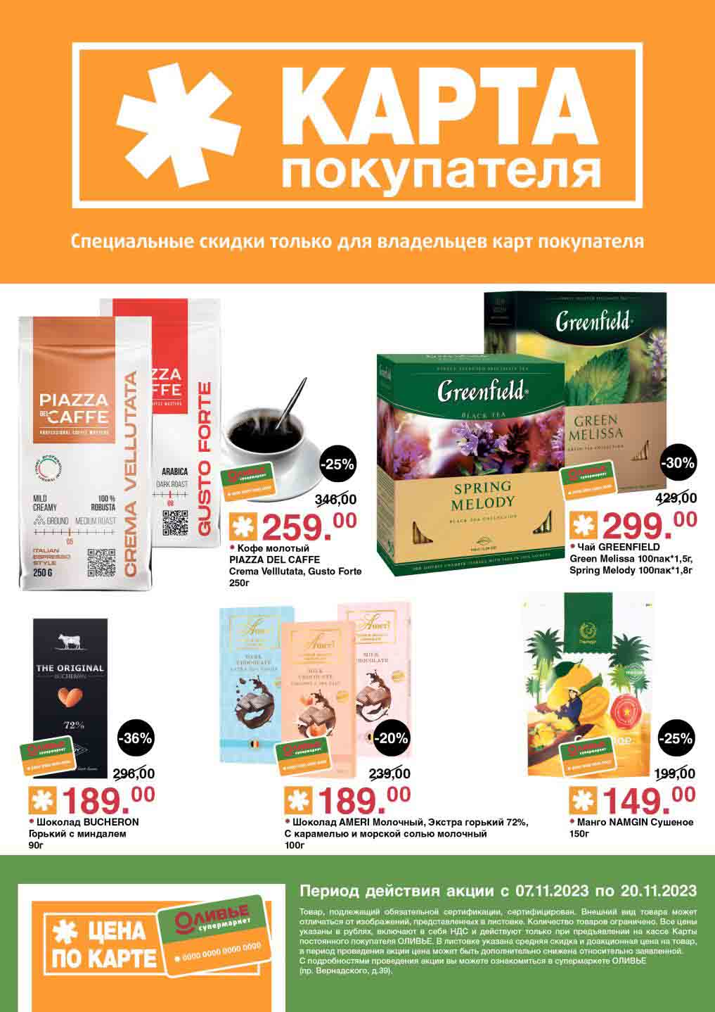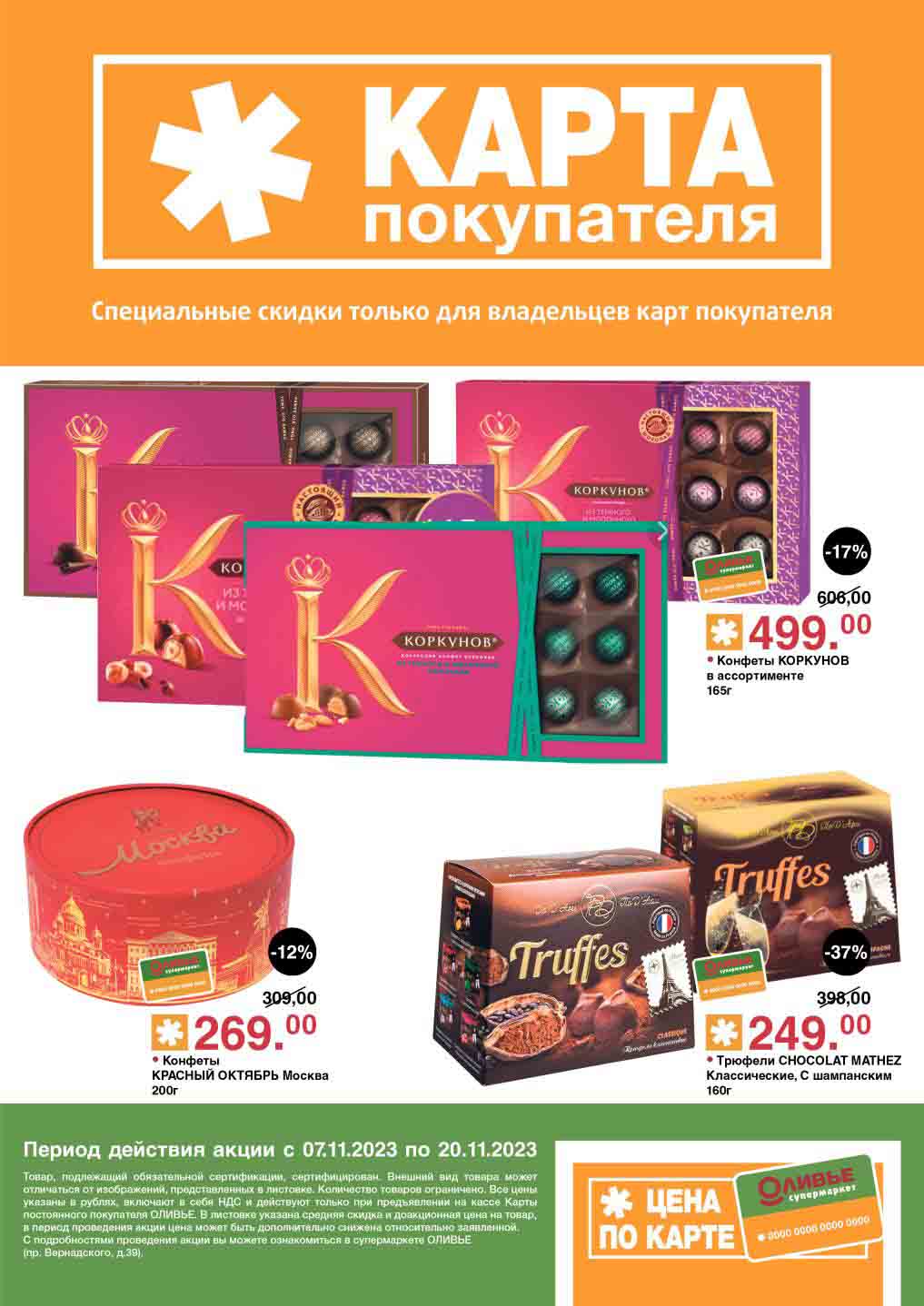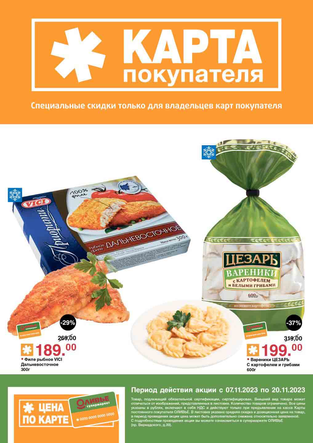 Оливье акции с 7 ноября — 20 ноября. Скидки по карте покупателя