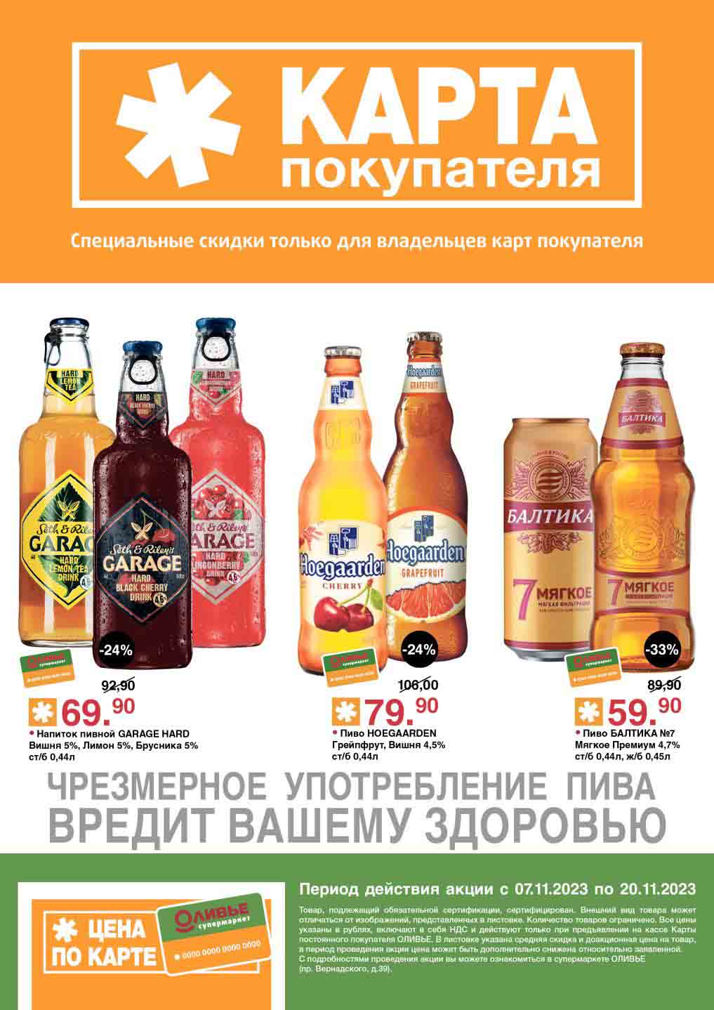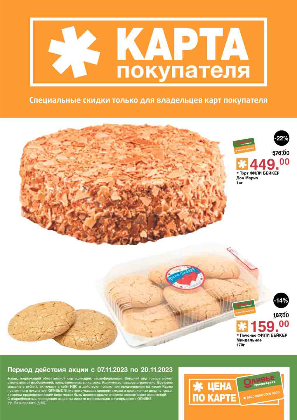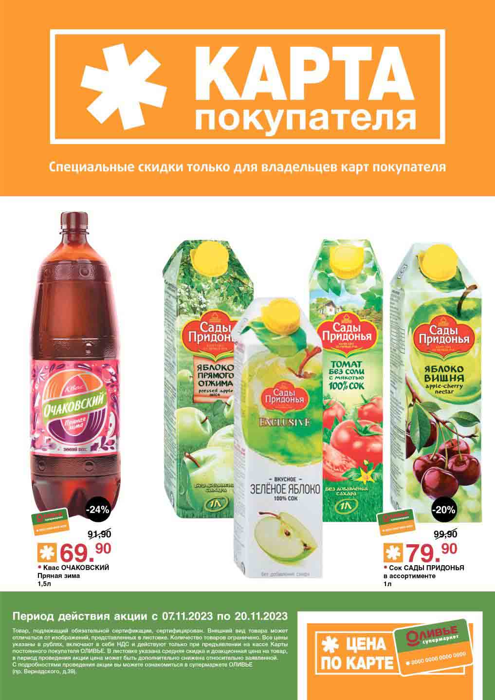 Оливье акции с 7 ноября — 20 ноября. Скидки по карте покупателя