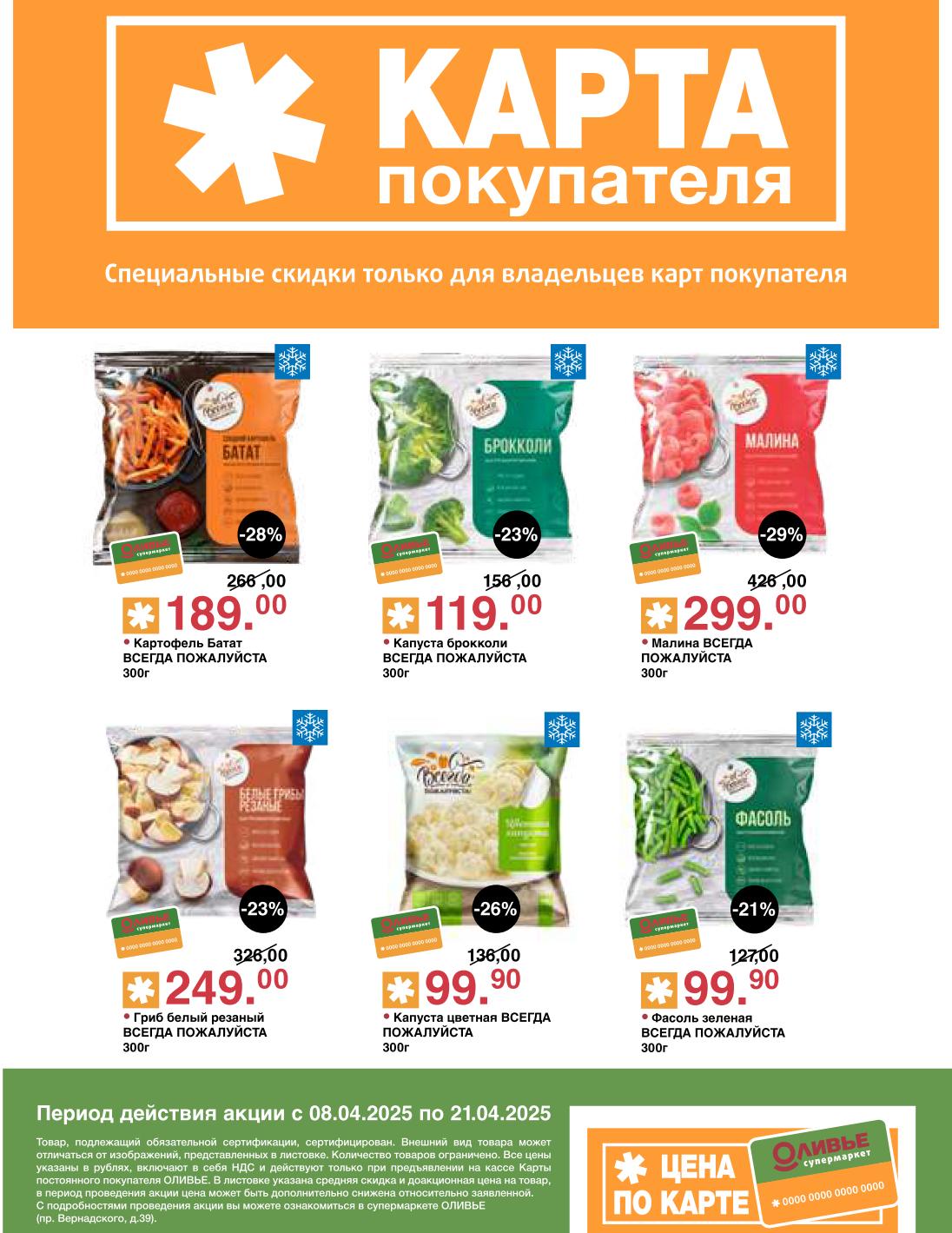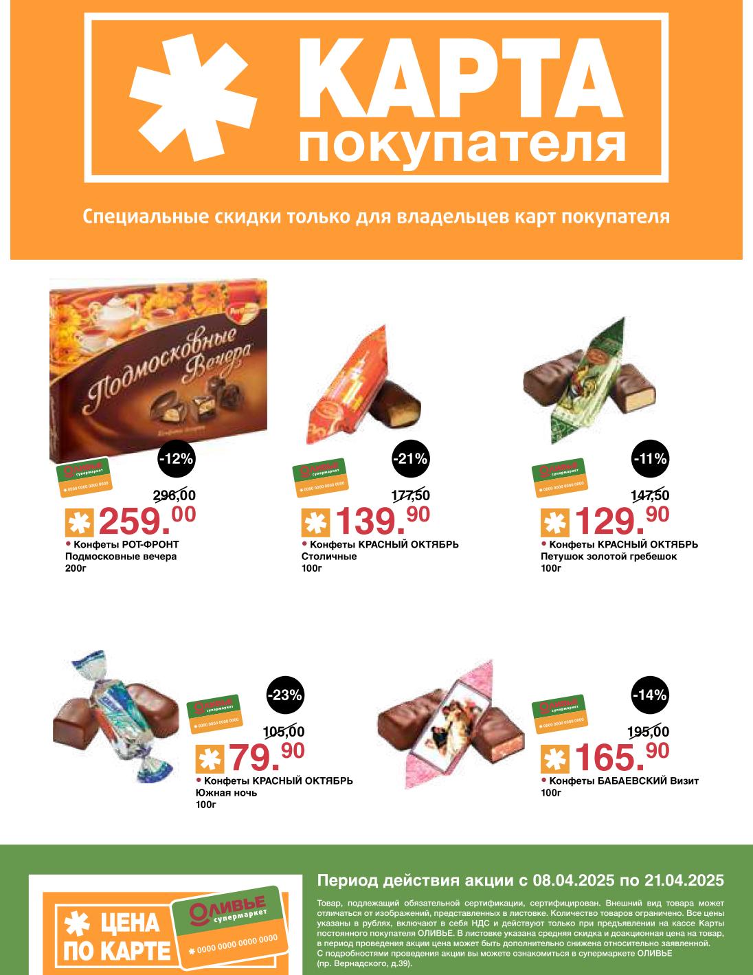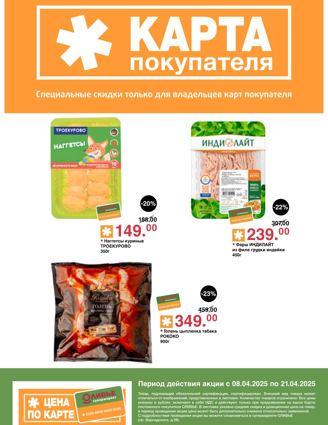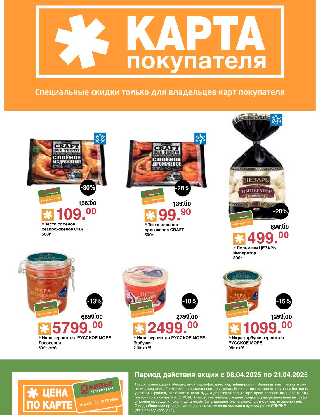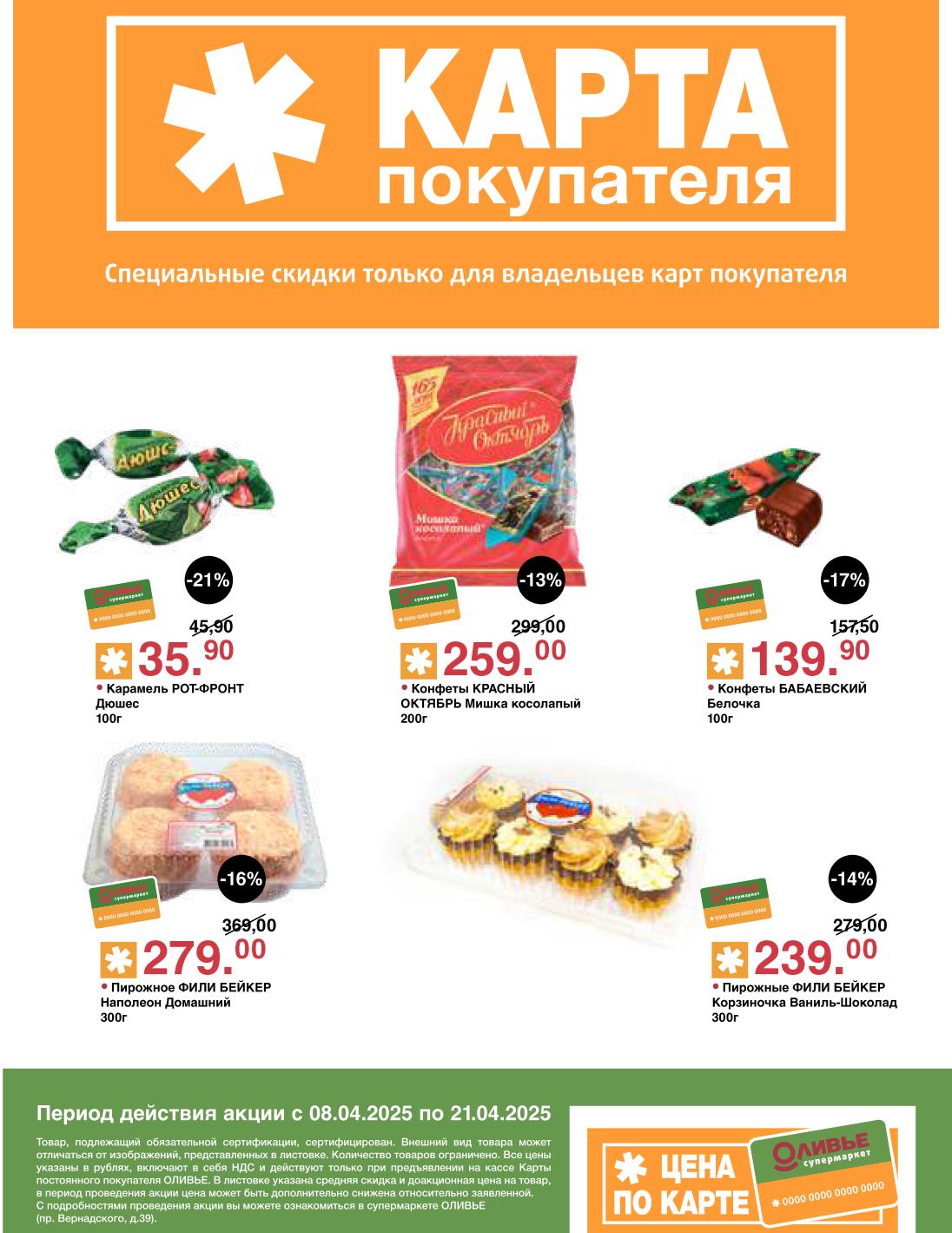 Оливье акции с 8 апреля — 21 апреля 2025. Скидки по карте покупателя