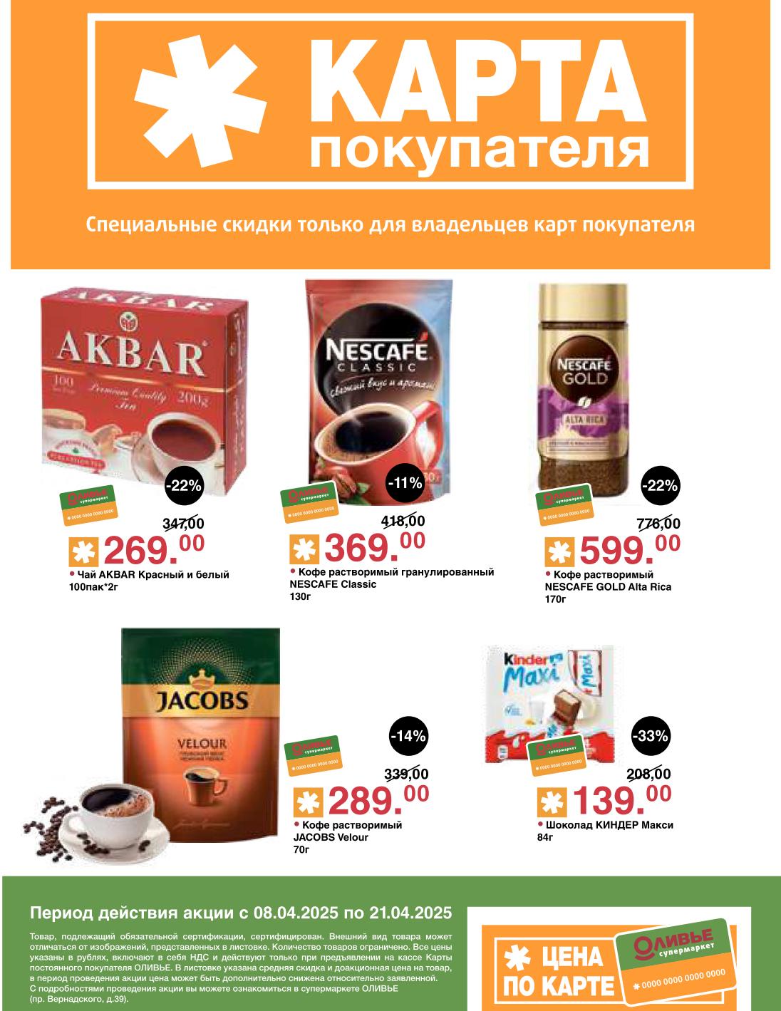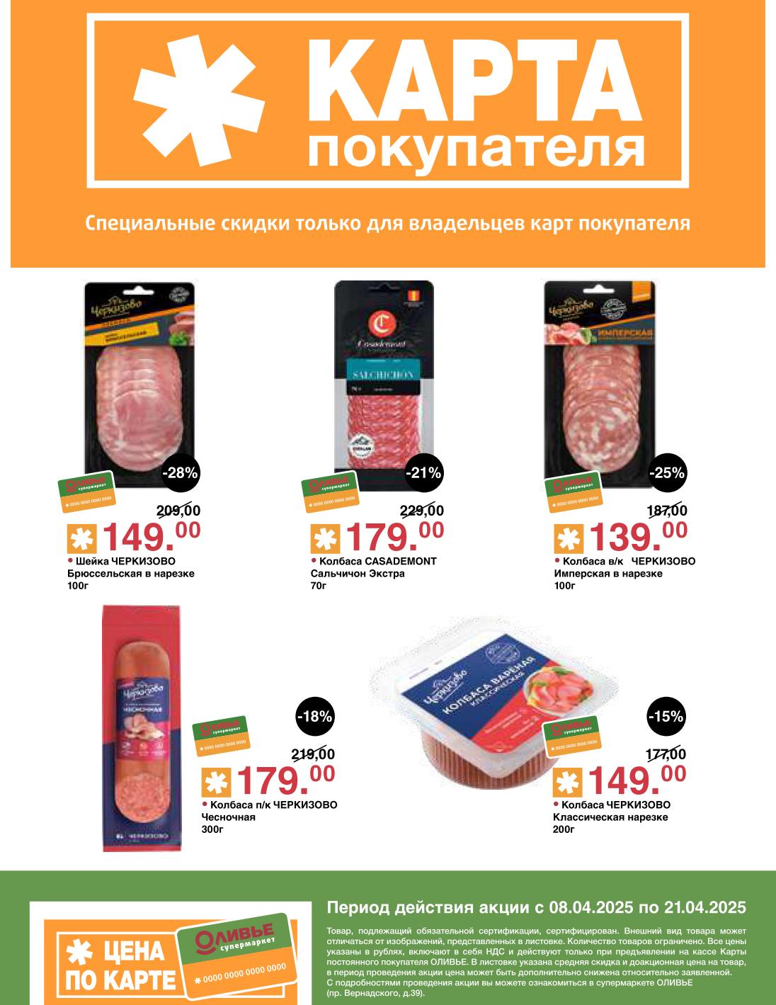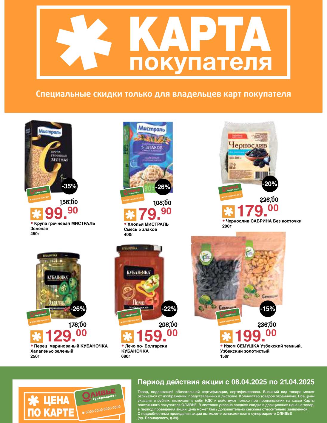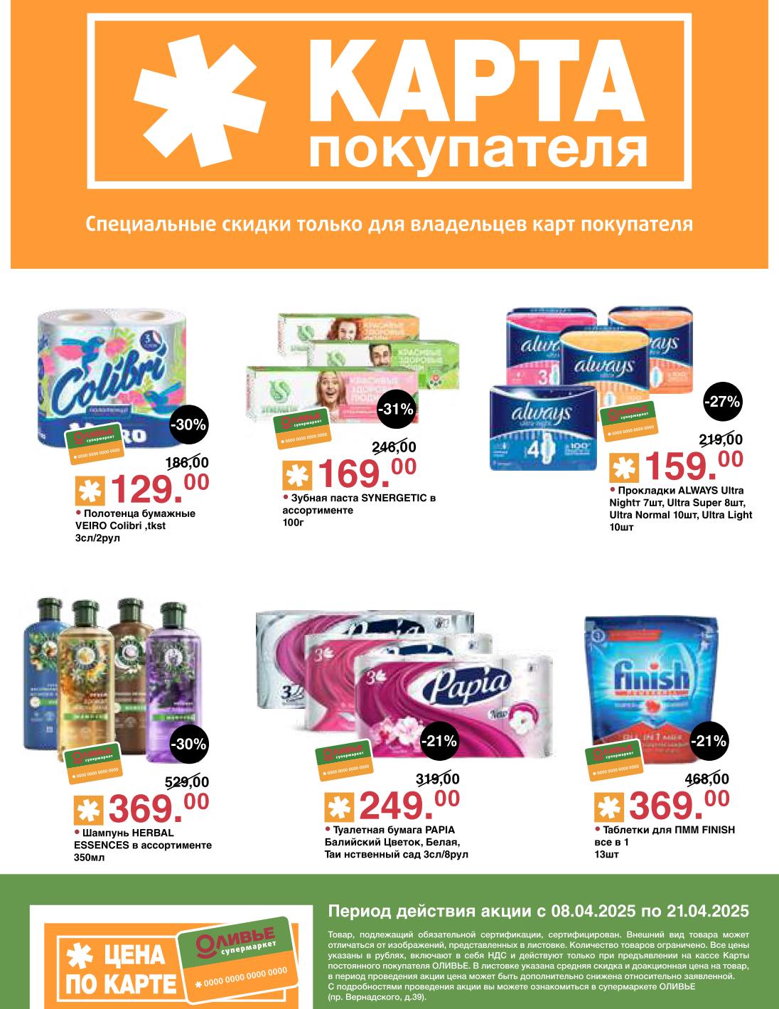 Оливье акции с 8 апреля — 21 апреля 2025. Скидки по карте покупателя