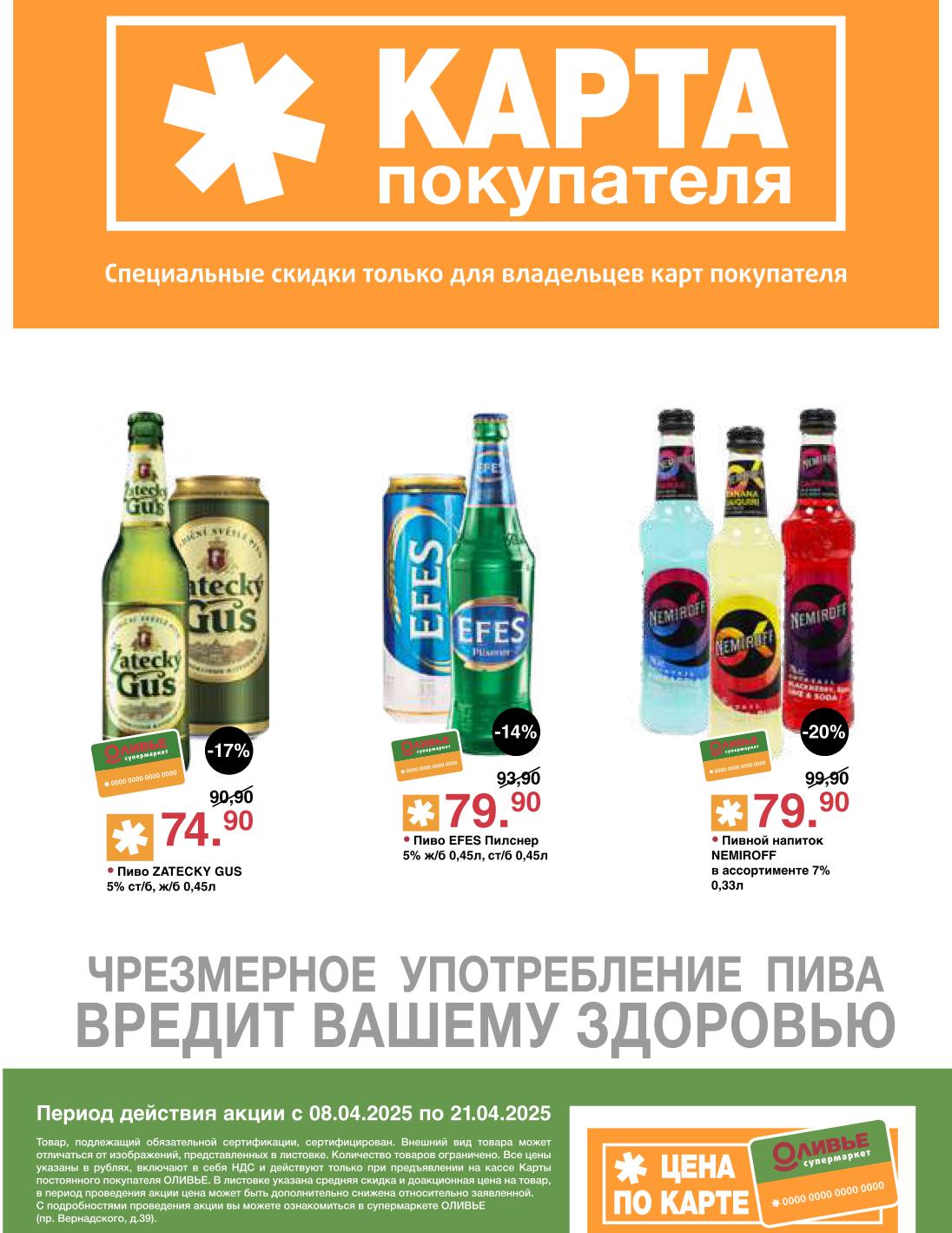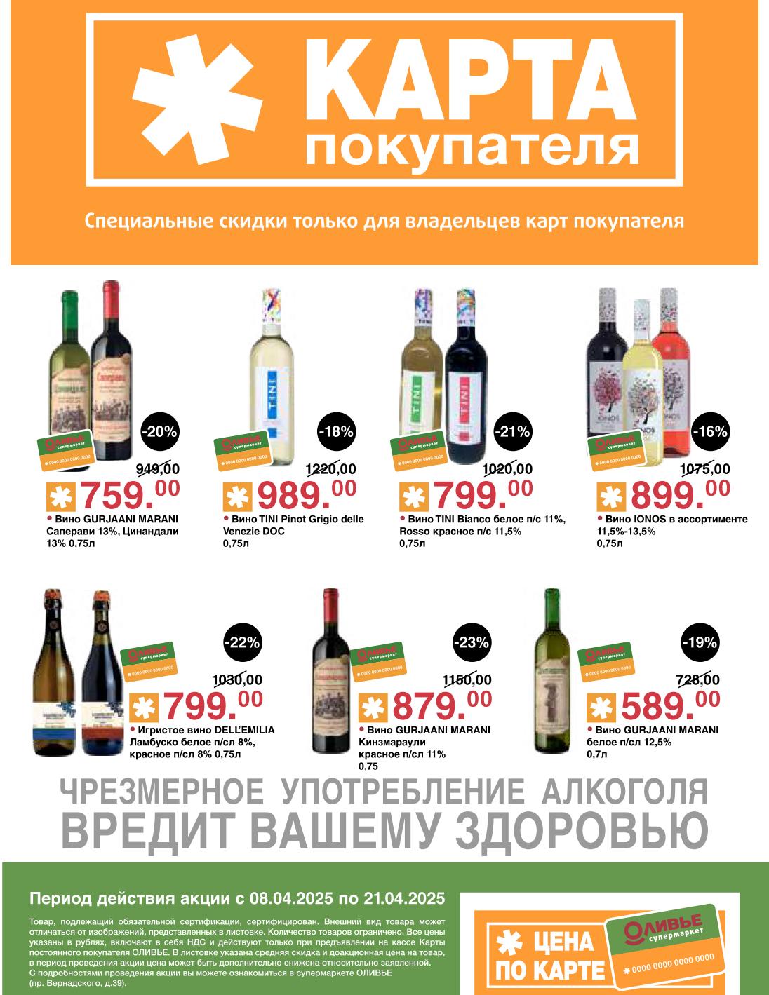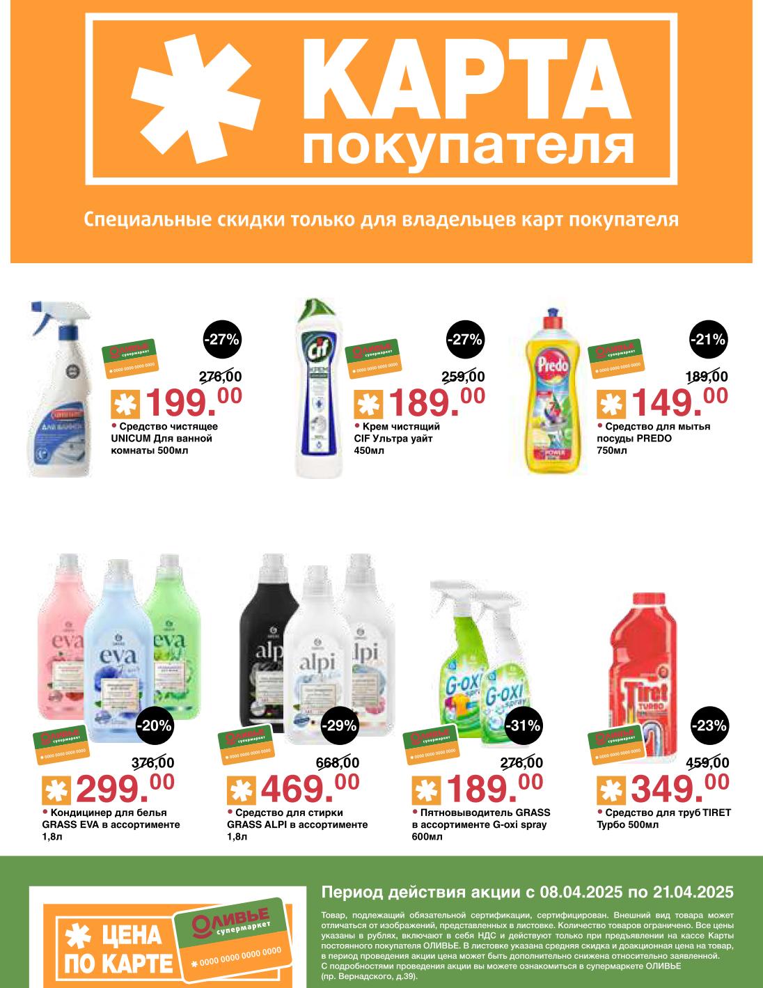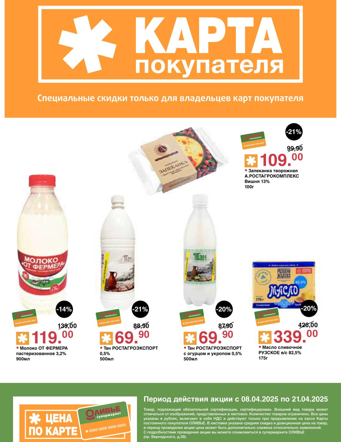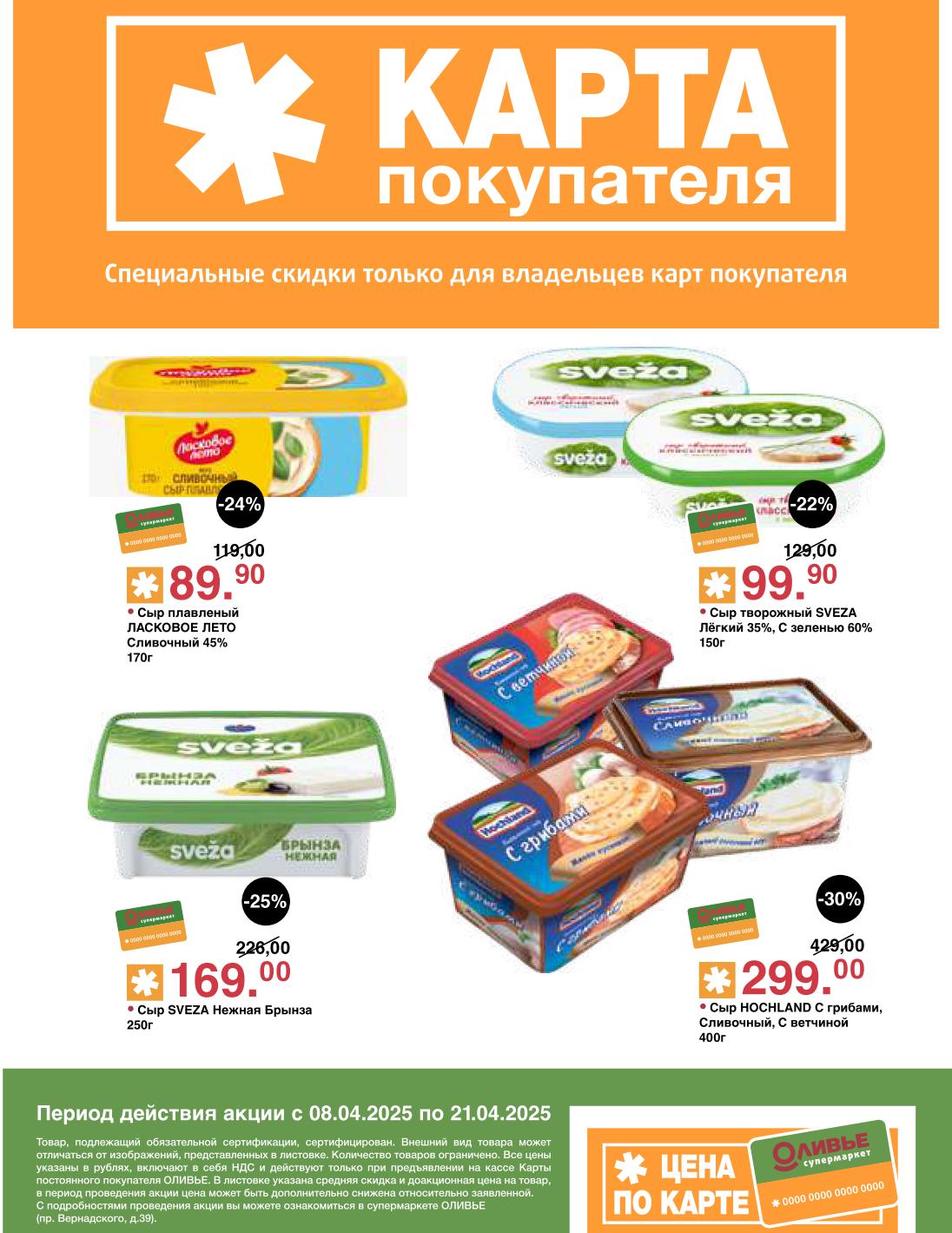 Оливье акции с 8 апреля — 21 апреля 2025. Скидки по карте покупателя