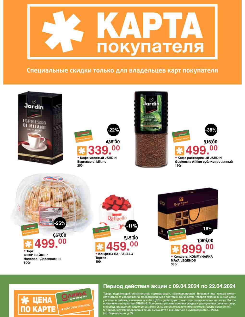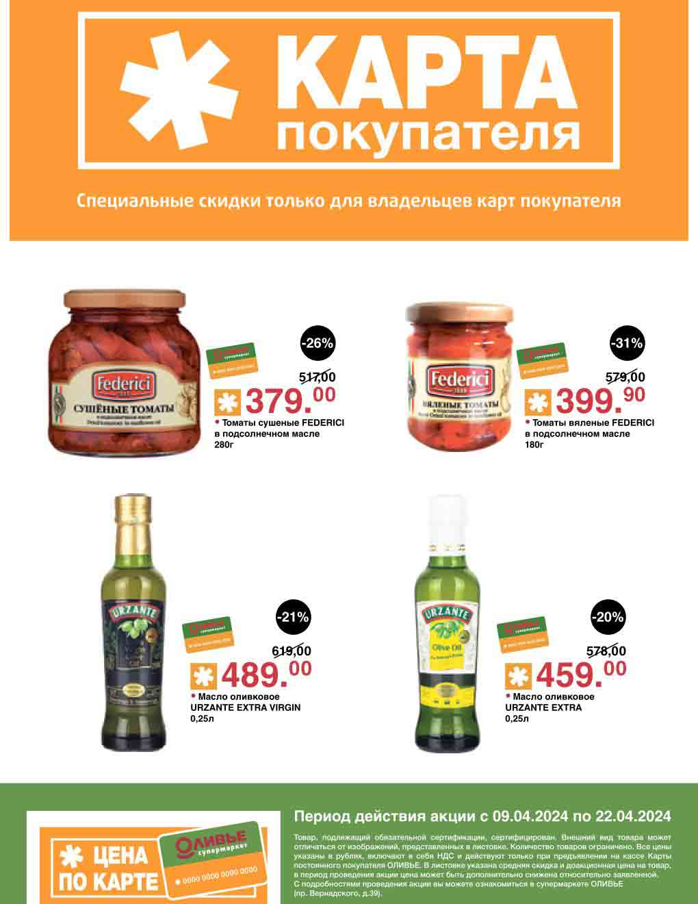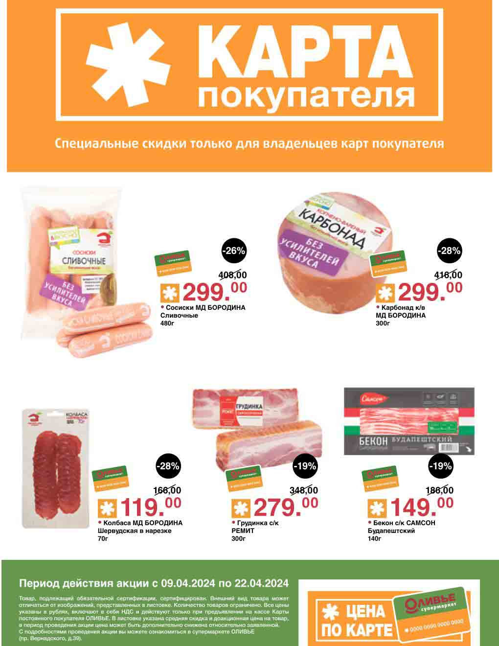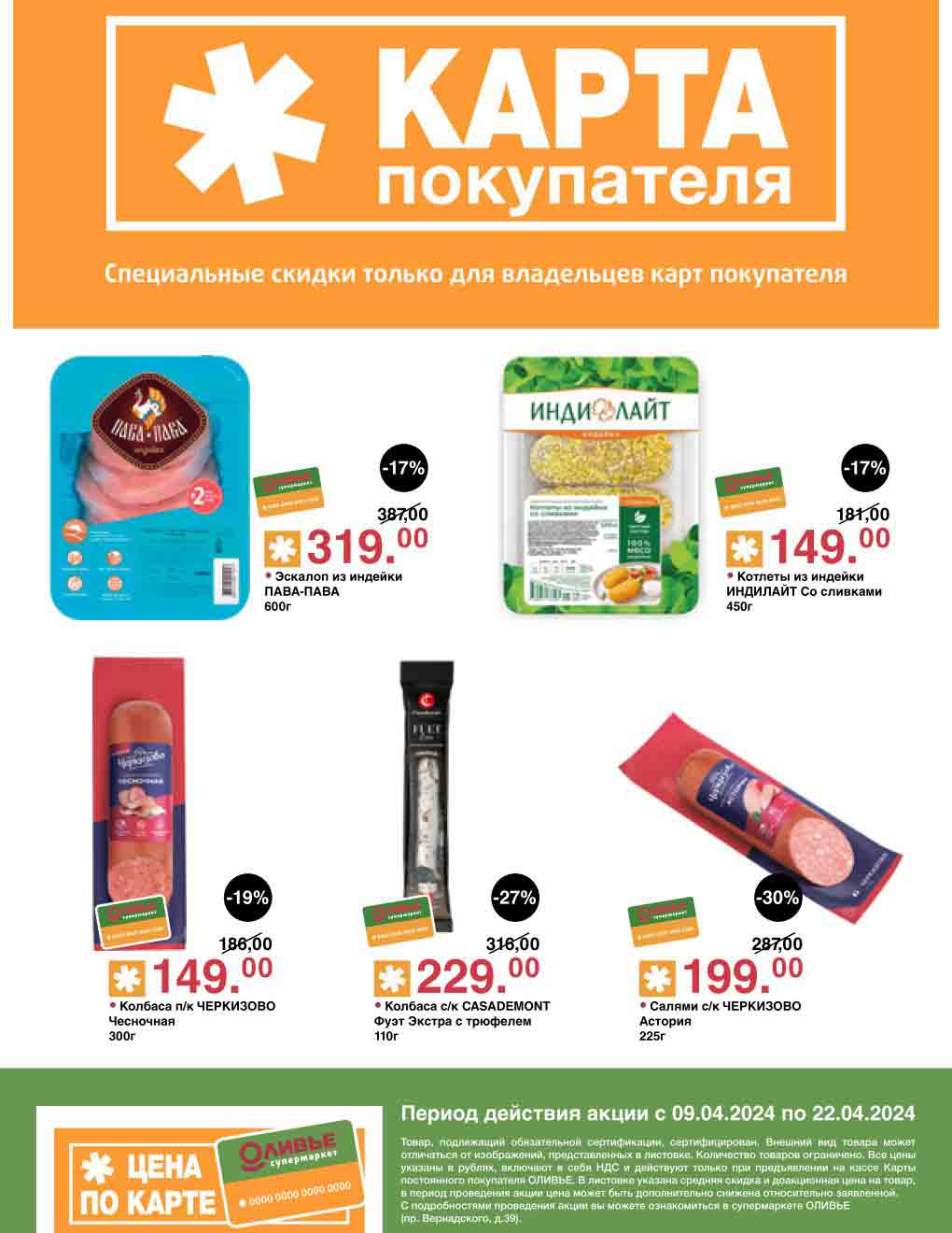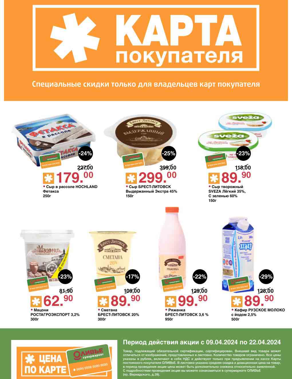 Оливье акции с 9 апреля — 22 апреля 2024. Скидки по карте покупателя