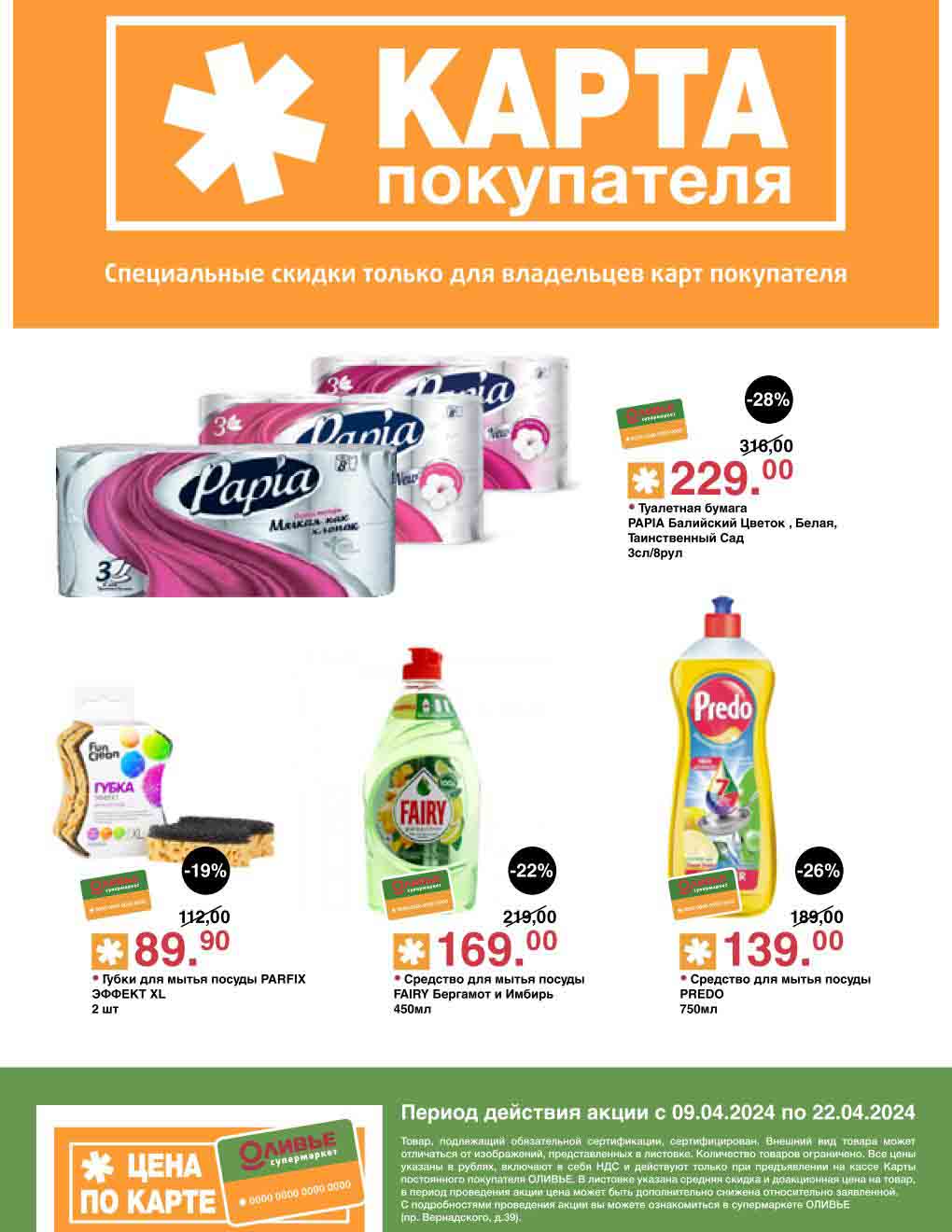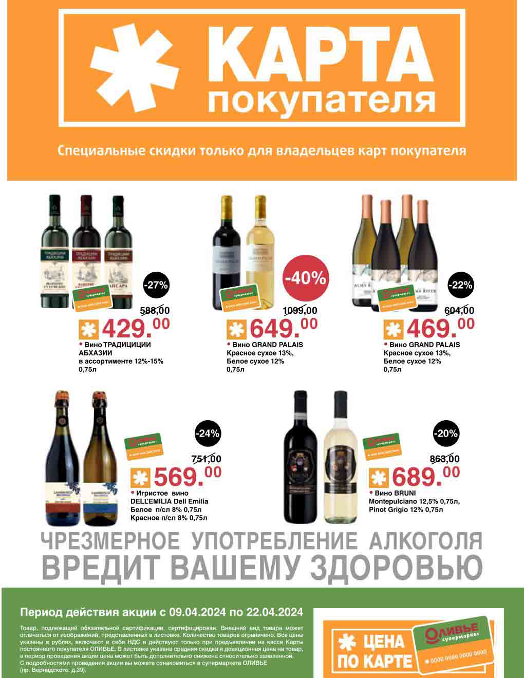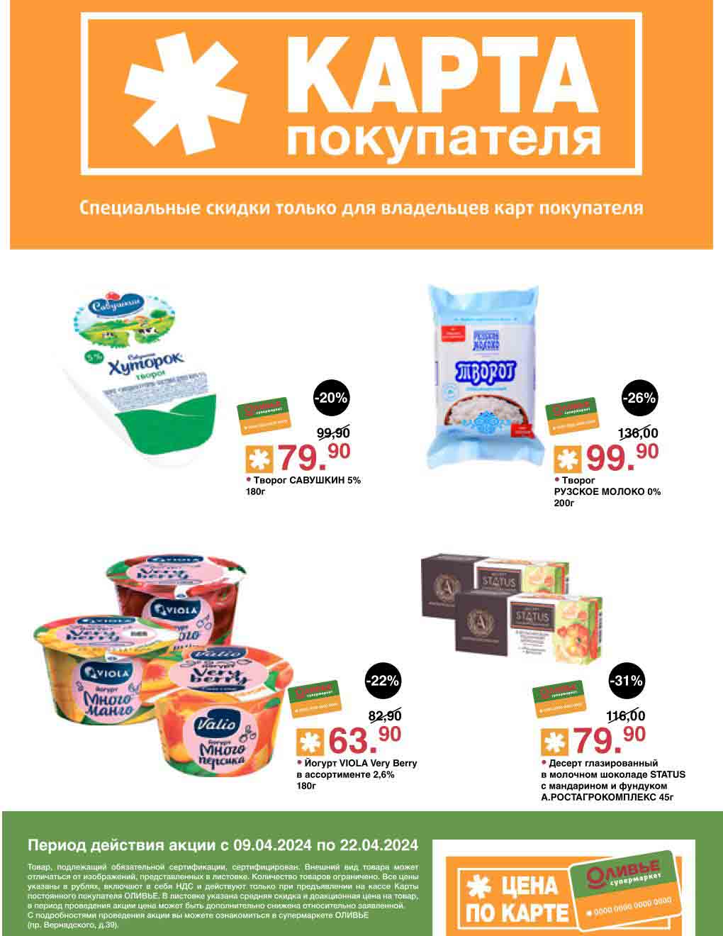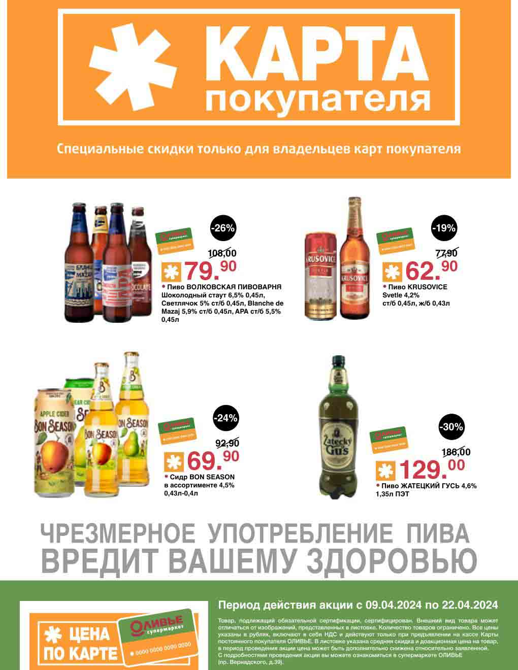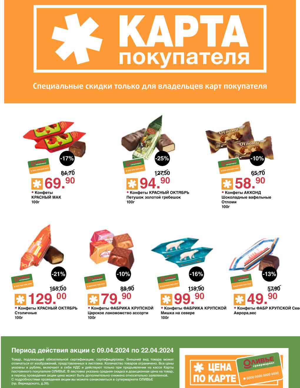 Оливье акции с 9 апреля — 22 апреля 2024. Скидки по карте покупателя