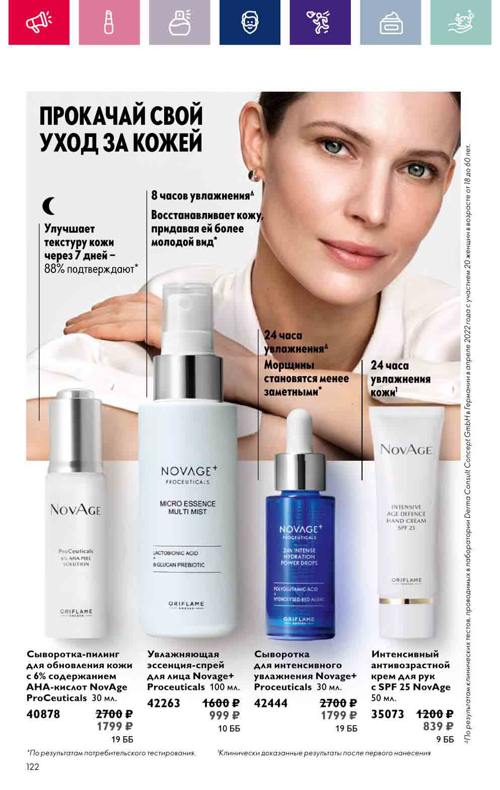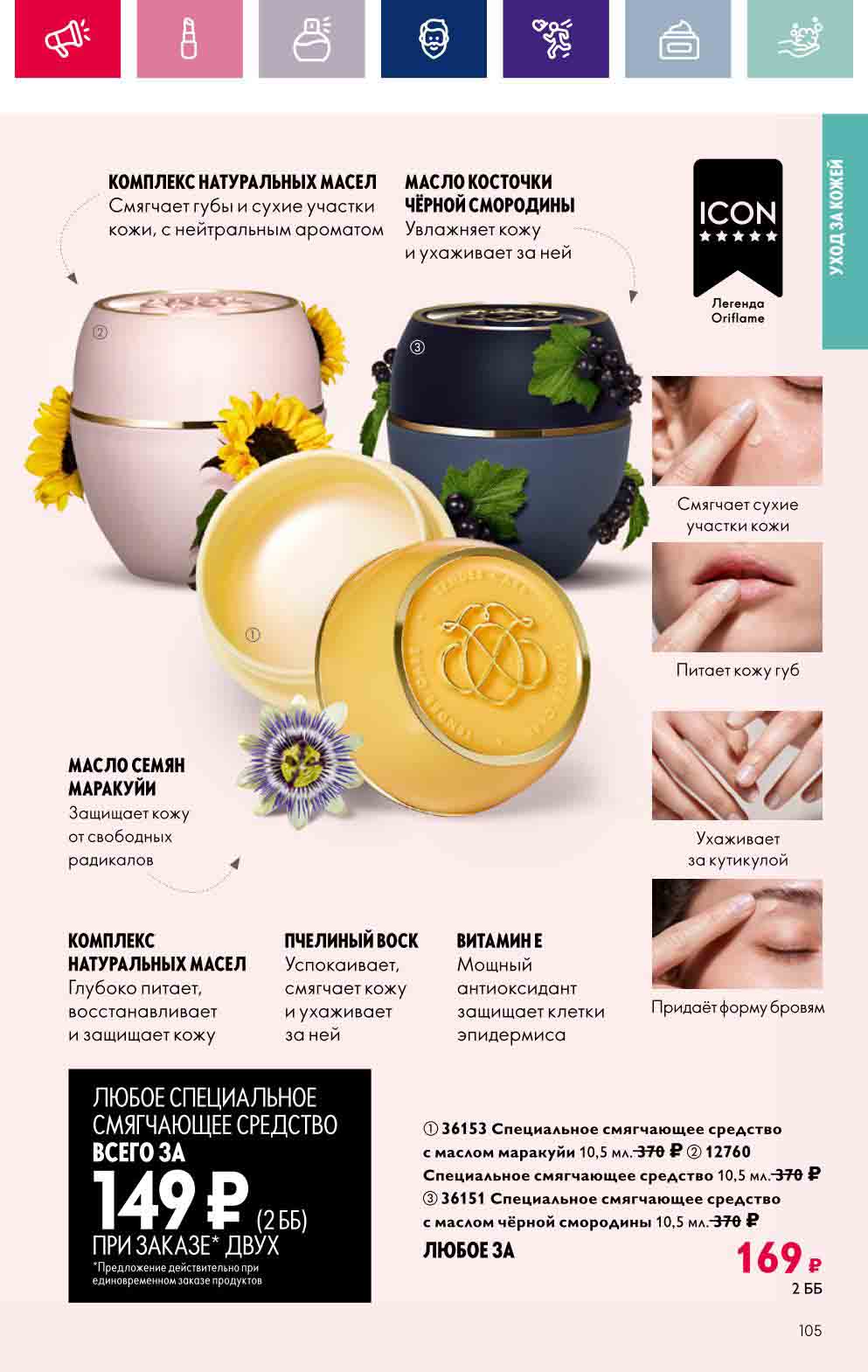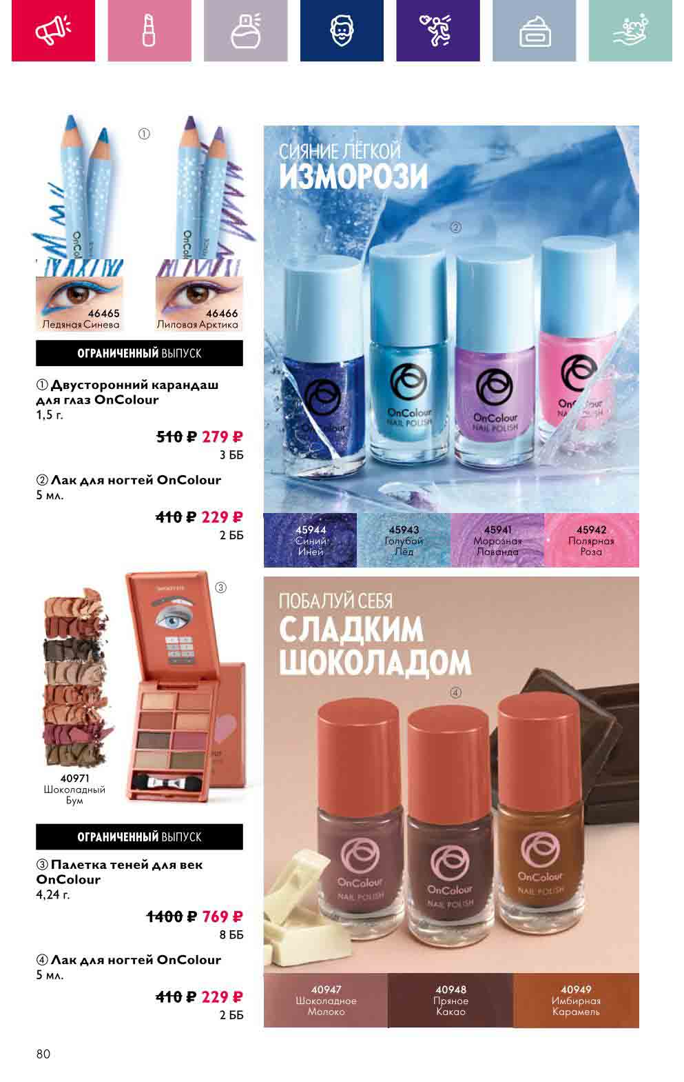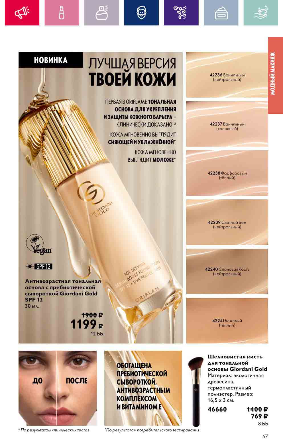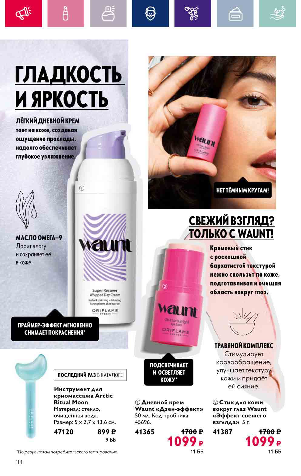 В акционном буклете предложены выгодные цены на различные товары, такие как тушь для ресниц 5 в 1 The one Wonder Lash за 399 руб., глянцевая губная помада-кушон The One irresistible Touch за 599 руб., парфюмерная вода Miss Giordani за 1999 руб. и многое другое.