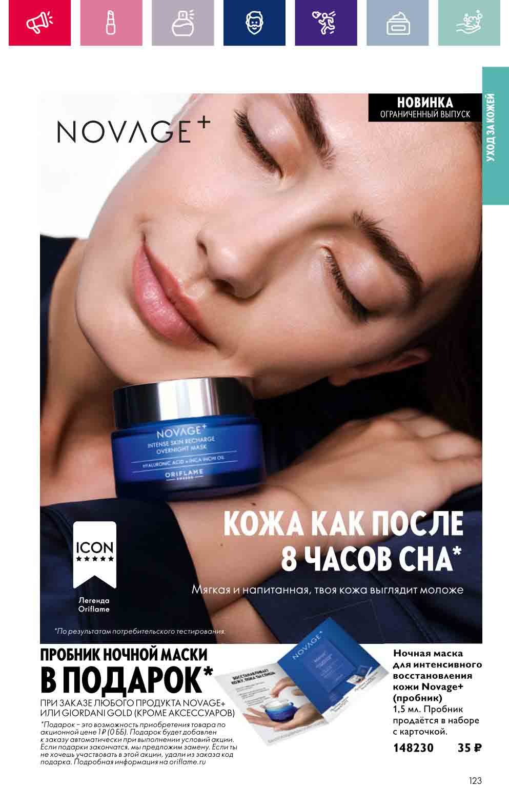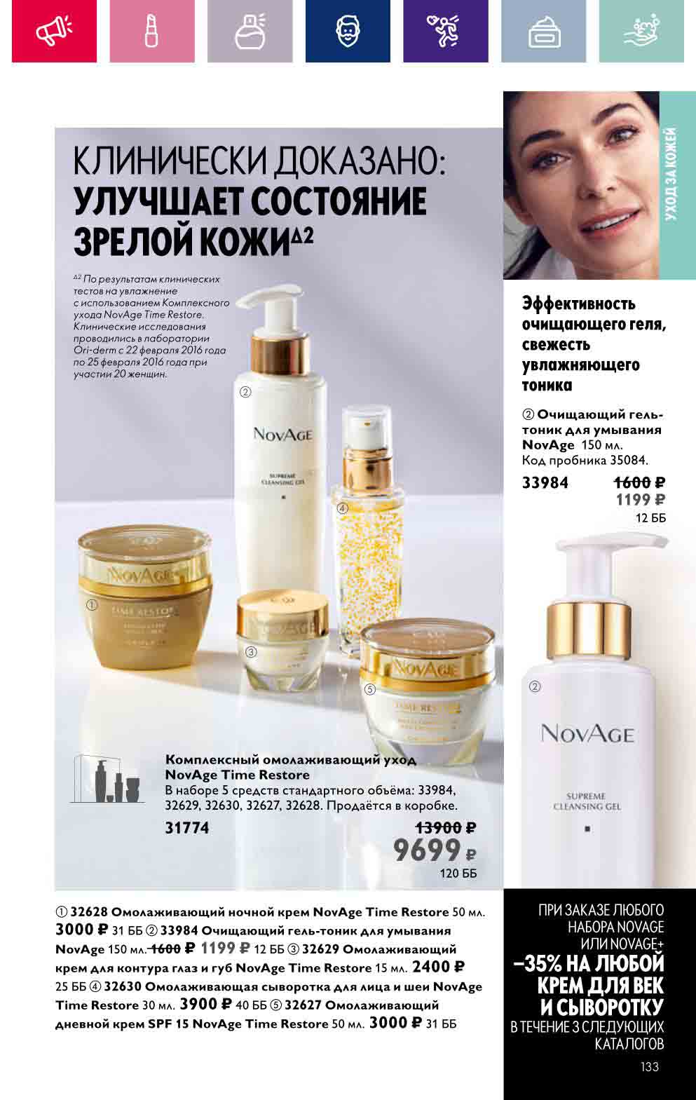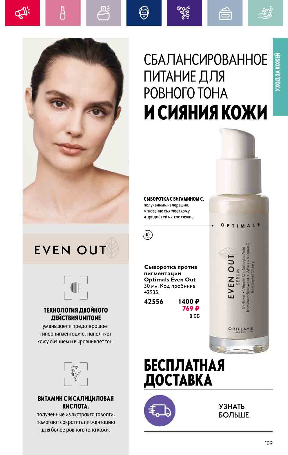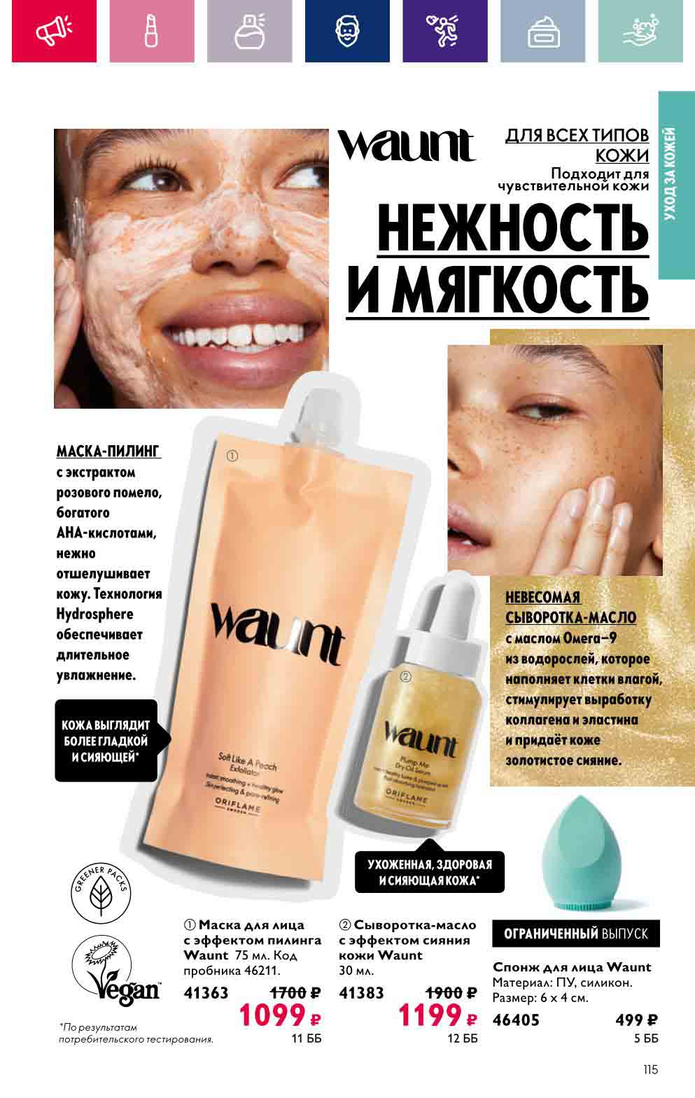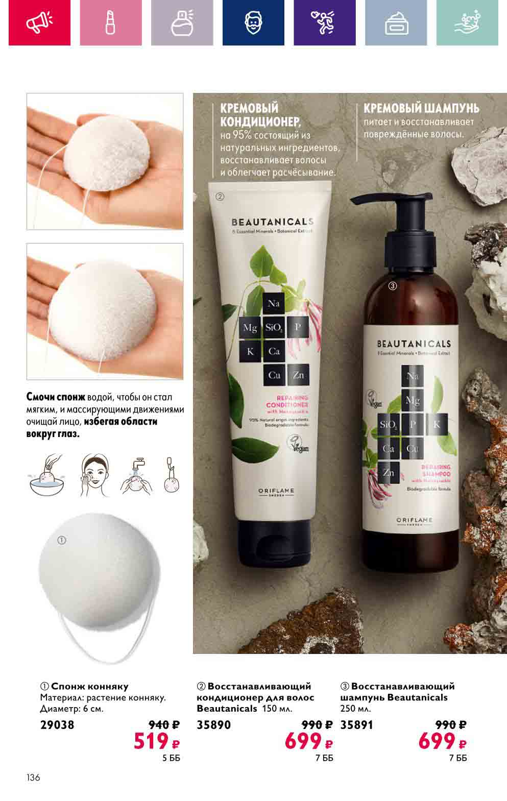 В акционном буклете предложены выгодные цены на различные товары, такие как тушь для ресниц 5 в 1 The one Wonder Lash за 399 руб., глянцевая губная помада-кушон The One irresistible Touch за 599 руб., парфюмерная вода Miss Giordani за 1999 руб. и многое другое.