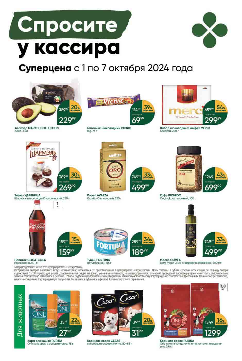 Смотрите еженедельный, новый каталог Перекресток и не переплачивайте. На страницах каталога Перекресток вы найдете все свои любимые товары, которые сейчас предлагаются в супермаркете. Не пропустите последние специальные предложения и сэкономьте на покупках. Изображение товара в каталоге может отличаться от представленных на полках. Количество товара ограничено и есть не во всех супермаркетах. Дополнительная скидка на товар указанный в каталоге не распространяется. Цены по акции Перекресток действуют в городах: Москва, Балашиха, Химки, Подольск, Королев, Мытищи, Люберцы, Электросталь, Коломна, Одинцово, Железнодорожный, Серпухов, Орехово-Зуево, Красногорск, Щелково, Сергиев Посад, Пушкино, Жуковский, Ногинск, Раменское и многих других населенных пунктах Московского региона.