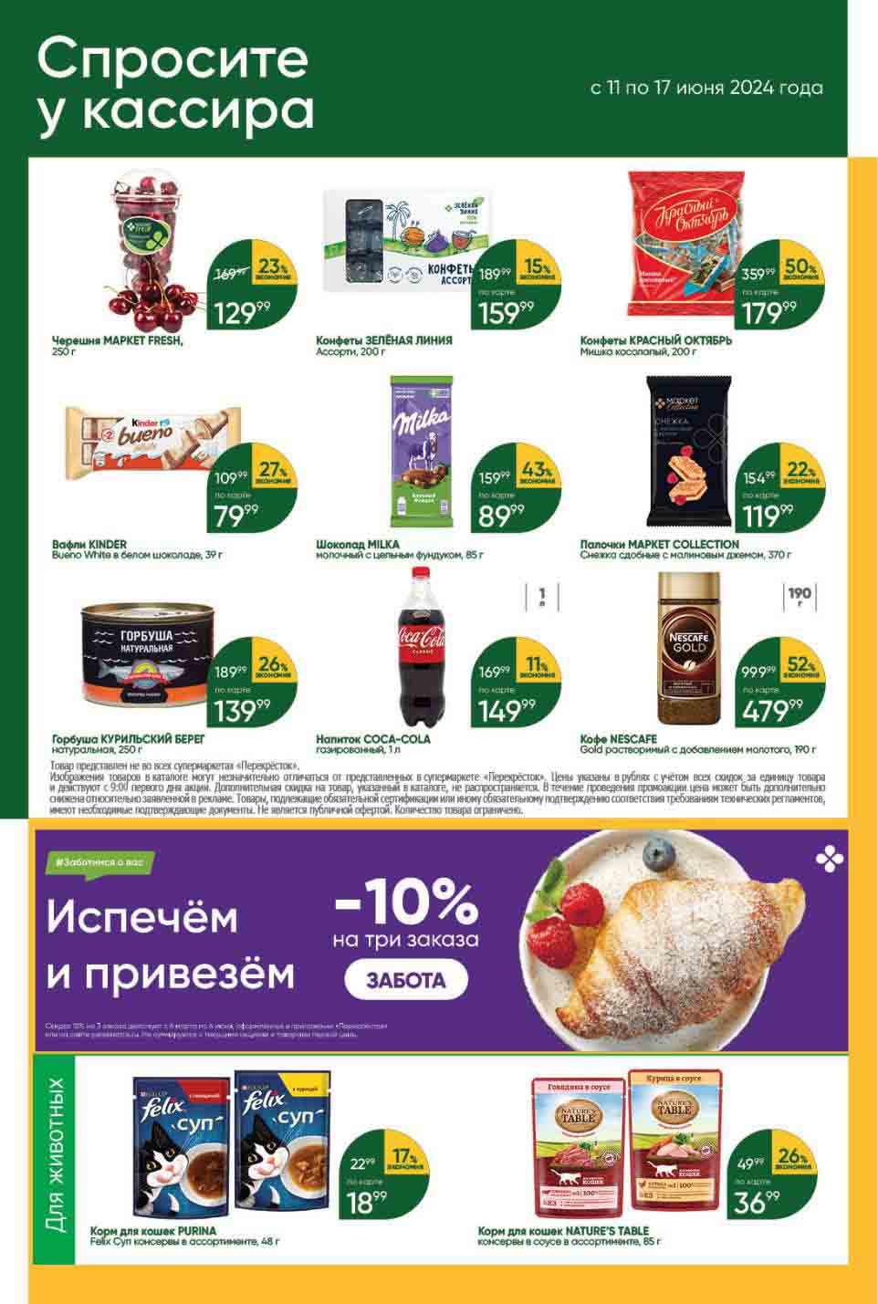 Смотрите еженедельный, новый каталог Перекресток и не переплачивайте. На страницах каталога Перекресток вы найдете все свои любимые товары, которые сейчас предлагаются в супермаркете. Не пропустите последние специальные предложения и сэкономьте на покупках. Изображение товара в каталоге может отличаться от представленных на полках. Количество товара ограничено и есть не во всех супермаркетах. Дополнительная скидка на товар указанный в каталоге не распространяется. Цены по акции Перекресток действуют в городах: Москва, Балашиха, Химки, Подольск, Королев, Мытищи, Люберцы, Электросталь, Коломна, Одинцово, Железнодорожный, Серпухов, Орехово-Зуево, Красногорск, Щелково, Сергиев Посад, Пушкино, Жуковский, Ногинск, Раменское и многих других населенных пунктах Московского региона.