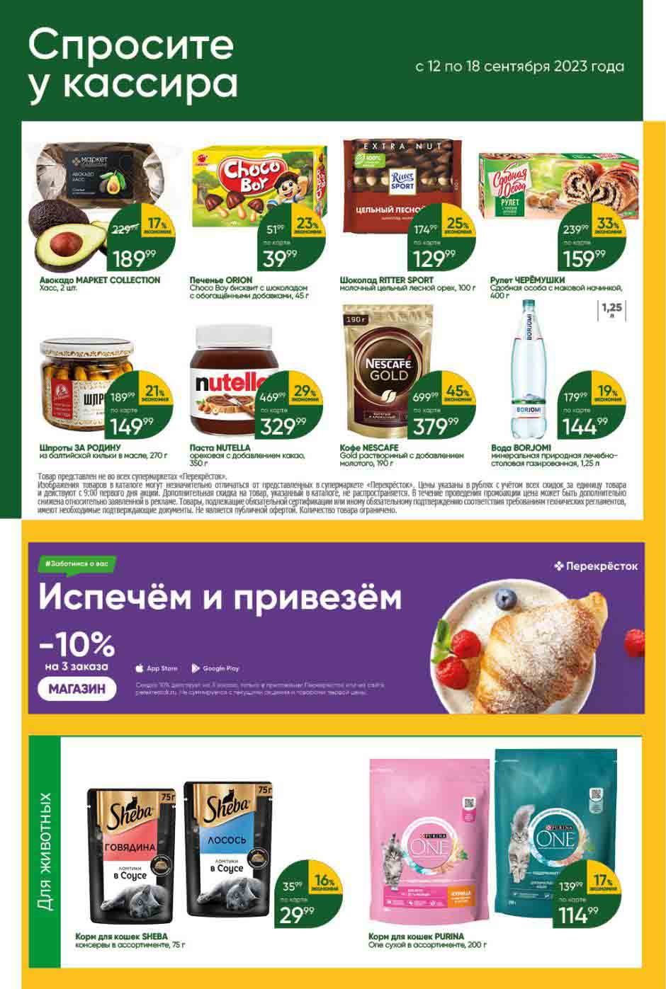Смотрите еженедельный, новый каталог Перекресток и не переплачивайте. На страницах каталога Перекресток вы найдете все свои любимые товары, которые сейчас предлагаются в супермаркете. Не пропустите последние специальные предложения и сэкономьте на покупках. Изображение товара в каталоге может отличаться от представленных на полках. Количество товара ограничено и есть не во всех супермаркетах. Дополнительная скидка на товар указанный в каталоге не распространяется. Цены по акции Перекресток действуют в городах: Москва, Балашиха, Химки, Подольск, Королев, Мытищи, Люберцы, Электросталь, Коломна, Одинцово, Железнодорожный, Серпухов, Орехово-Зуево, Красногорск, Щелково, Сергиев Посад, Пушкино, Жуковский, Ногинск, Раменское и многих других населенных пунктах Московского региона.