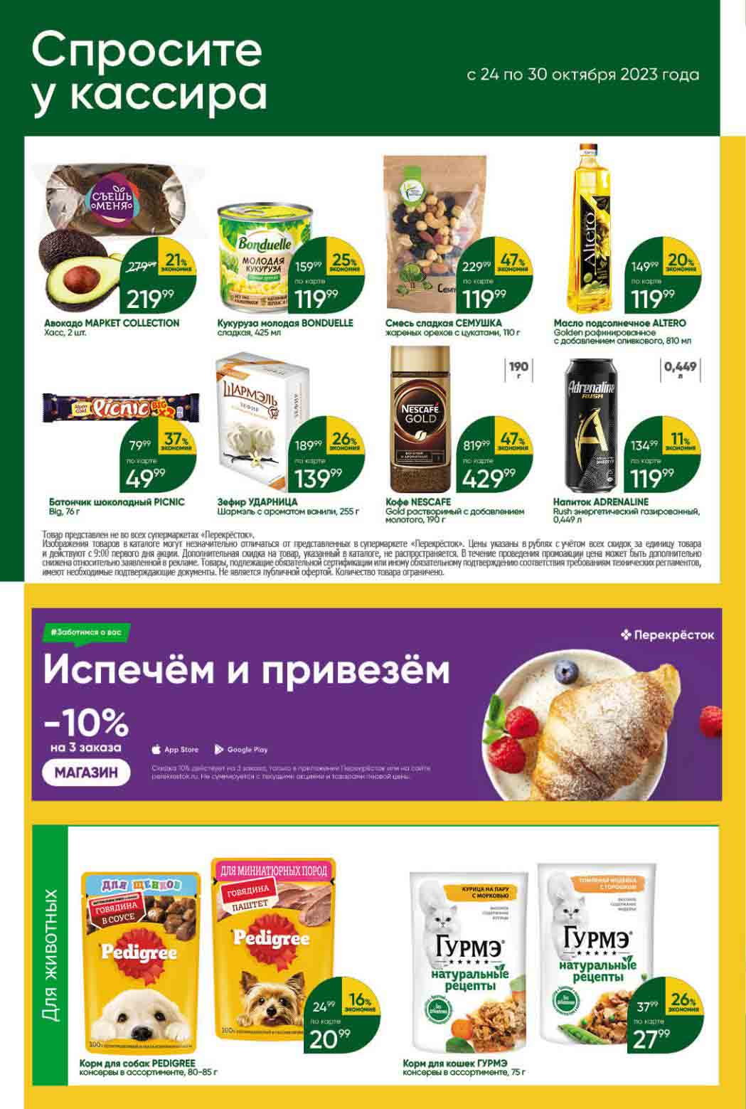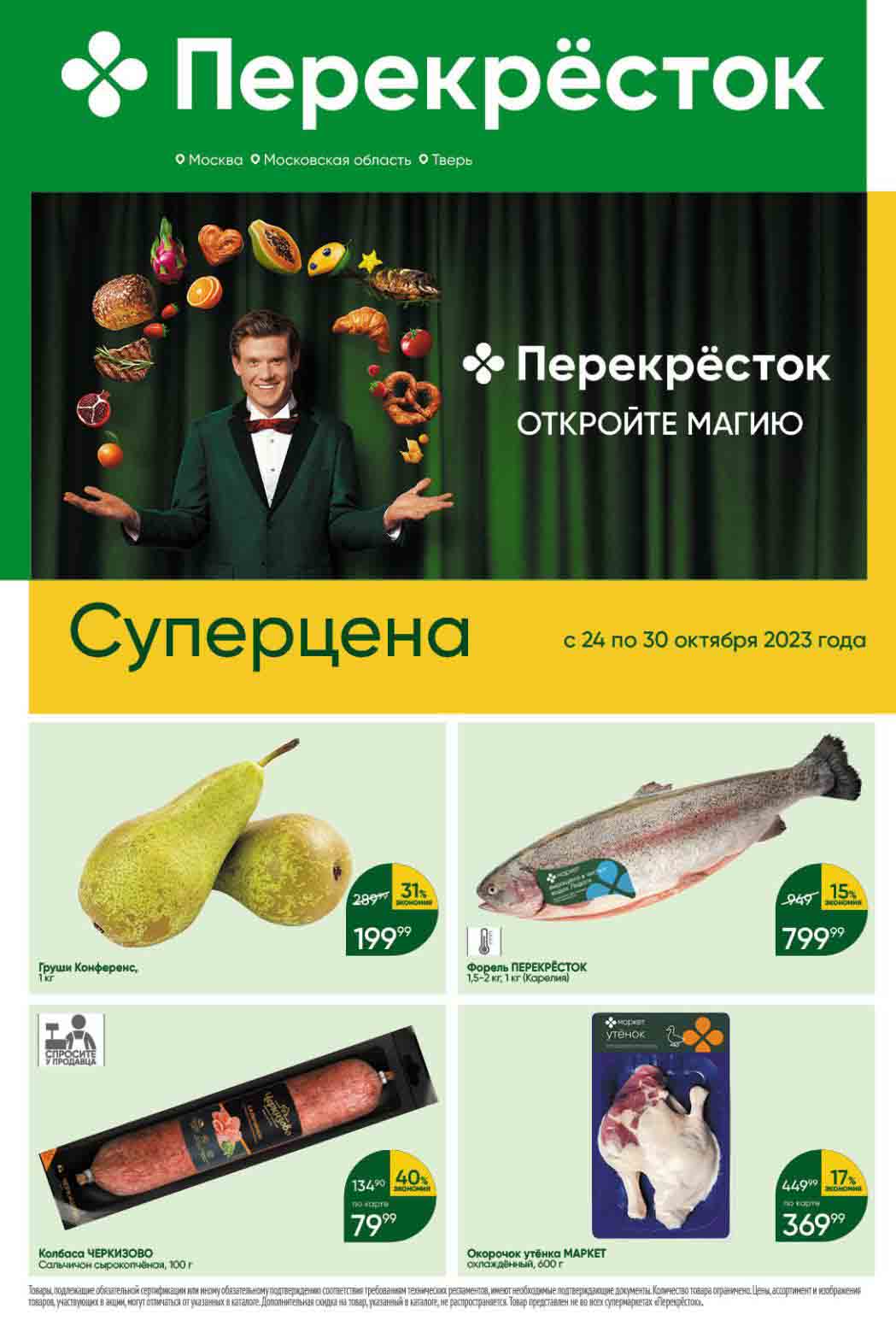 Смотрите еженедельный, новый каталог Перекресток и не переплачивайте. На страницах каталога Перекресток вы найдете все свои любимые товары, которые сейчас предлагаются в супермаркете. Не пропустите последние специальные предложения и сэкономьте на покупках. Изображение товара в каталоге может отличаться от представленных на полках. Количество товара ограничено и есть не во всех супермаркетах. Дополнительная скидка на товар указанный в каталоге не распространяется. Цены по акции Перекресток действуют в городах: Москва, Балашиха, Химки, Подольск, Королев, Мытищи, Люберцы, Электросталь, Коломна, Одинцово, Железнодорожный, Серпухов, Орехово-Зуево, Красногорск, Щелково, Сергиев Посад, Пушкино, Жуковский, Ногинск, Раменское и многих других населенных пунктах Московского региона.