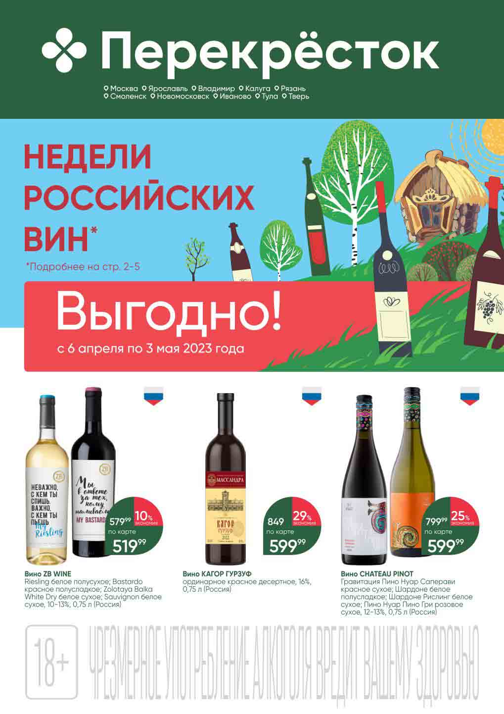 Смотрите еженедельный, новый каталог Перекресток и не переплачивайте. На страницах каталога Перекресток вы найдете все свои любимые товары, которые сейчас предлагаются в супермаркете. Не пропустите последние специальные предложения и сэкономьте на покупках. Изображение товара в каталоге может отличаться от представленных на полках. Количество товара ограничено и есть не во всех супермаркетах. Дополнительная скидка на товар указанный в каталоге не распространяется. Цены по акции Перекресток действуют в городах: Москва, Балашиха, Химки, Подольск, Королев, Мытищи, Люберцы, Электросталь, Коломна, Одинцово, Железнодорожный, Серпухов, Орехово-Зуево, Красногорск, Щелково, Сергиев Посад, Пушкино, Жуковский, Ногинск, Раменское и многих других населенных пунктах Московского региона.