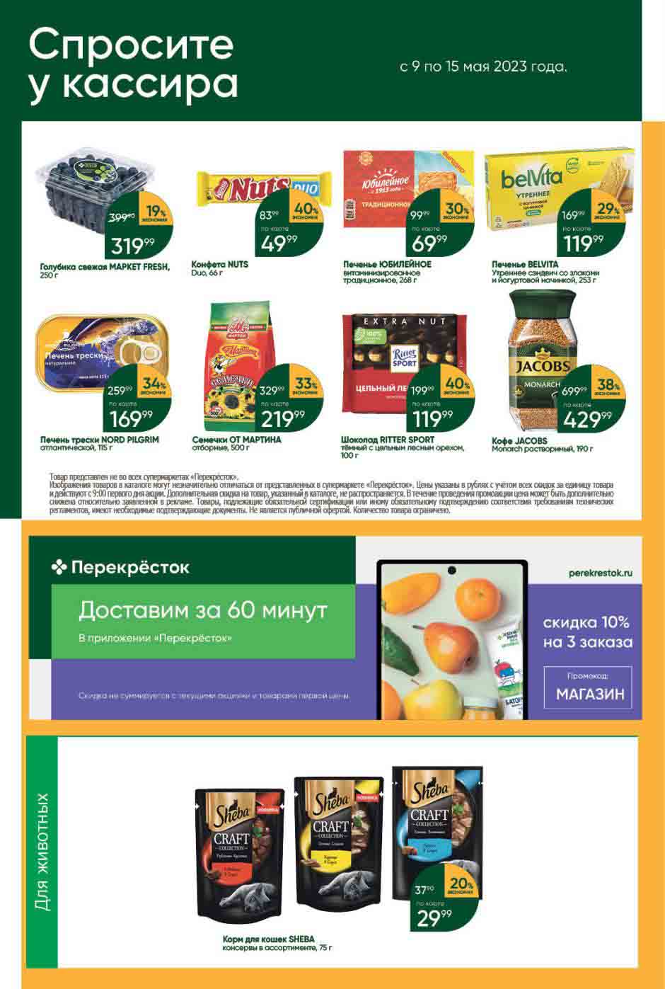 Смотрите еженедельный, новый каталог Перекресток и не переплачивайте. На страницах каталога Перекресток вы найдете все свои любимые товары, которые сейчас предлагаются в супермаркете. Не пропустите последние специальные предложения и сэкономьте на покупках. Изображение товара в каталоге может отличаться от представленных на полках. Количество товара ограничено и есть не во всех супермаркетах. Дополнительная скидка на товар указанный в каталоге не распространяется. Цены по акции Перекресток действуют в городах: Москва, Балашиха, Химки, Подольск, Королев, Мытищи, Люберцы, Электросталь, Коломна, Одинцово, Железнодорожный, Серпухов, Орехово-Зуево, Красногорск, Щелково, Сергиев Посад, Пушкино, Жуковский, Ногинск, Раменское и многих других населенных пунктах Московского региона.