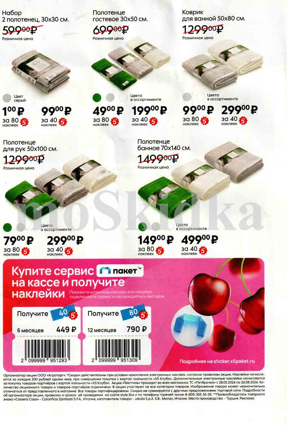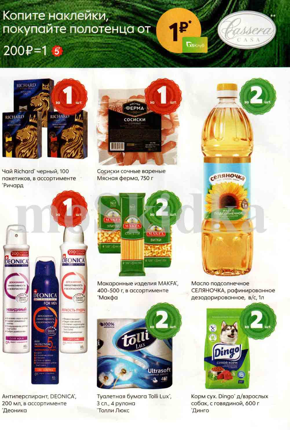 Каталог акций «Пятерочка» — это не просто скидки, это возможность сэкономить, не потеряв при этом качества продуктов. Цены по акции Пятерочка действуют в городах: Москва, Балашиха, Химки, Подольск, Королев, Мытищи, Люберцы, Электросталь, Коломна, Одинцово, Железнодорожный, Серпухов, Орехово-Зуево, Красногорск, Щелково, Сергиев Посад, Пушкино, Жуковский, Ногинск, Раменское, Клин, Воскресенск, Домодедово и многих других населенных пунктах Московского региона. Изображение акционных товаров может отличаться от представленных на полках. В течение проведения промо цена из буклета может быть дополнительно снижена.