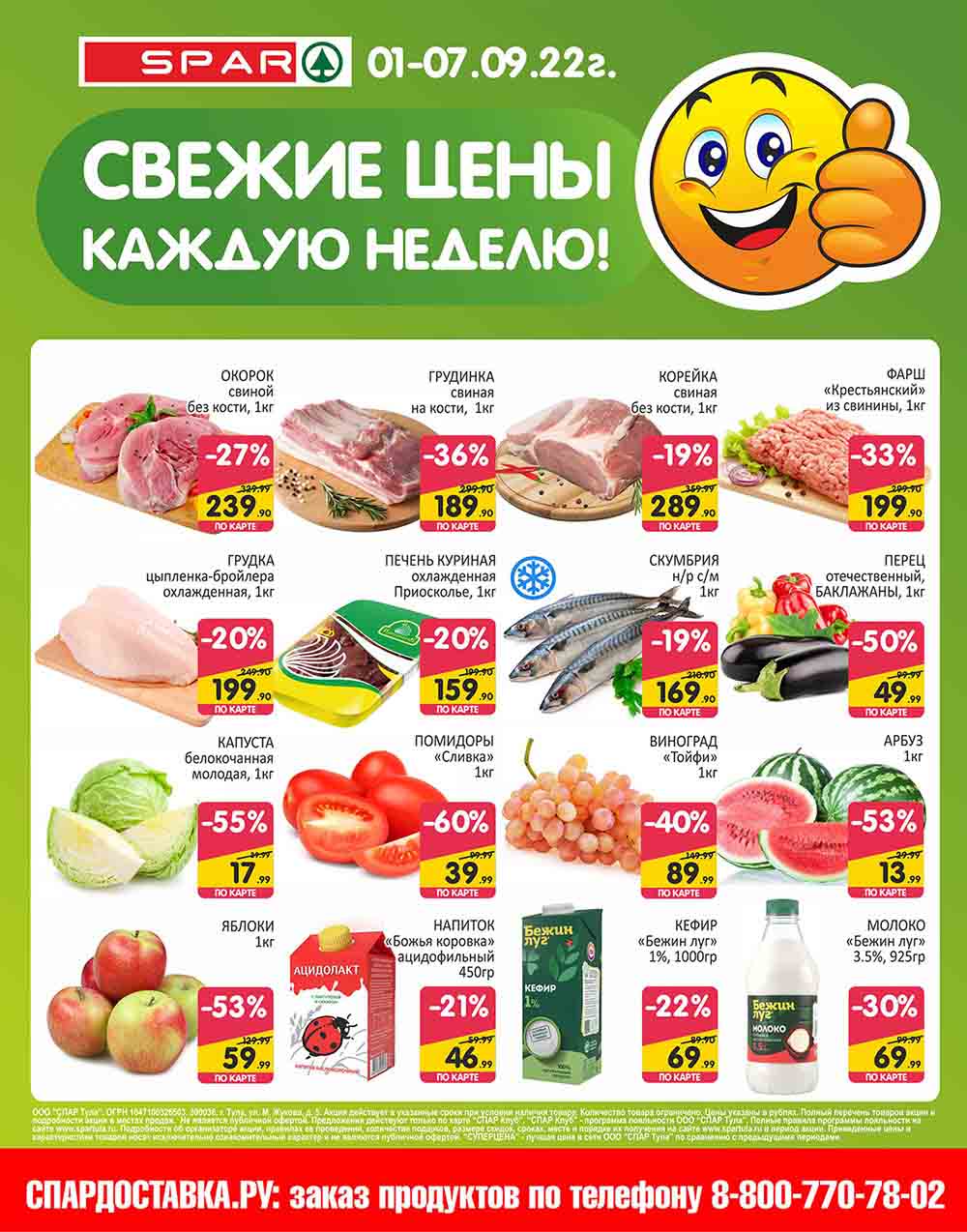 Подробную информацию об правилах, наличии товаров, адресах и скидках узнавайте в магазинах или по тел. 8 800 500 13 29 и на сайте: myspar.ru