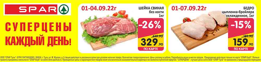 На страницах каталога СПАР вы найдете все свои любимые товары, которые сейчас предлагаются в супермаркете. Не пропустите последние специальные предложения и сэкономьте на покупках. Цены по акции Спар действуют в городах: Москва, Химки, Красногорск, Одинцово, Краснознаменск, Кубинка, Климовск, Жуковский, Видное и других населенных пунктах Московского региона.