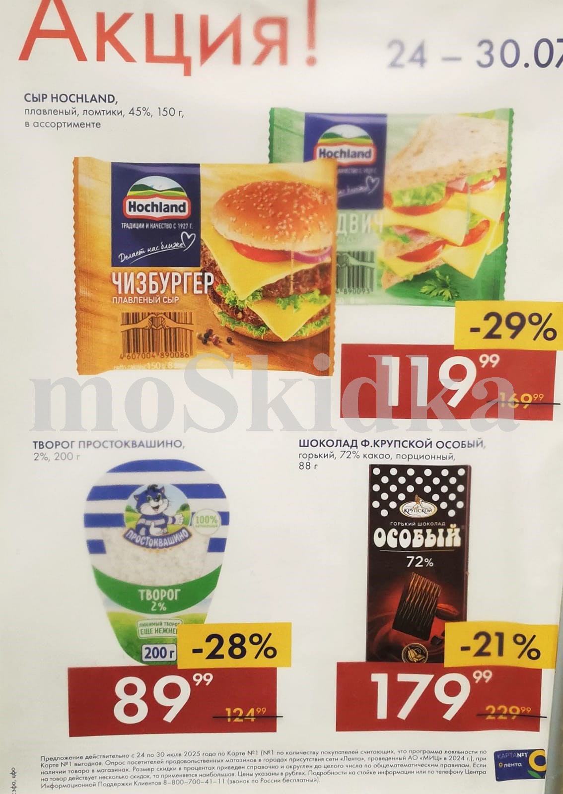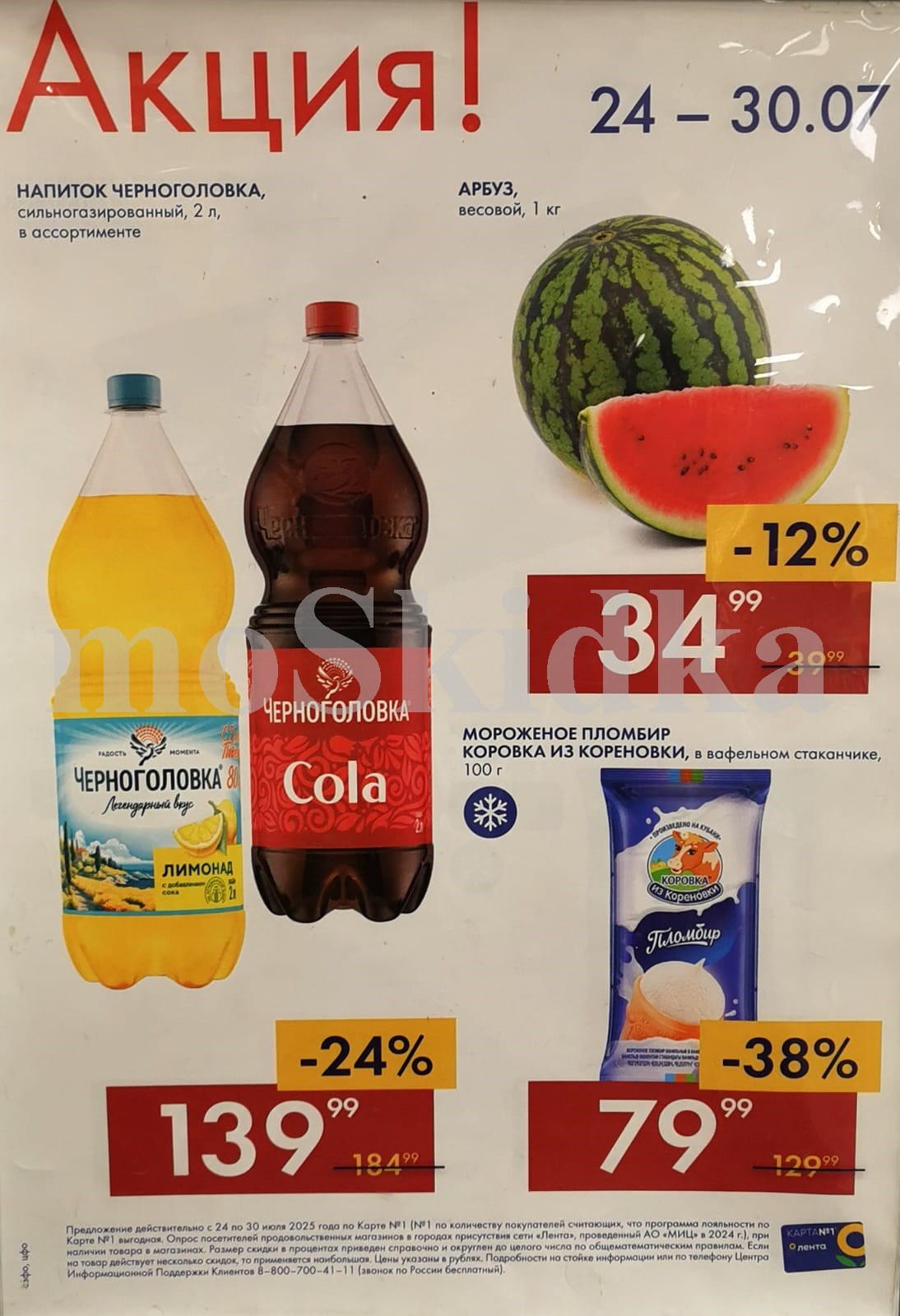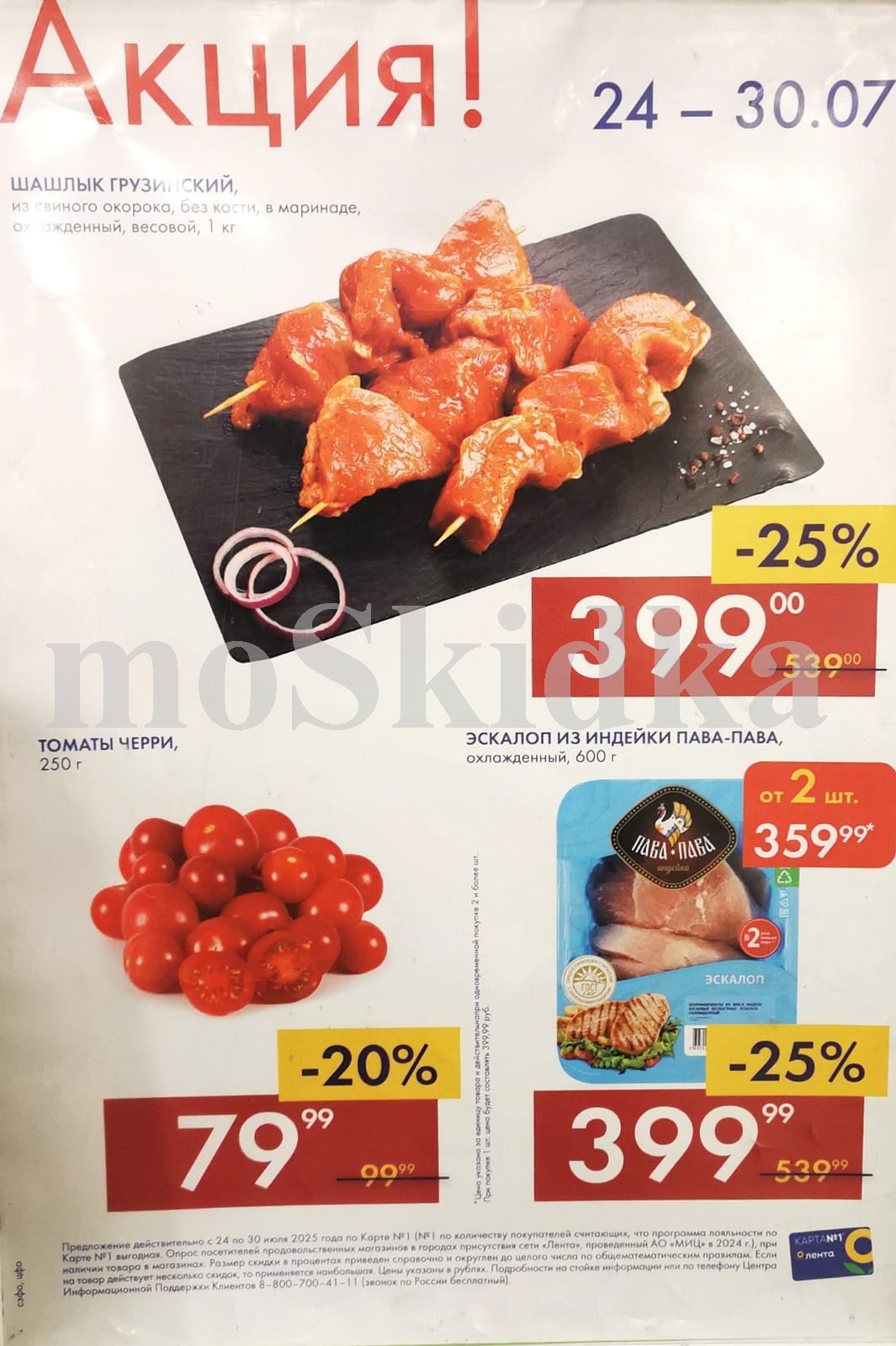 На страницах каталога ЛЕНТА вы найдете все свои любимые товары, которые сейчас предлагаются по акции. Скидки действуют в указанные сроки при покупках с Картой №1, при наличии товара Количество товара ограничено. Внешний вид товаров может отличаться от представленных. В Ленте пенсионерам скидка 10%* каждый день 9:00–13:00 (*Скидка не распространяется подарочные карты, лотерейные билеты, товары марки «365 Дней».) Выгода предоставляется на кассе при предъявлении необходимых документов и карты лояльности. Цены по акции Лента действуют в городах: Москва, Балашиха, Химки, Подольск, Королев, Мытищи, Люберцы, Электросталь, Коломна, Одинцово, Железнодорожный, Серпухов, Орехово-Зуево, Красногорск, Щелково, Сергиев Посад, Пушкино, Жуковский, Ногинск, Раменское и многих других населенных пунктах Московского региона.