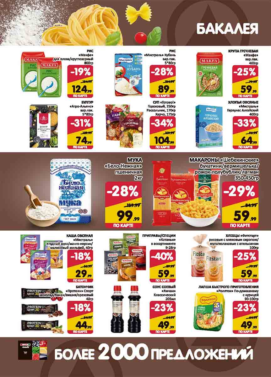 На страницах каталога СПАР вы найдете все свои любимые товары, которые сейчас предлагаются в супермаркете. Не пропустите последние специальные предложения и сэкономьте на покупках. Цены по акции Спар действуют в городах: Москва, Химки, Красногорск, Одинцово, Краснознаменск, Кубинка, Климовск, Жуковский, Видное и других населенных пунктах Московского региона.