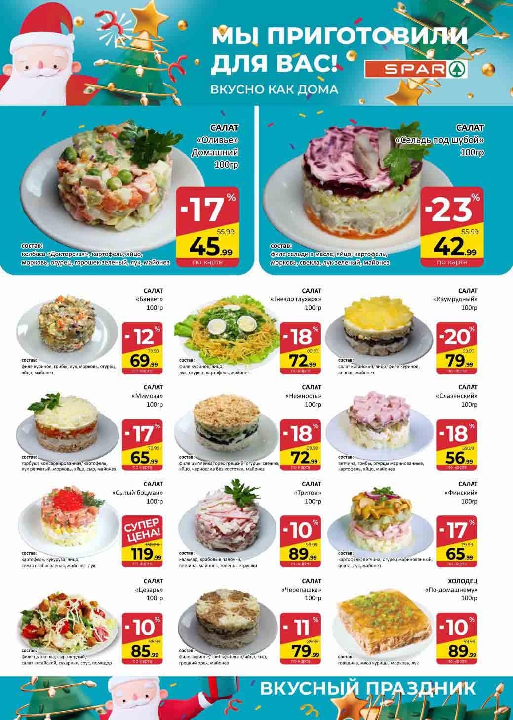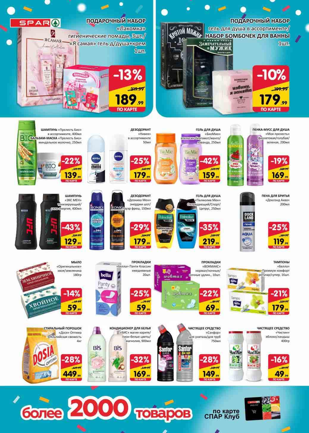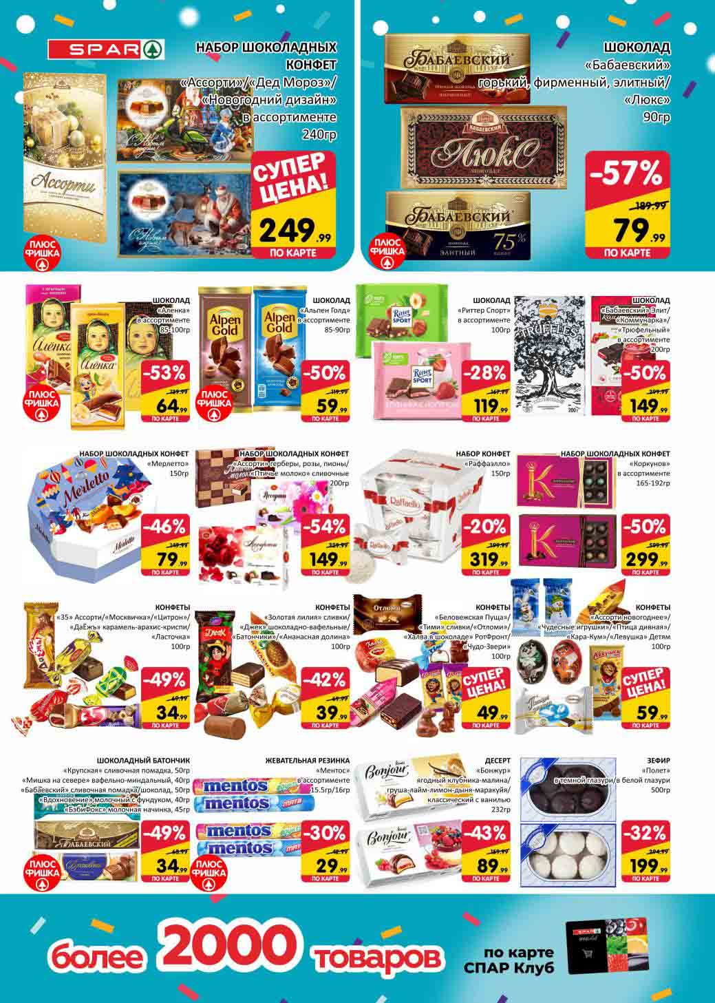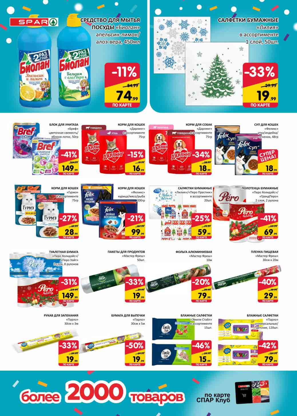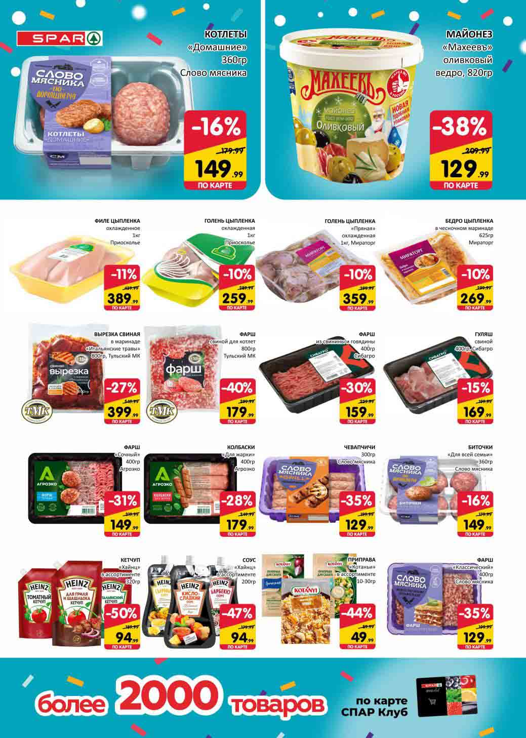 На страницах каталога СПАР вы найдете все свои любимые товары, которые сейчас предлагаются в супермаркете. Не пропустите последние специальные предложения и сэкономьте на покупках. Цены по акции Спар действуют в городах: Москва, Химки, Красногорск, Одинцово, Краснознаменск, Кубинка, Климовск, Жуковский, Видное и других населенных пунктах Московского региона.