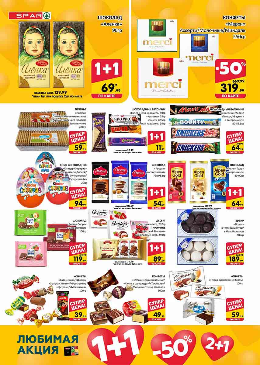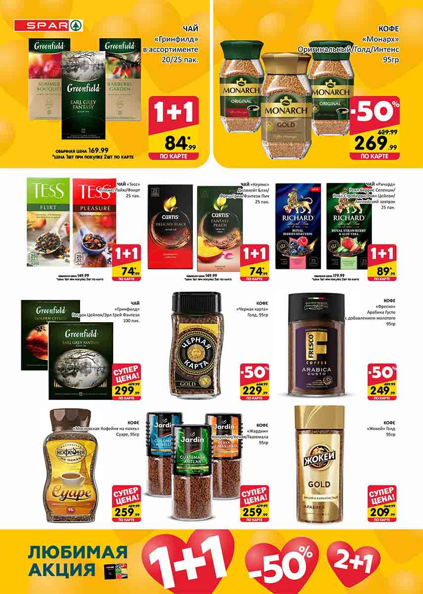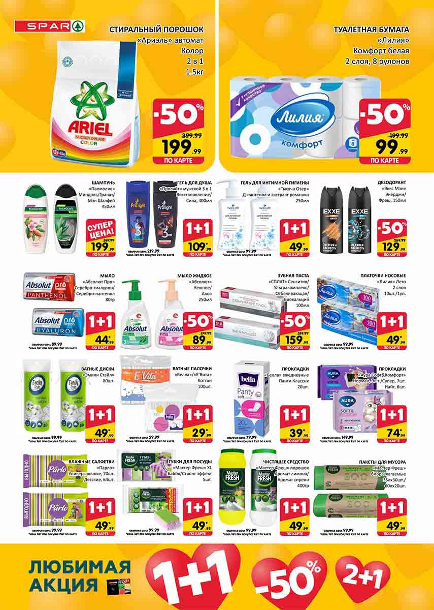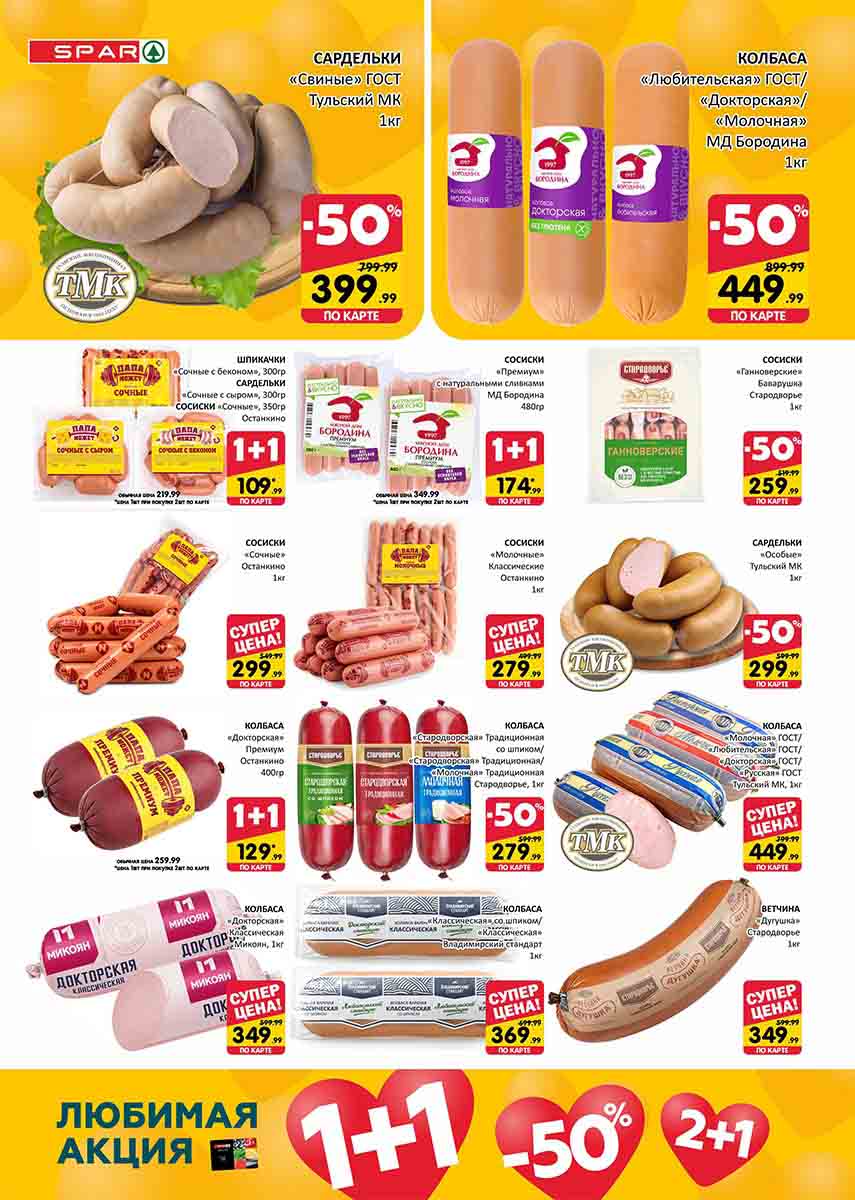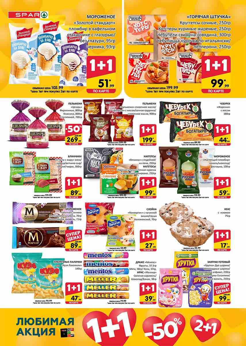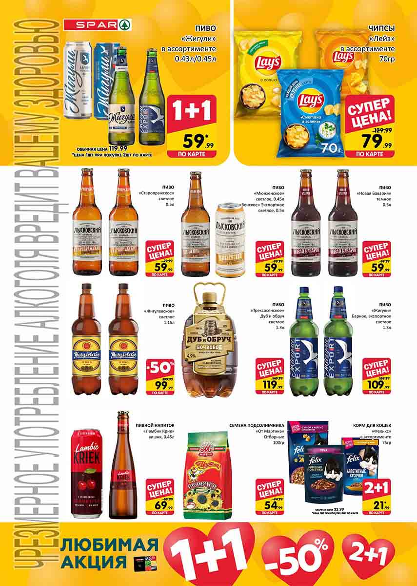 На страницах каталога СПАР вы найдете все свои любимые товары, которые сейчас предлагаются в супермаркете. Не пропустите последние специальные предложения и сэкономьте на покупках. Цены по акции Спар действуют в городах: Москва, Химки, Красногорск, Одинцово, Краснознаменск, Кубинка, Климовск, Жуковский, Видное и других населенных пунктах Московского региона.