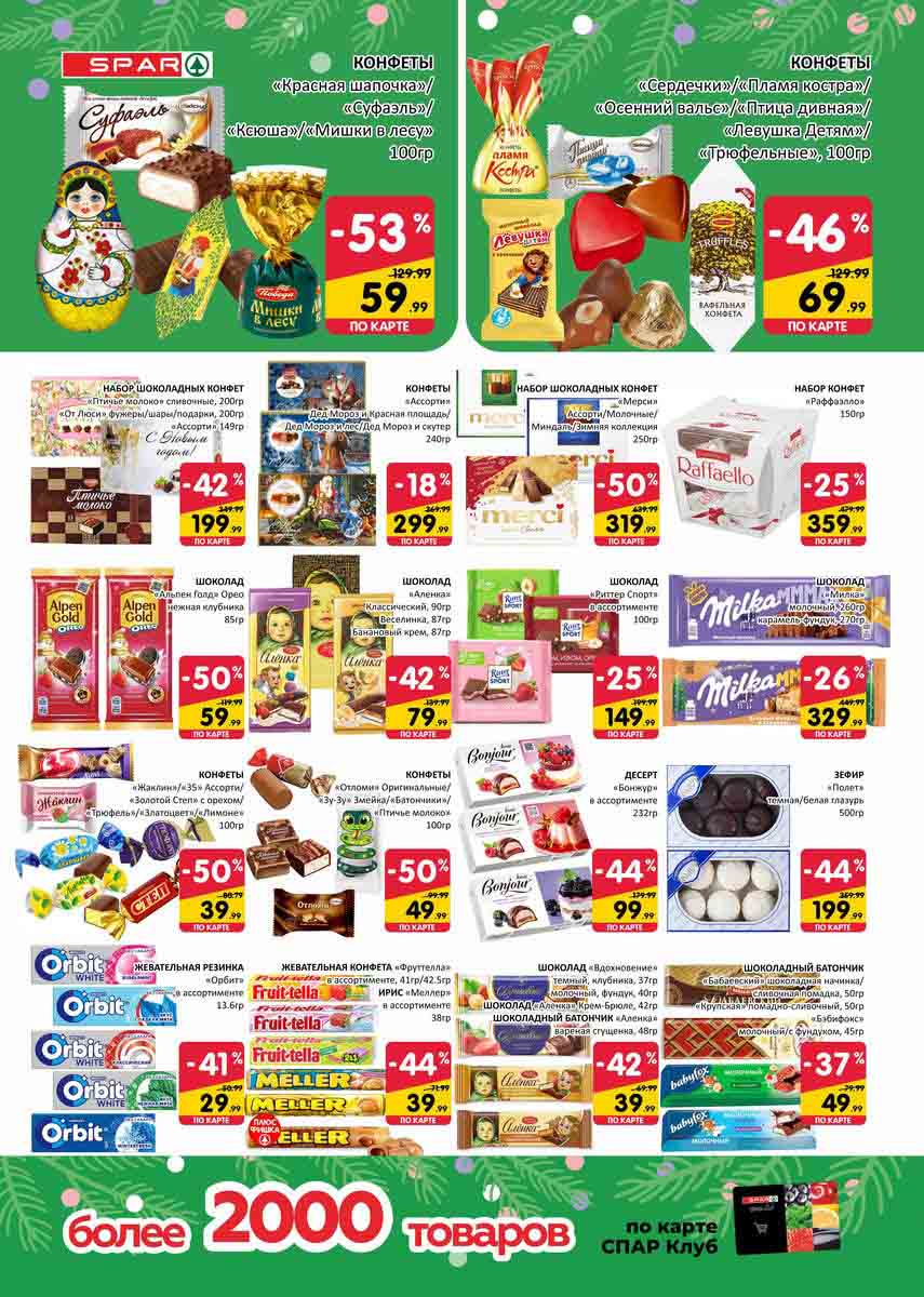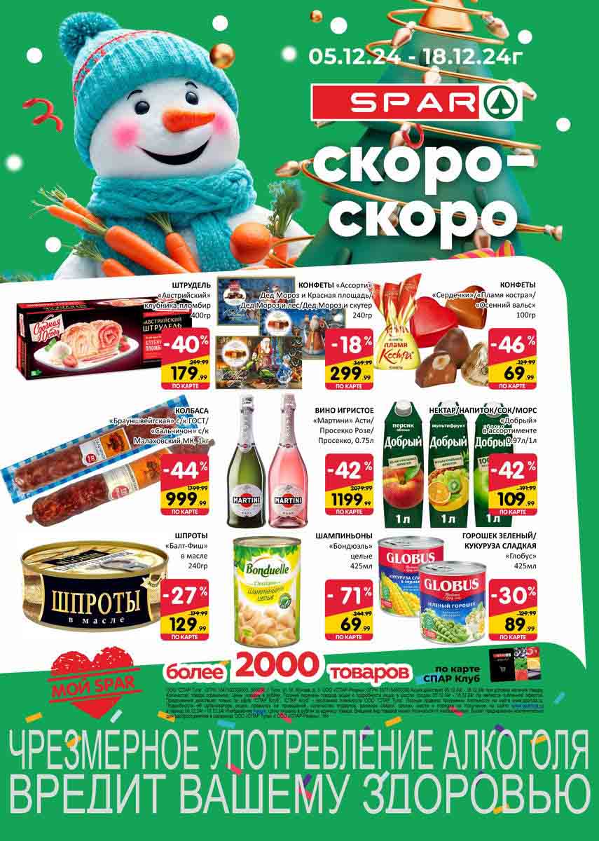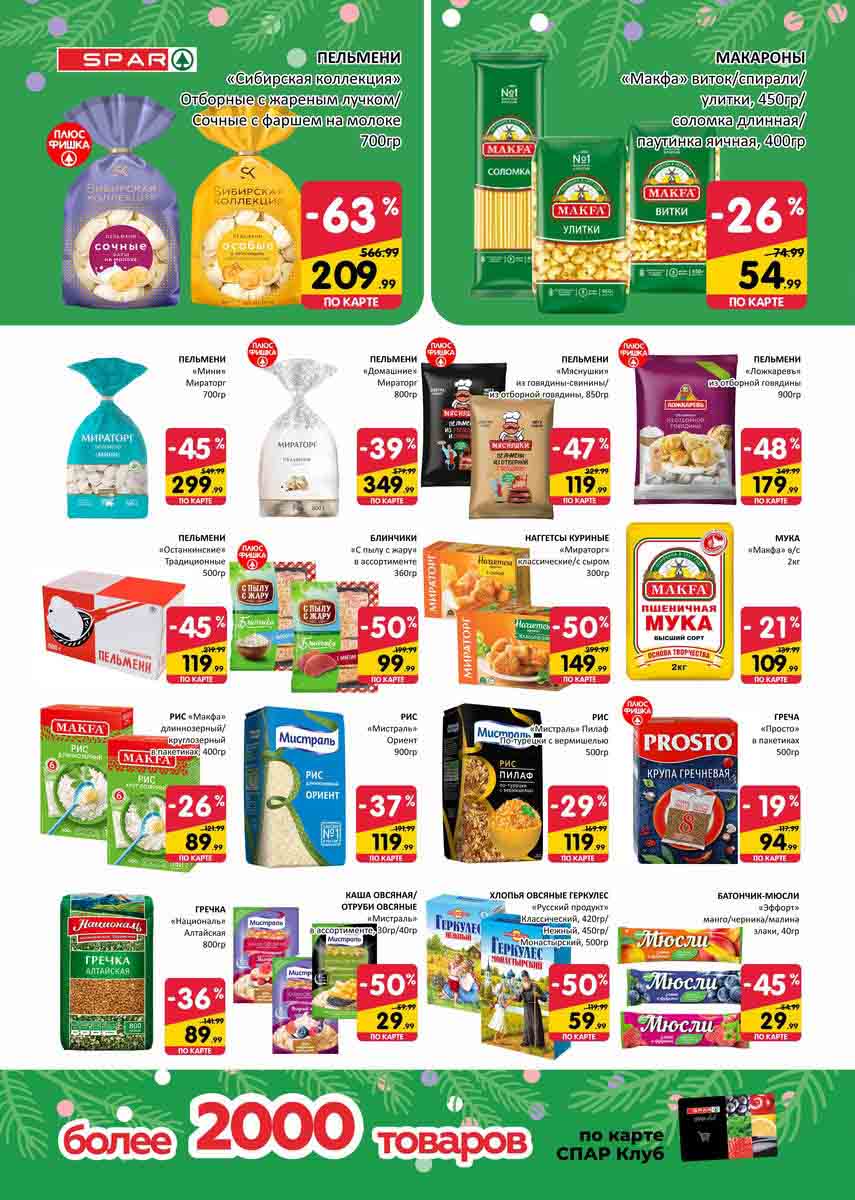 На страницах каталога СПАР вы найдете все свои любимые товары, которые сейчас предлагаются в супермаркете. Не пропустите последние специальные предложения и сэкономьте на покупках. Цены по акции Спар действуют в городах: Москва, Химки, Красногорск, Одинцово, Краснознаменск, Кубинка, Климовск, Жуковский, Видное и других населенных пунктах Московского региона.