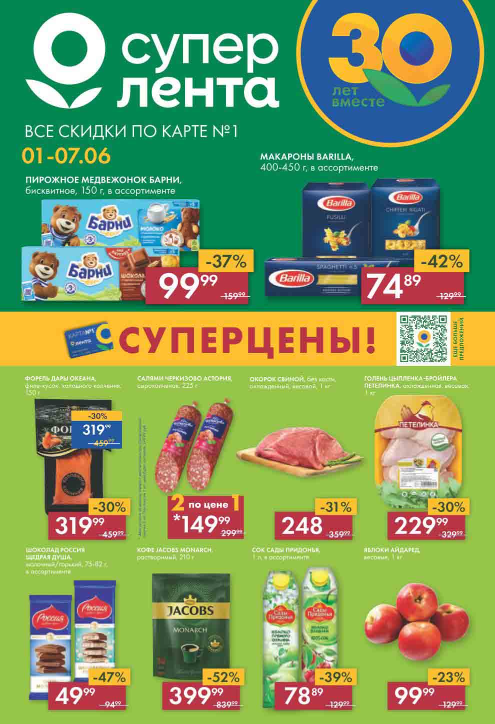 Супер Лента акции с 1 июня — 7 июня 2023. Супер цены по карте №1