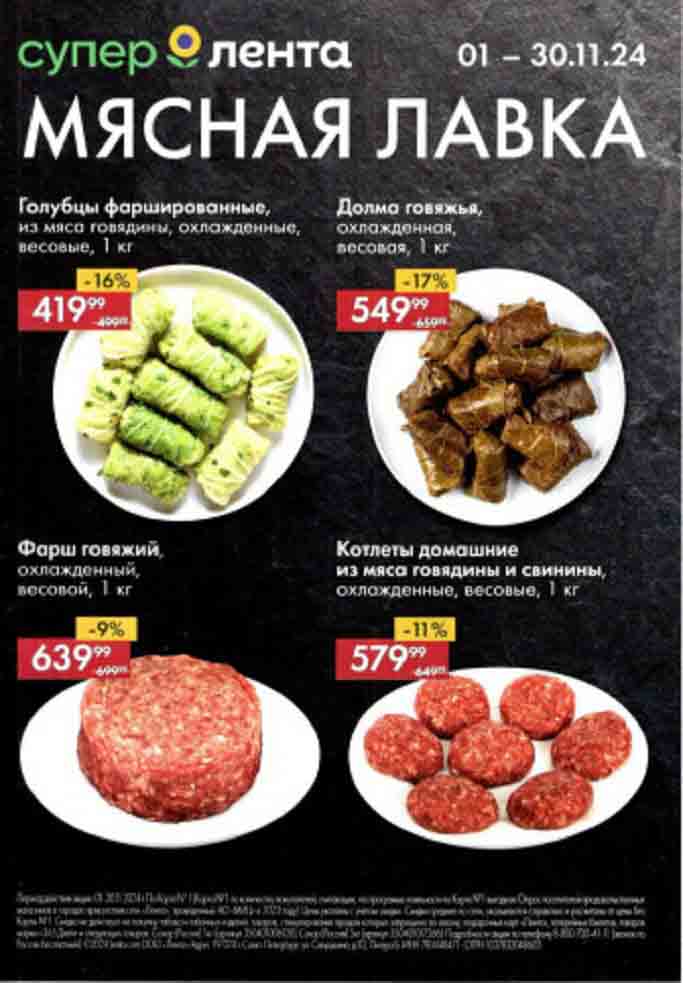 Супер Лента акции с 1 ноября — 30 ноября 2024. Каталог Мясная лавка