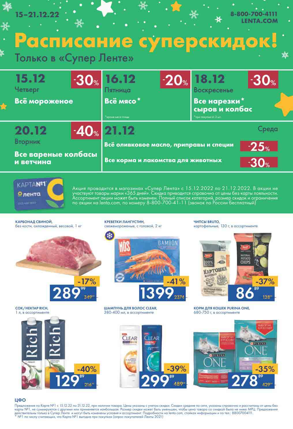 Супер Лента акции с 15 декабря — 21 декабря 2022. Каталог предложений в супермаркете Лента