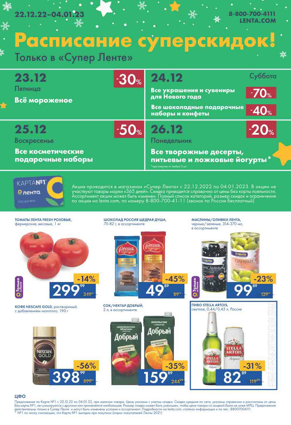 Супер Лента акции с 22 декабря — 4 января 2023. Каталог предложений в супермаркете Лента