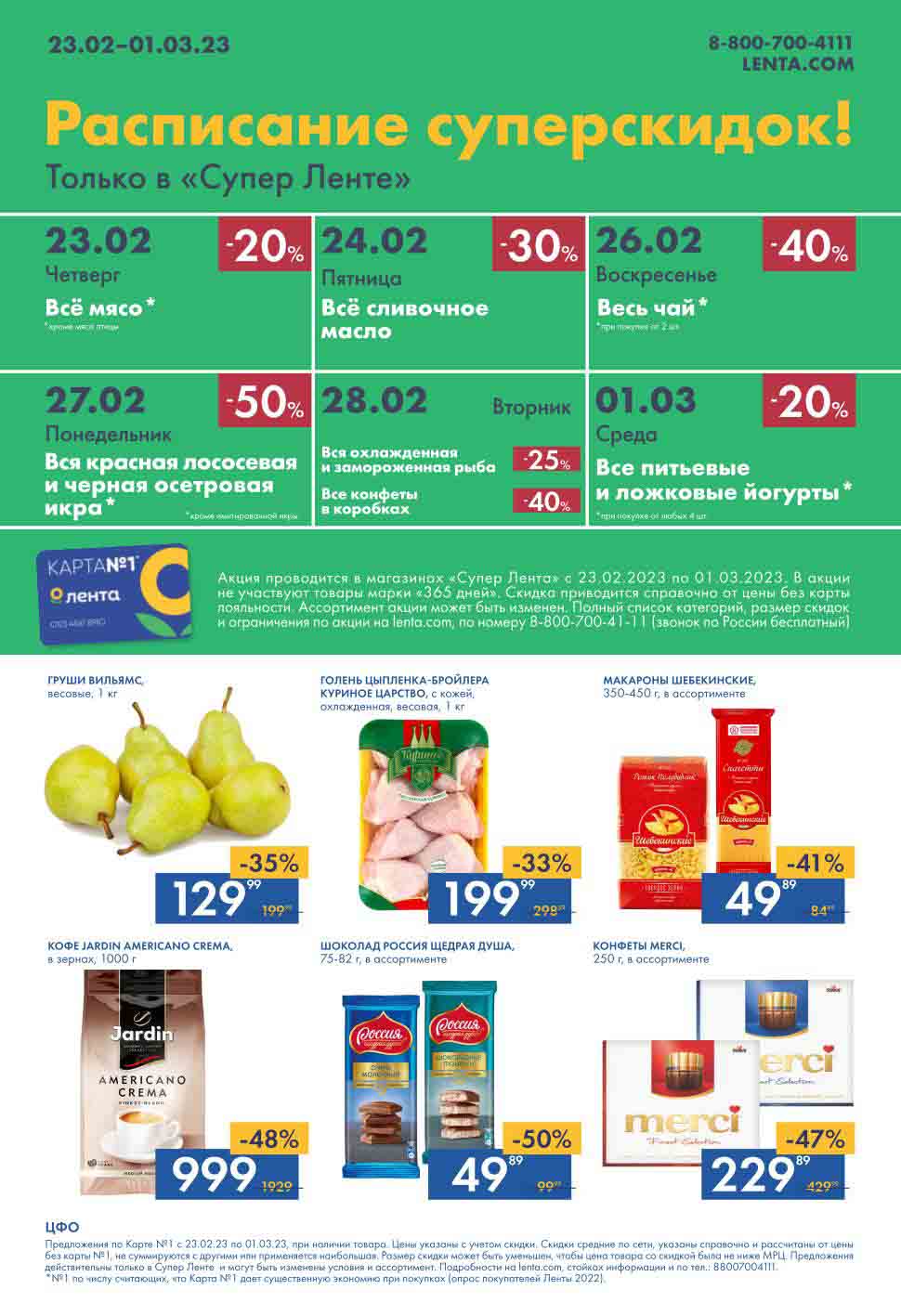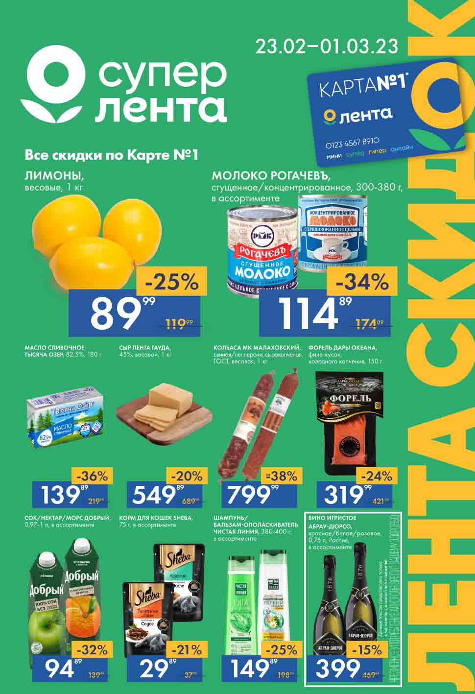 Супер Лента акции с 23 февраля — 1 марта 2023. Супер цены по карте №1